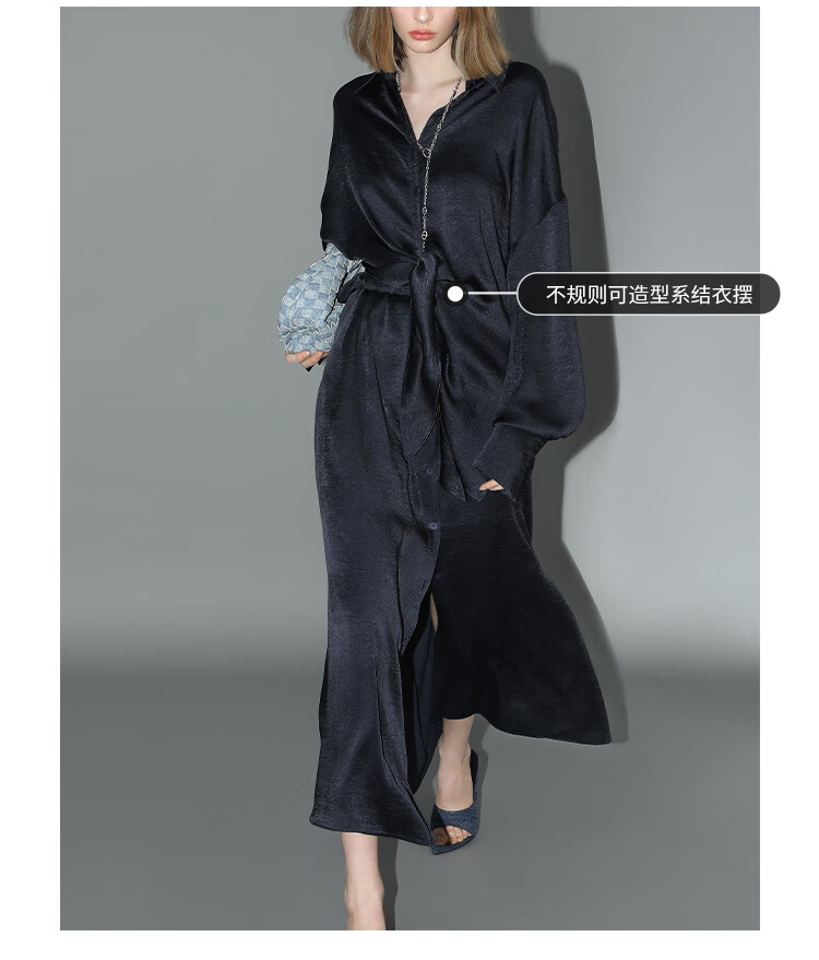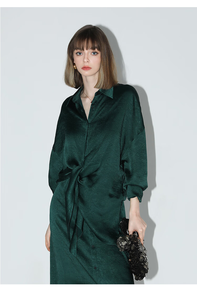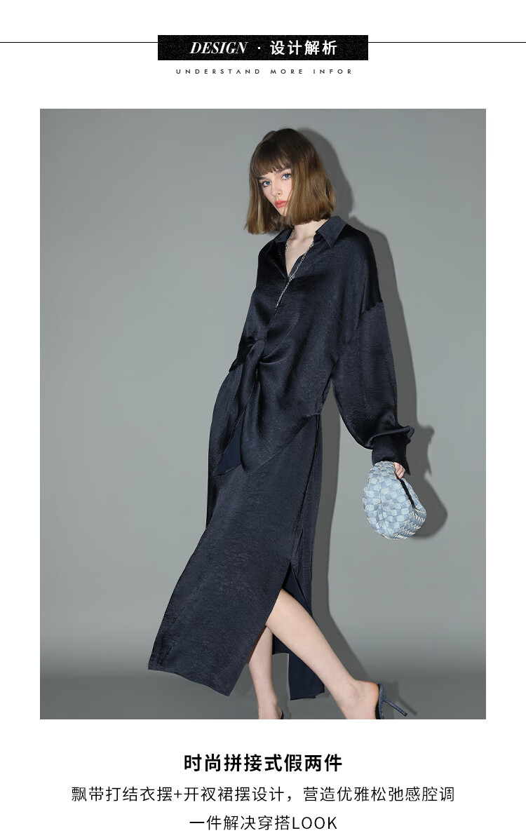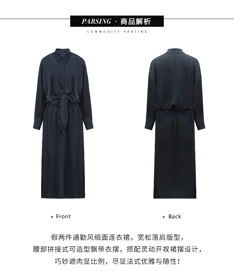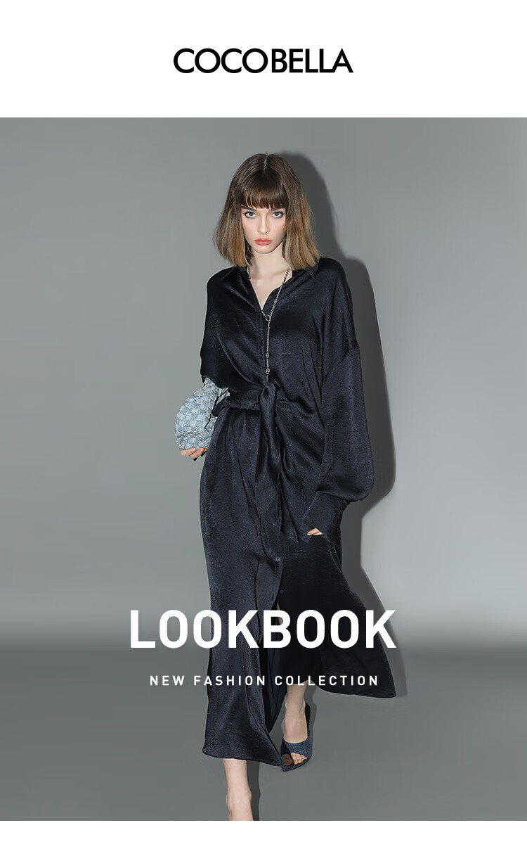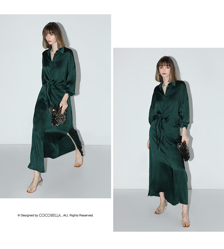COCOBELLA暗纹肌理光泽感缎面通勤连衣裙假两件衬衫裙FR3009