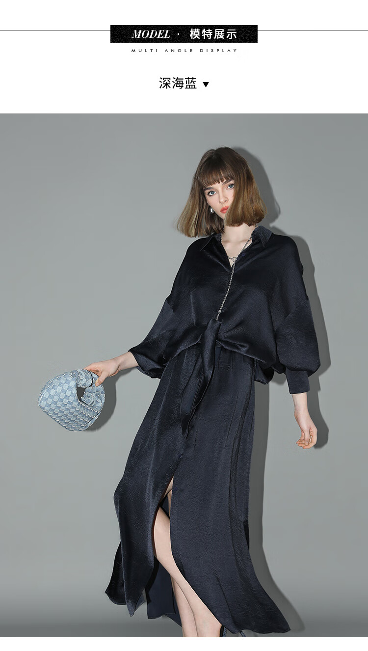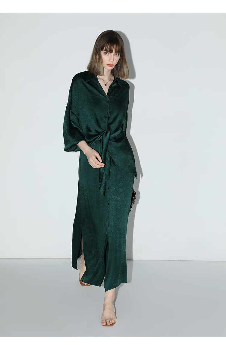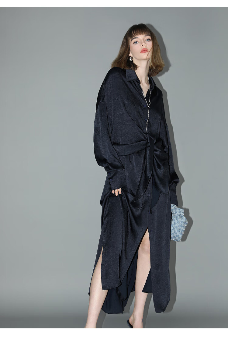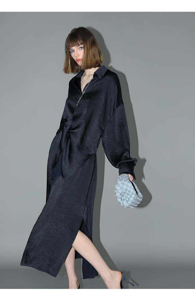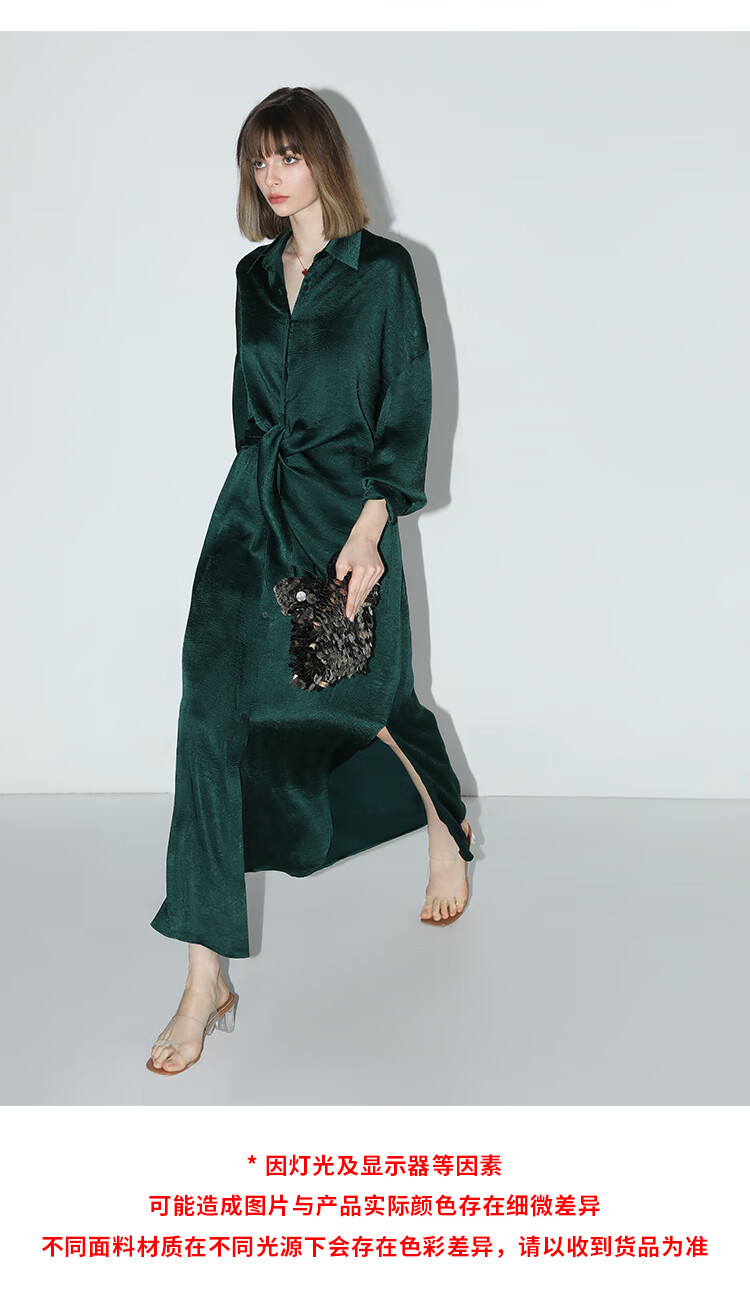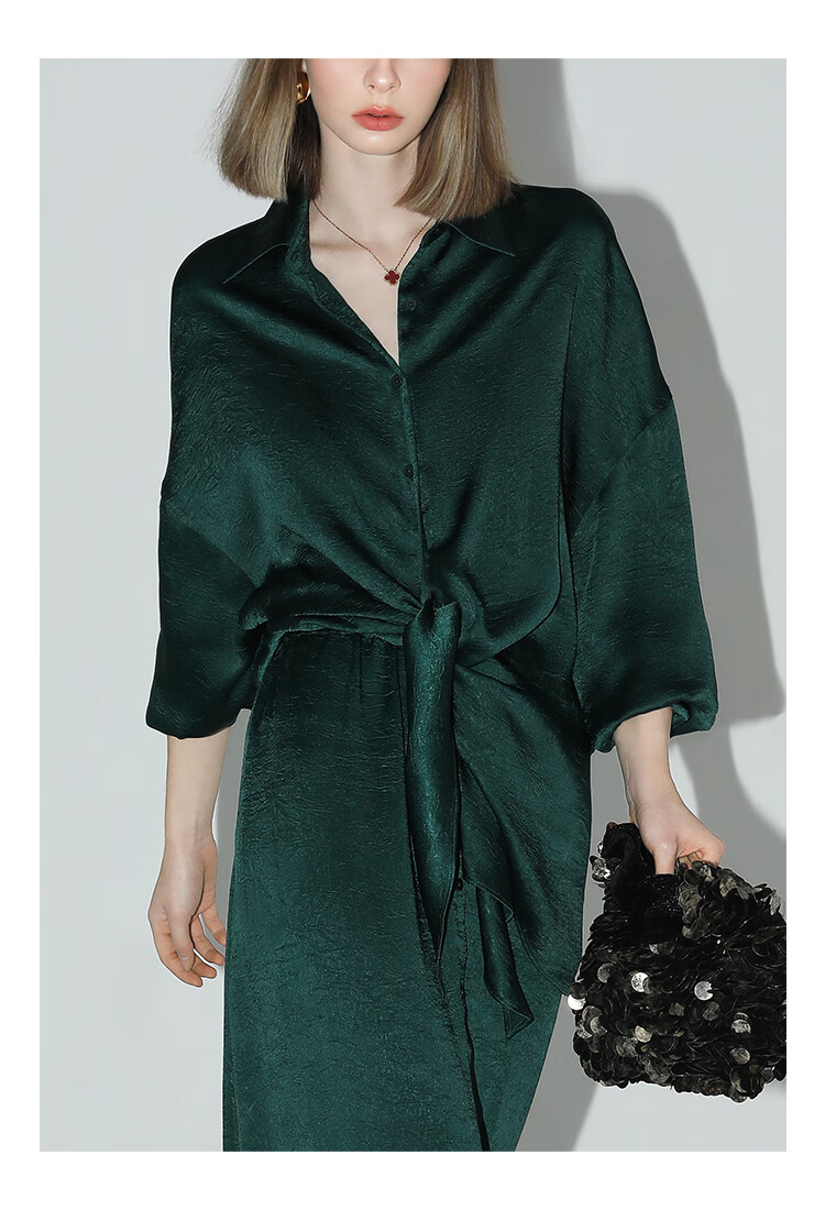 COCOBELLA暗纹肌理光泽感缎面通勤连衣裙假两件衬衫裙FR3009