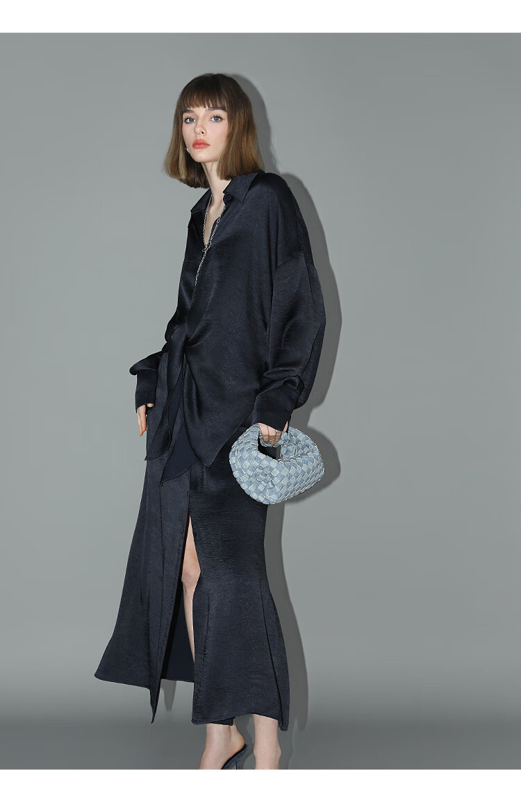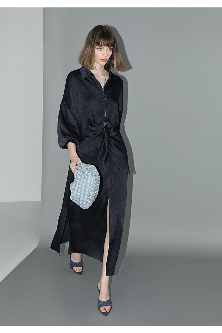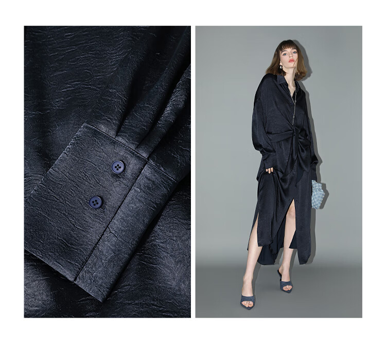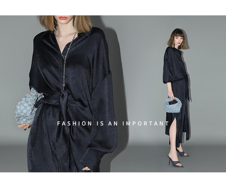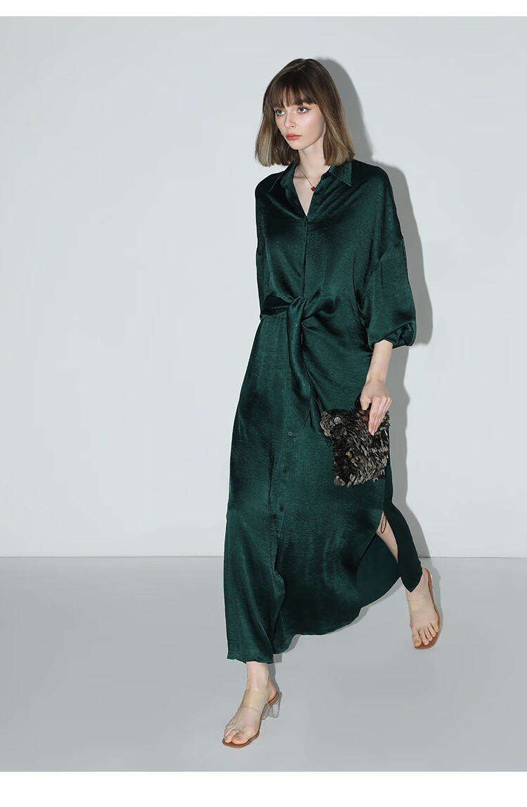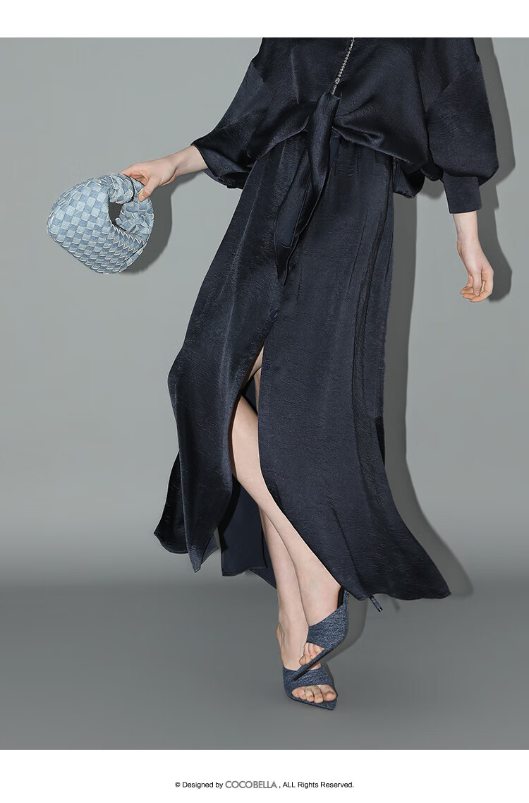 COCOBELLA暗纹肌理光泽感缎面通勤连衣裙假两件衬衫裙FR3009