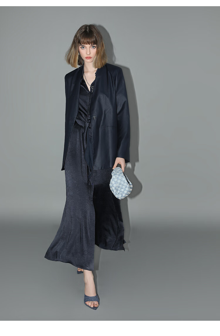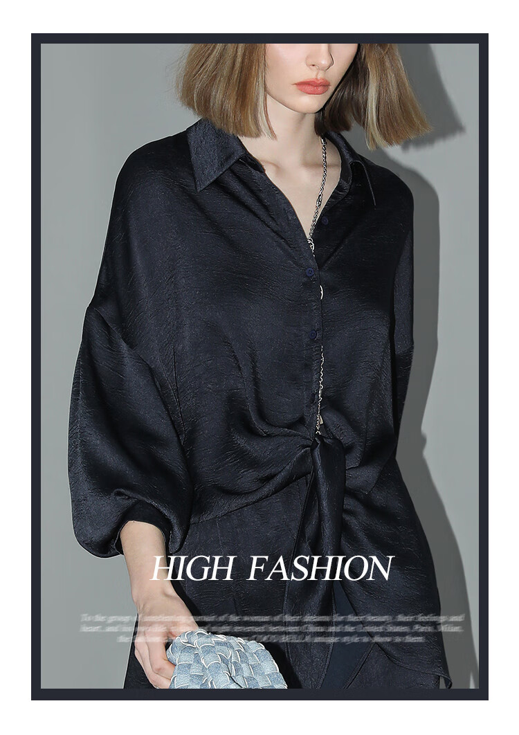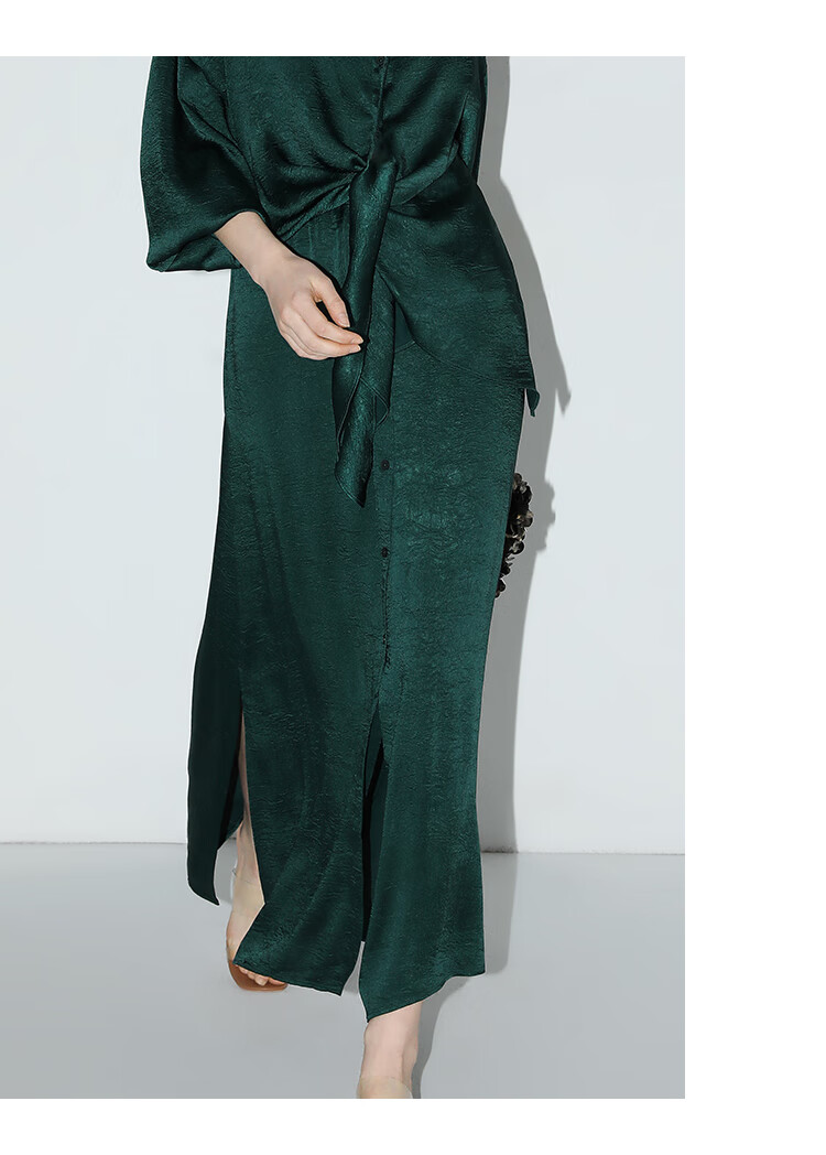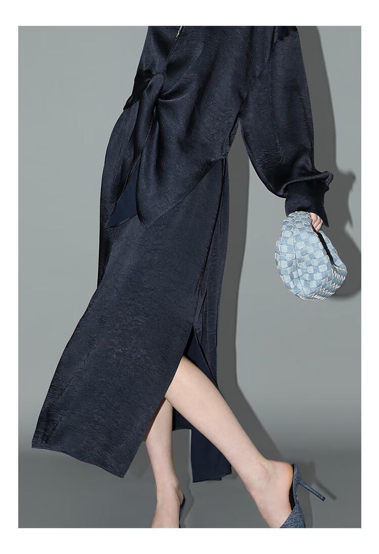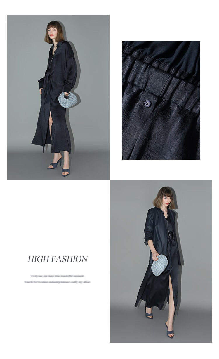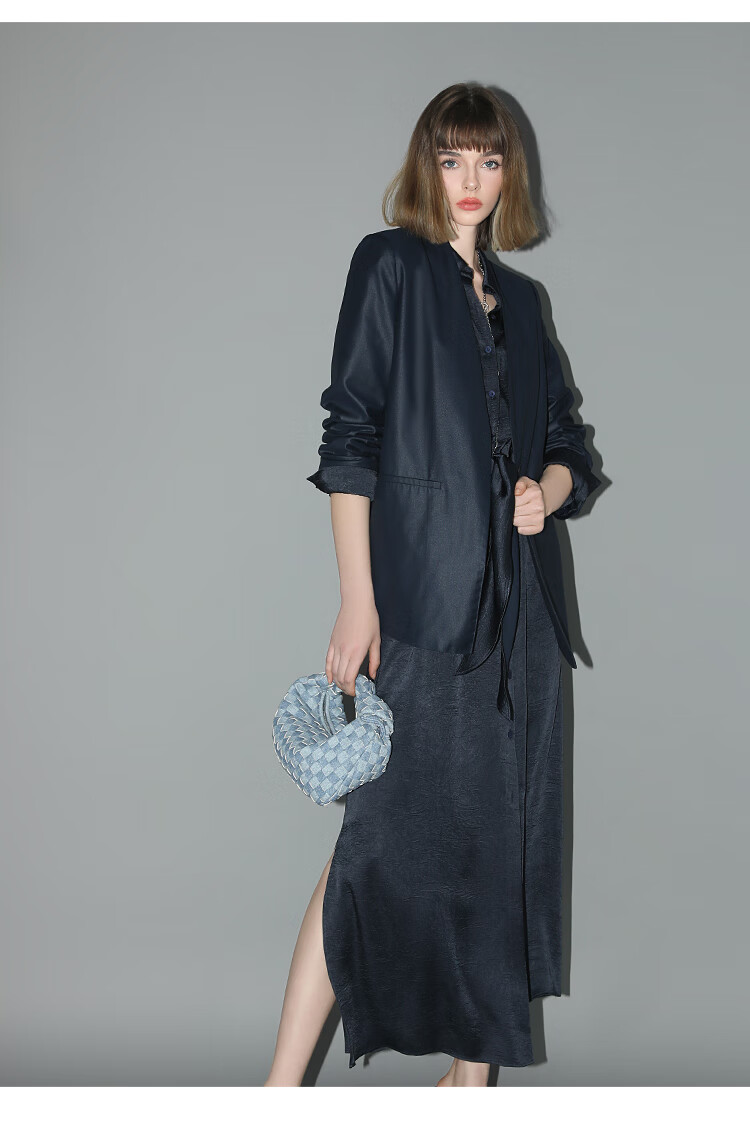 COCOBELLA暗纹肌理光泽感缎面通勤连衣裙假两件衬衫裙FR3009