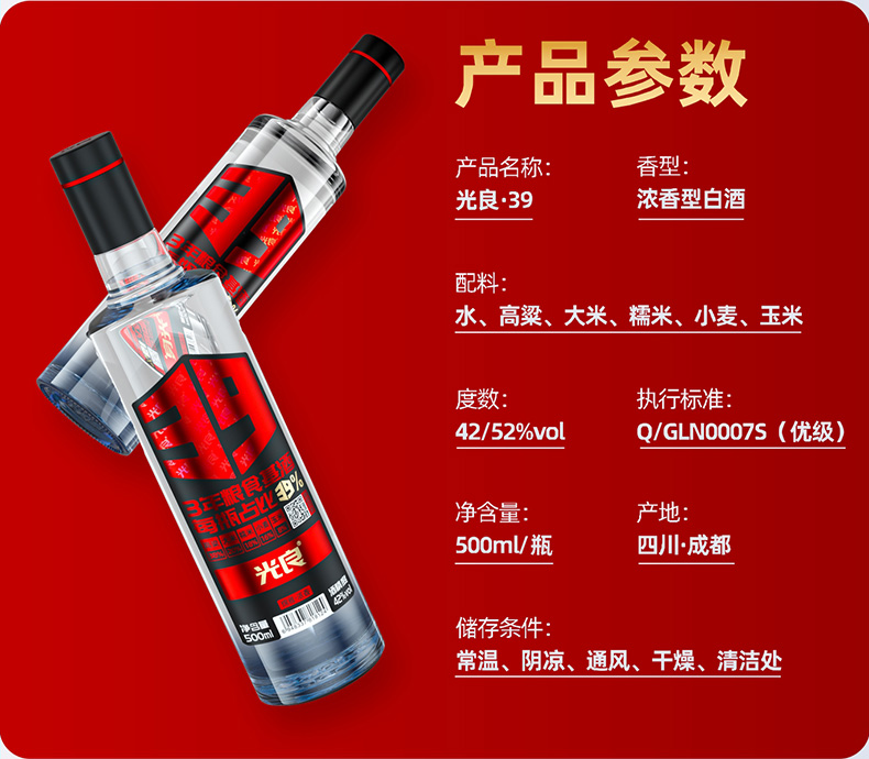 光良39系列 42度 500ml*12瓶整箱装