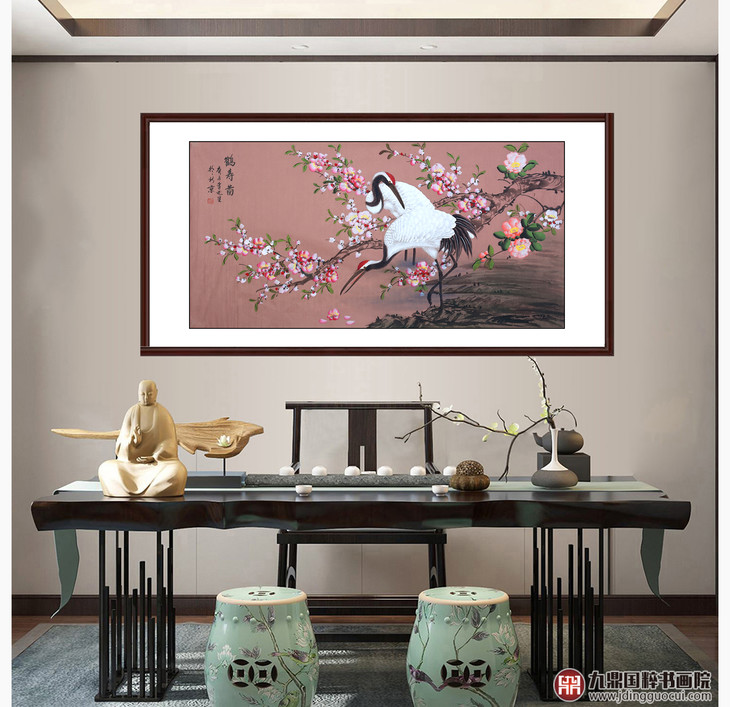 李兆生《鹤寿图》68*138cm 花鸟横幅作品 茶室/书房挂画