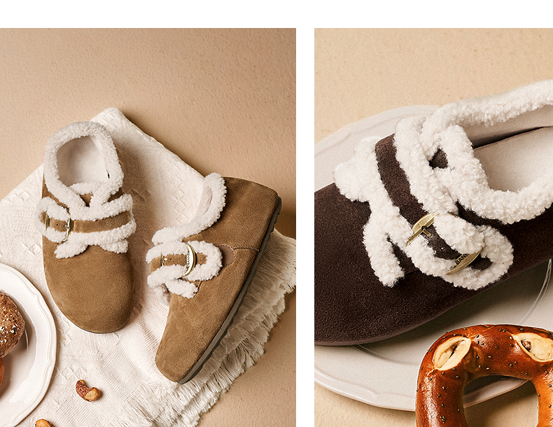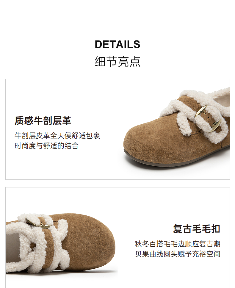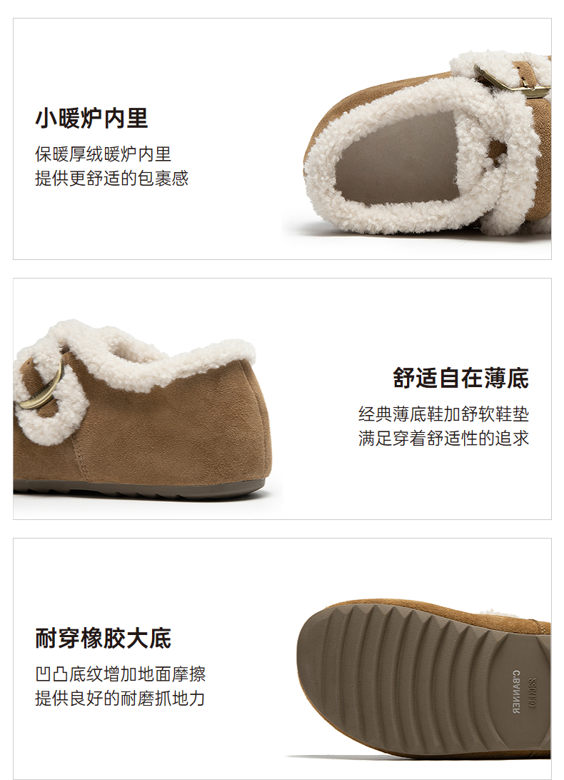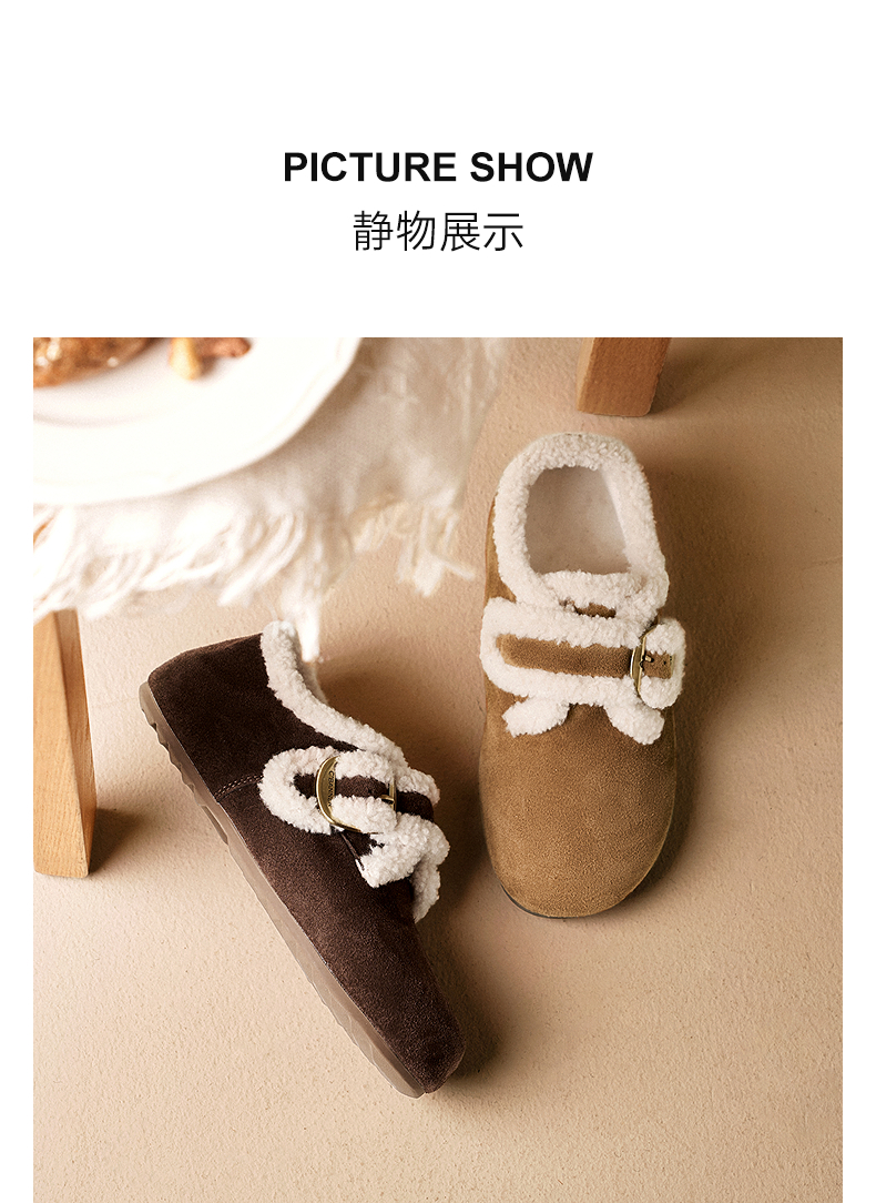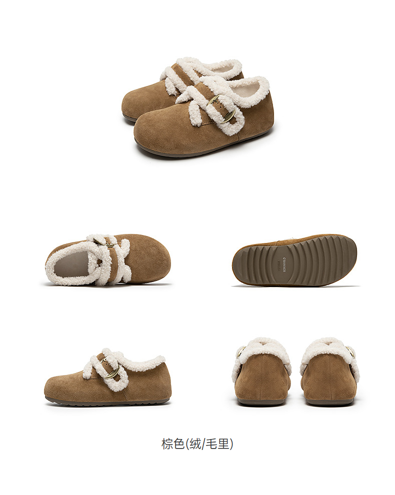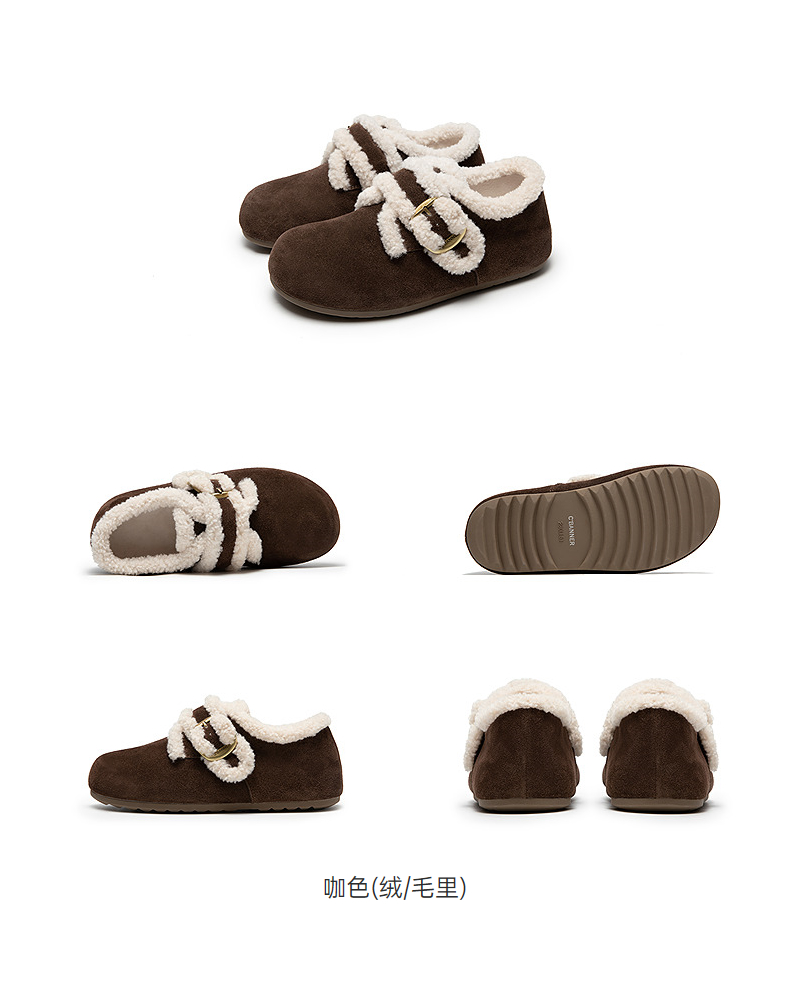 千百度薄底时尚雪地靴女加绒毛毛鞋棉鞋勃肯鞋暖暖靴A25690802