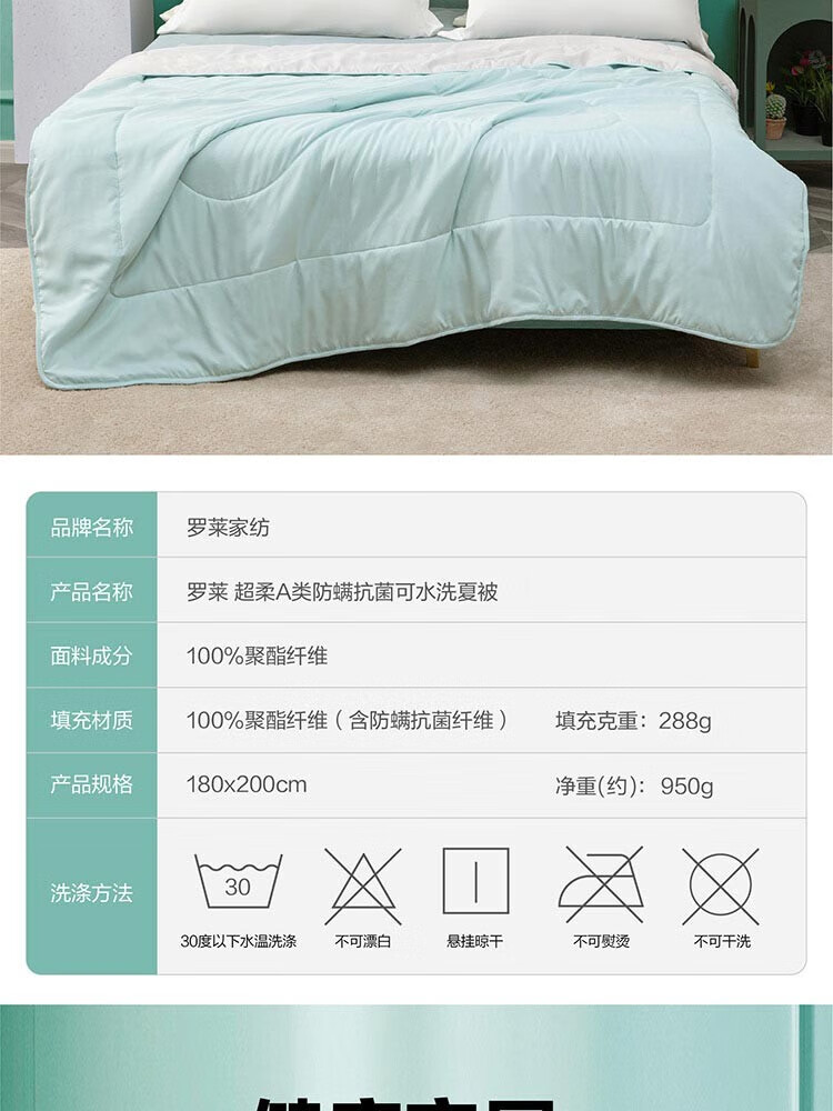 【多样屋专柜】罗莱超柔A类防螨抗菌可水洗夏被180*200cm