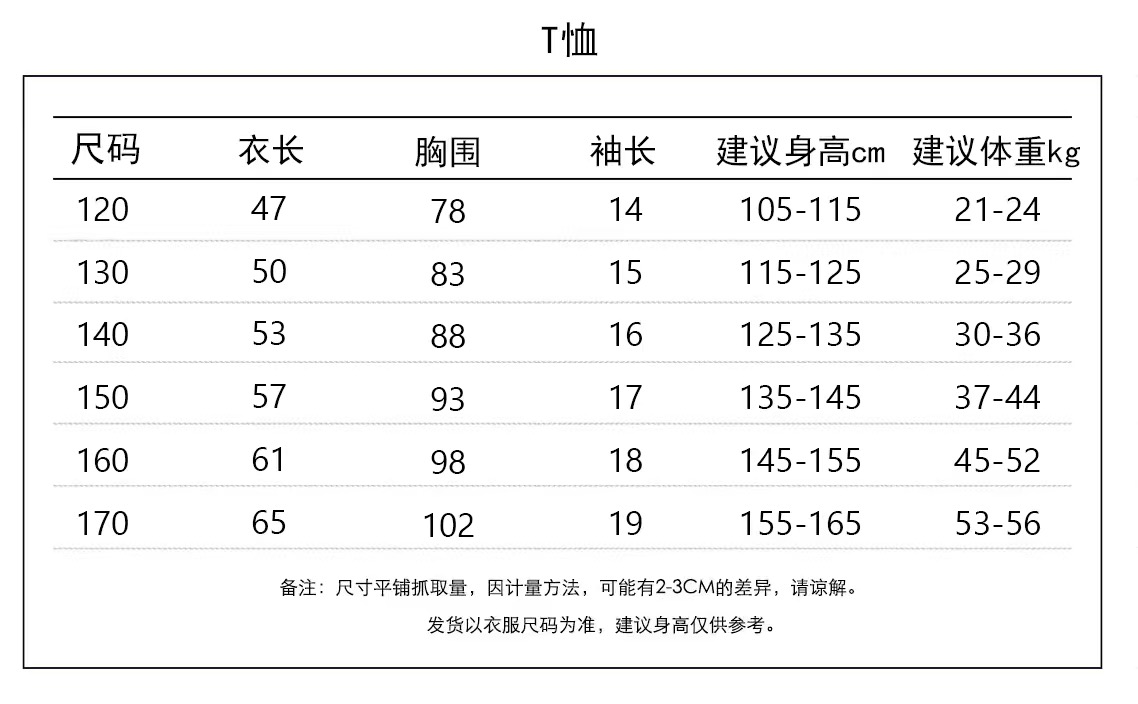 尺码表, 120-170码,身高+1码拍