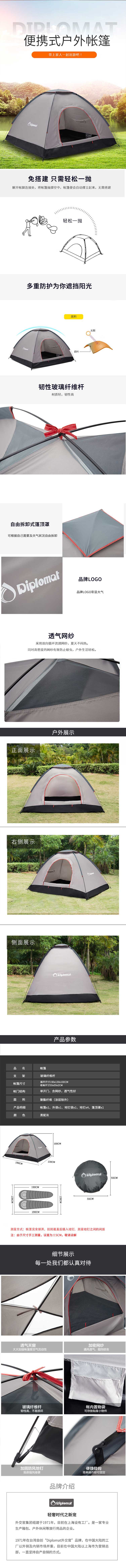 外交官 手抛帐篷-黑配灰-小号(1-2人)DFJ-105