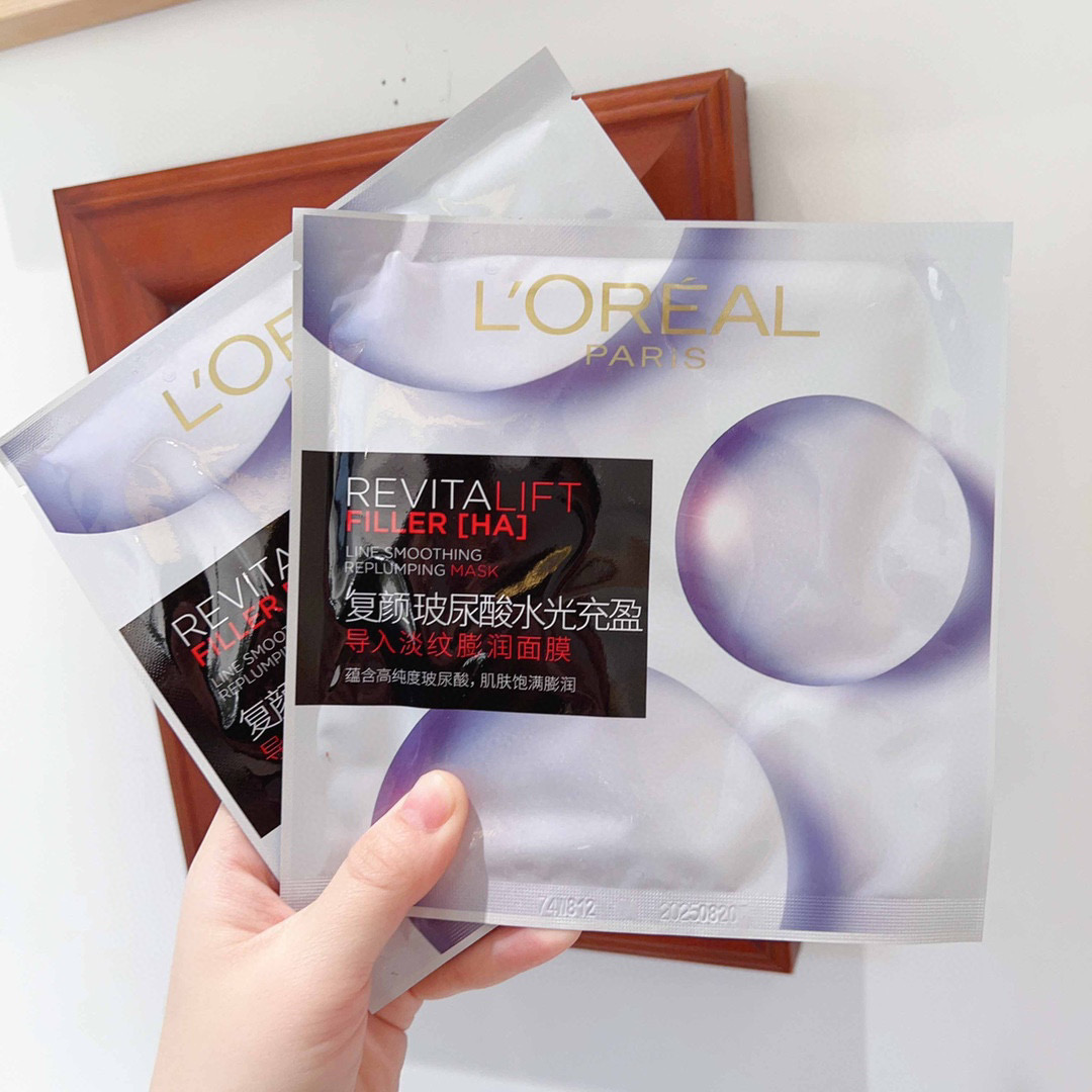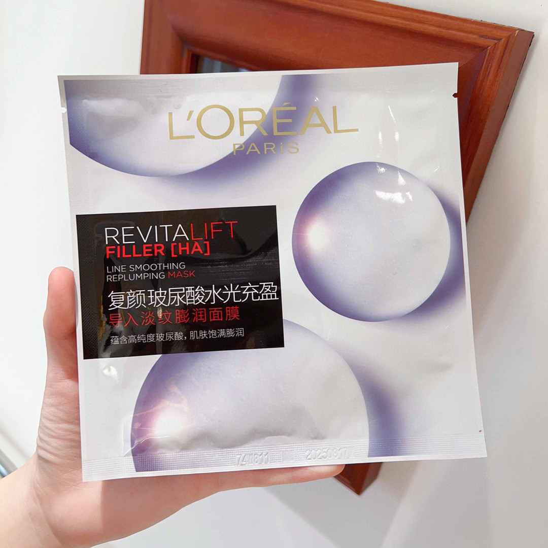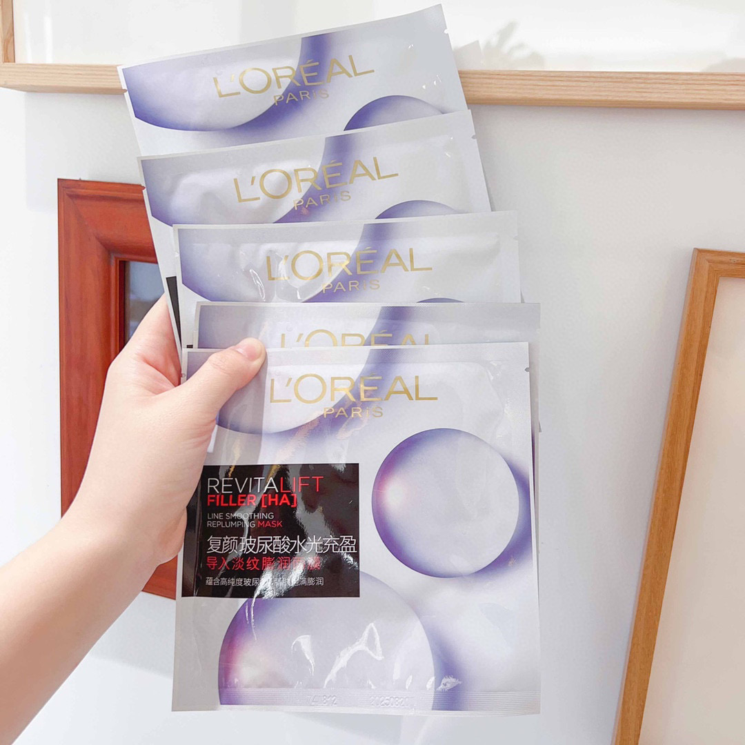 💰69元包邮, 【发10片】 欧莱雅复颜玻尿酸水光充盈导入淡纹膨润面膜