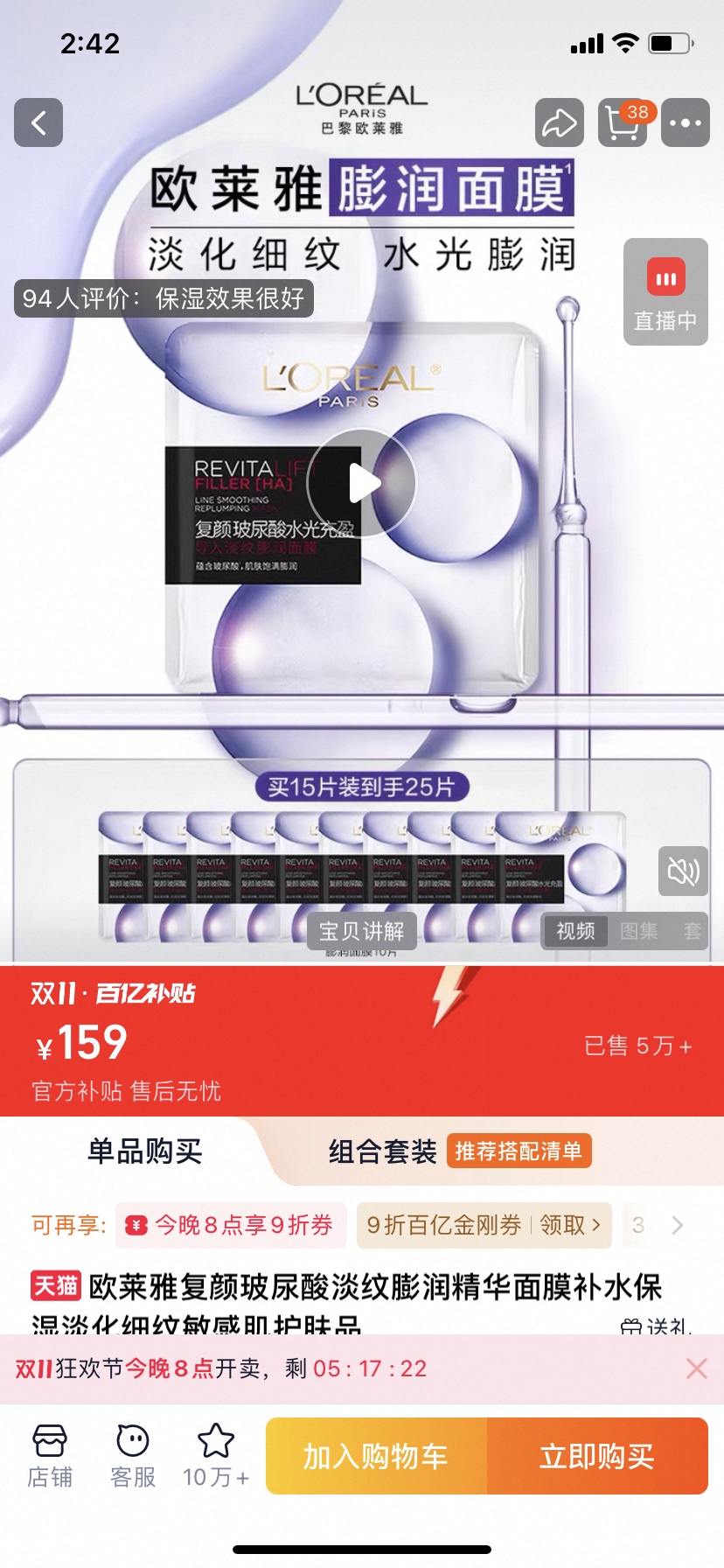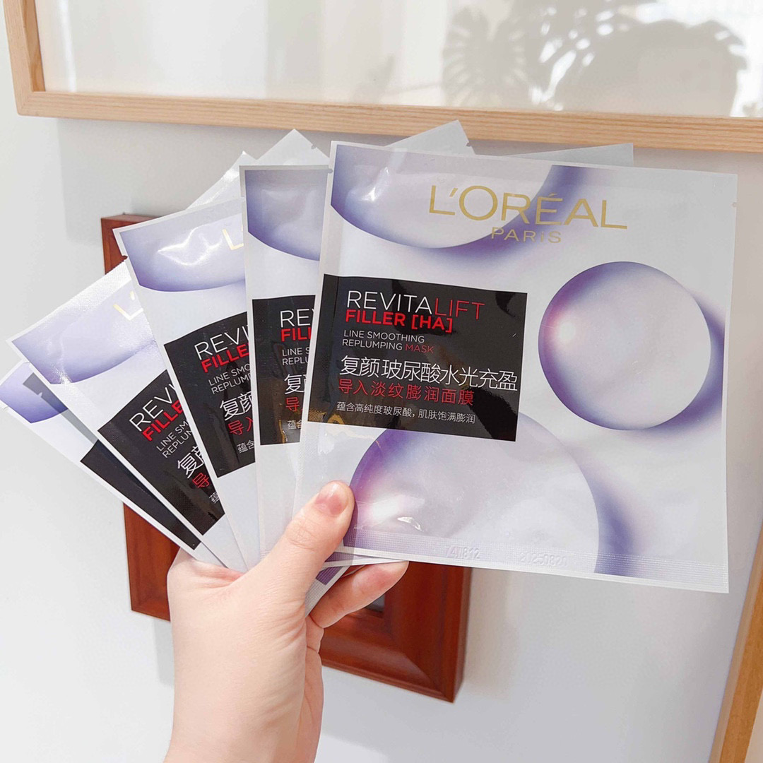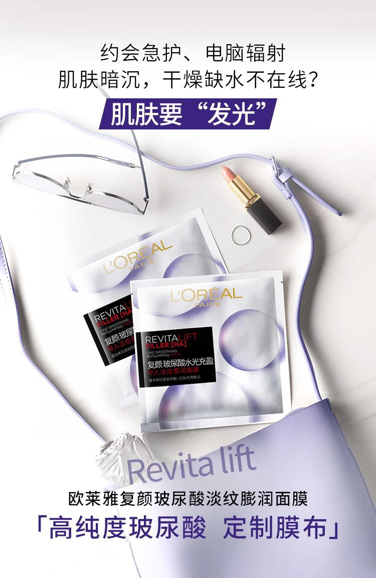 💰69元包邮, 【发10片】 欧莱雅复颜玻尿酸水光充盈导入淡纹膨润面膜