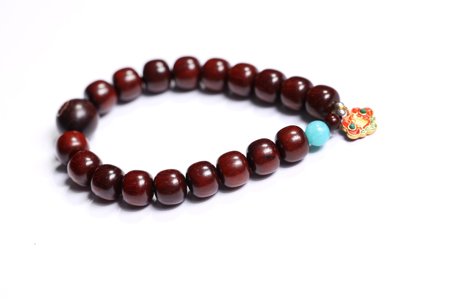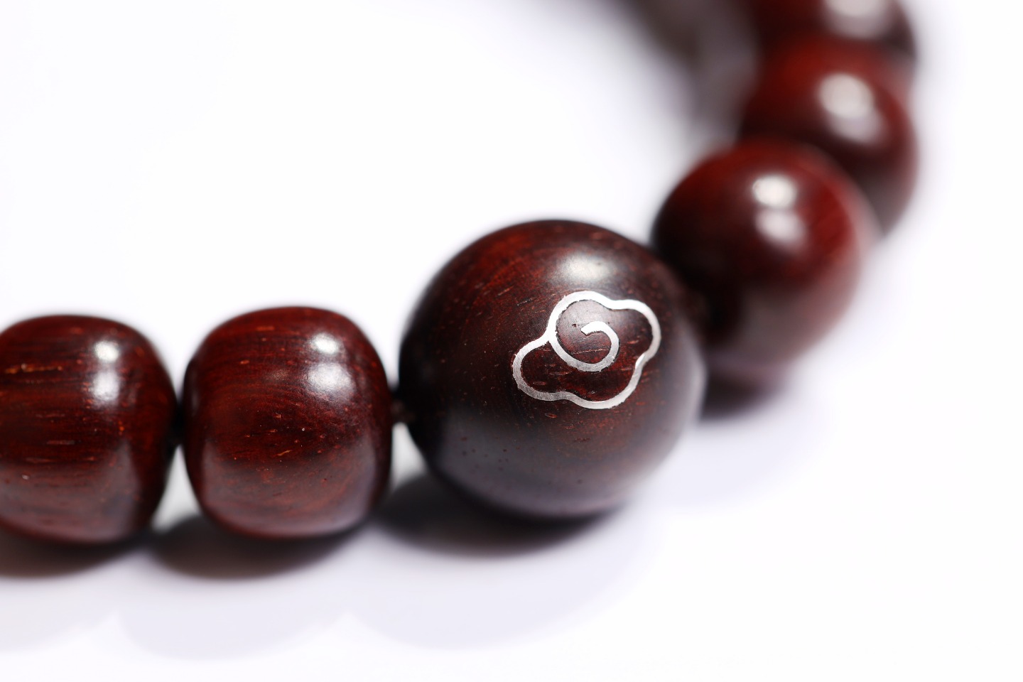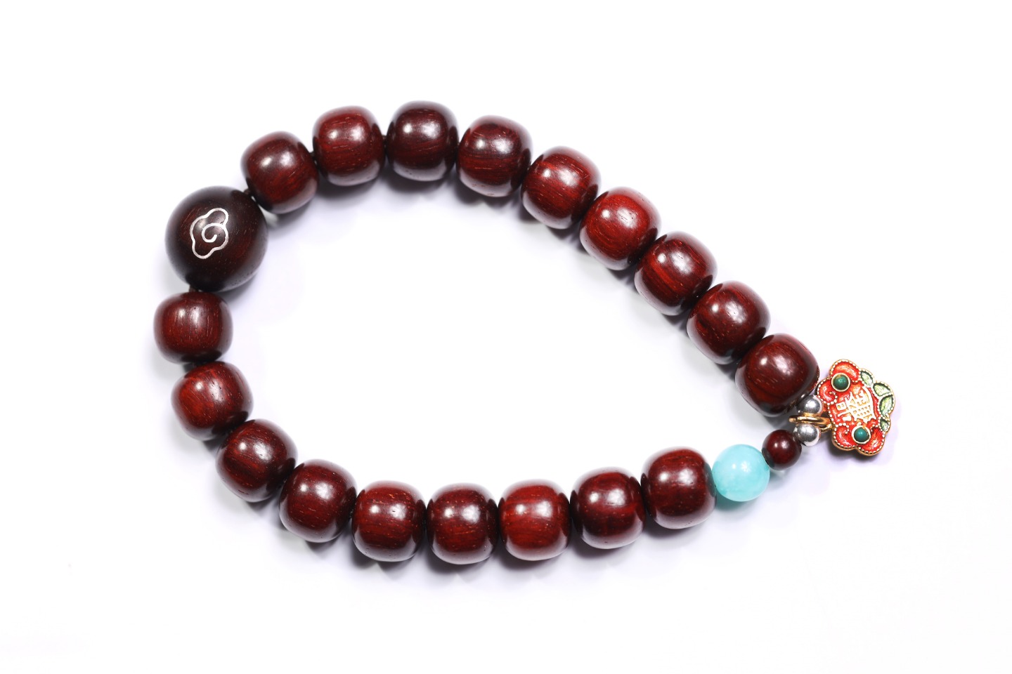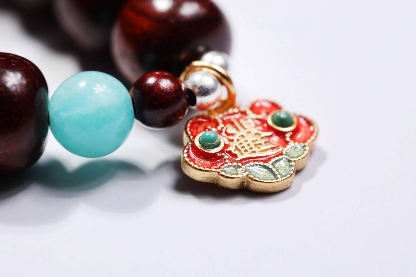 24k珐琅进宝/紫檀镶银祥云+如意/银珠/天河石隔片
