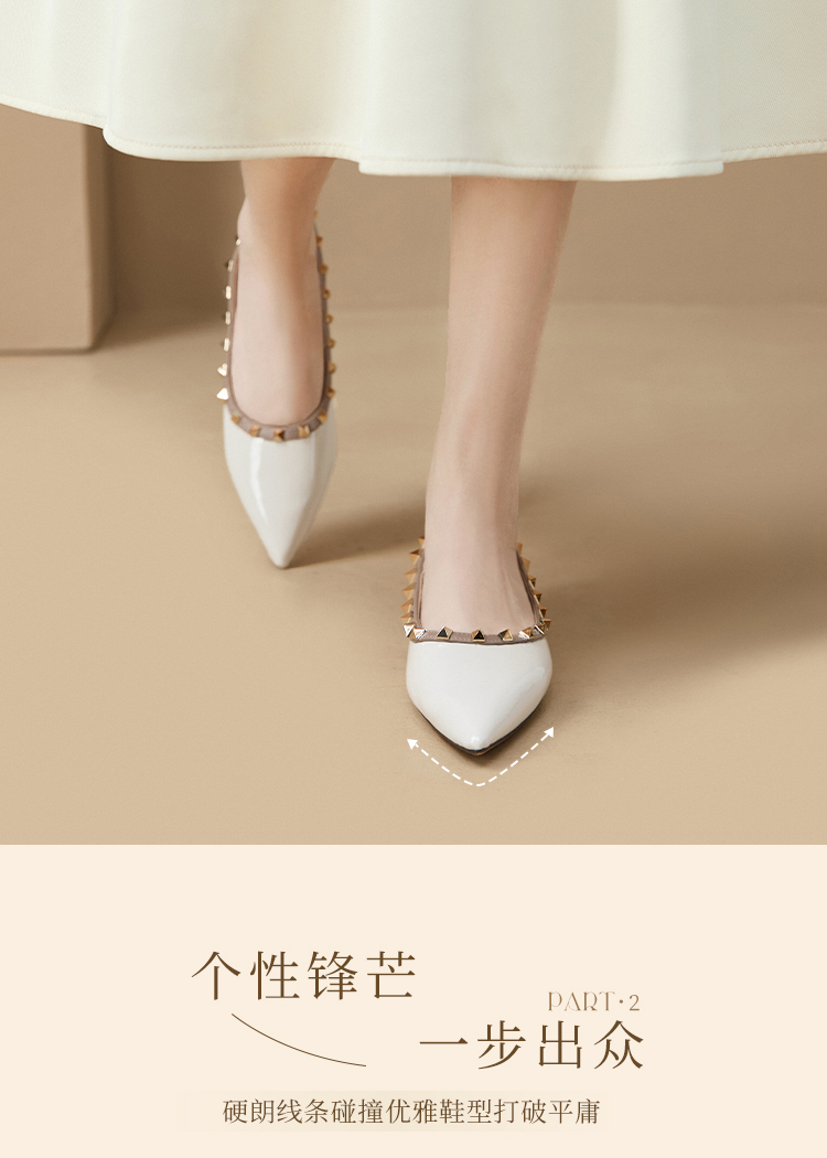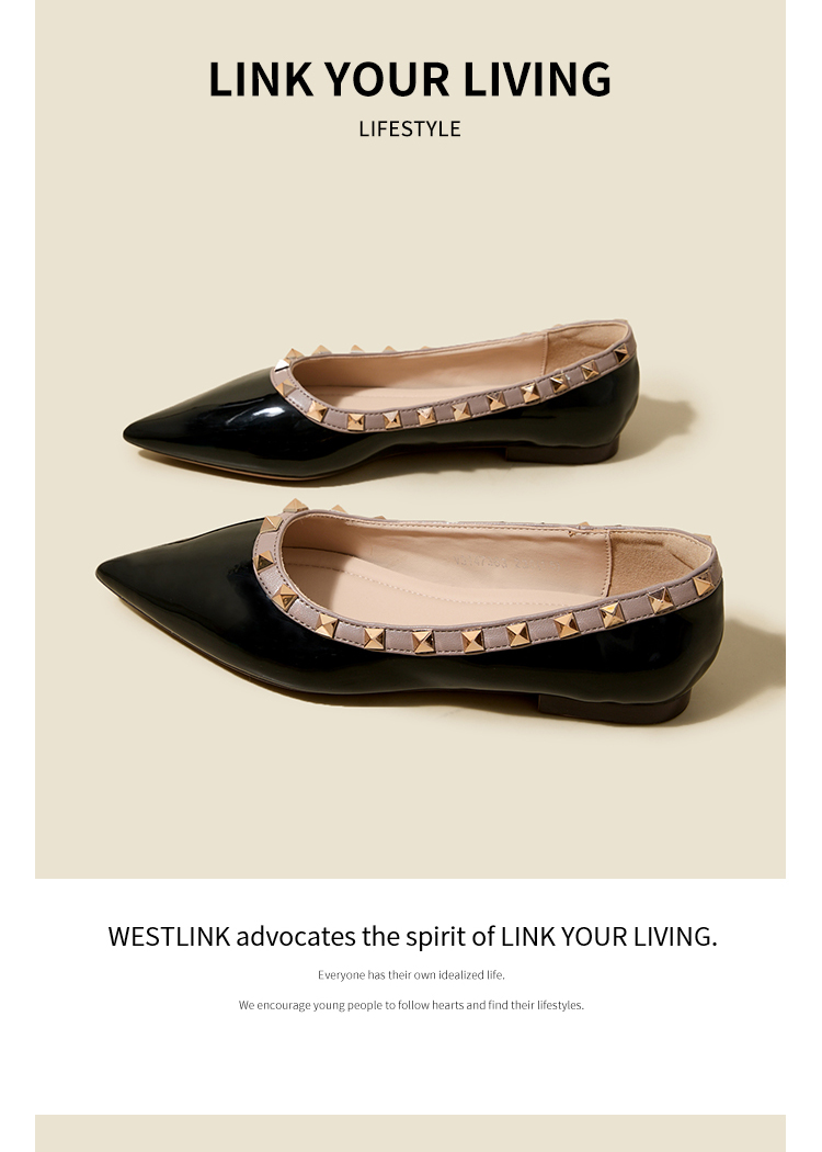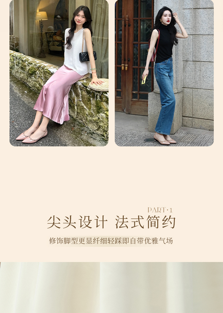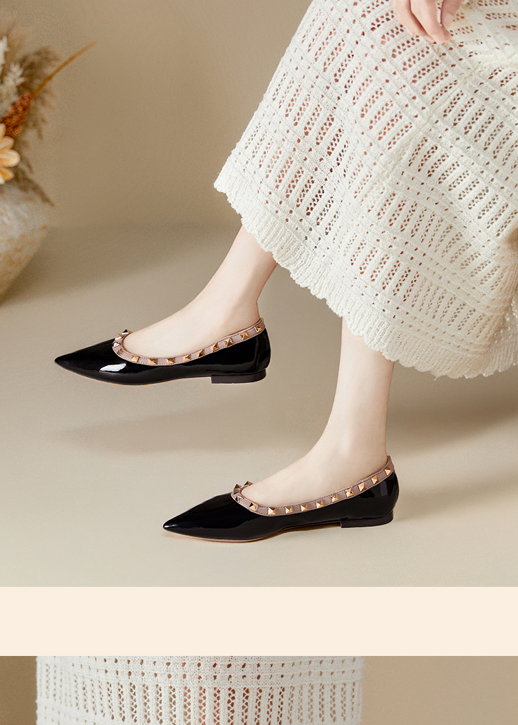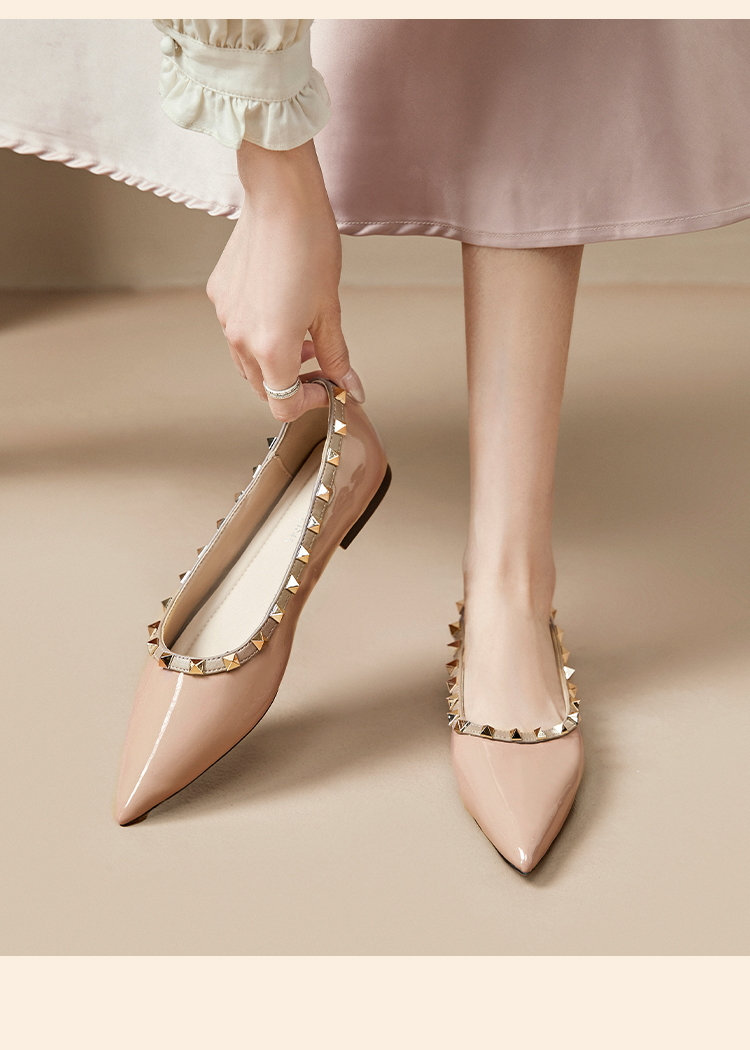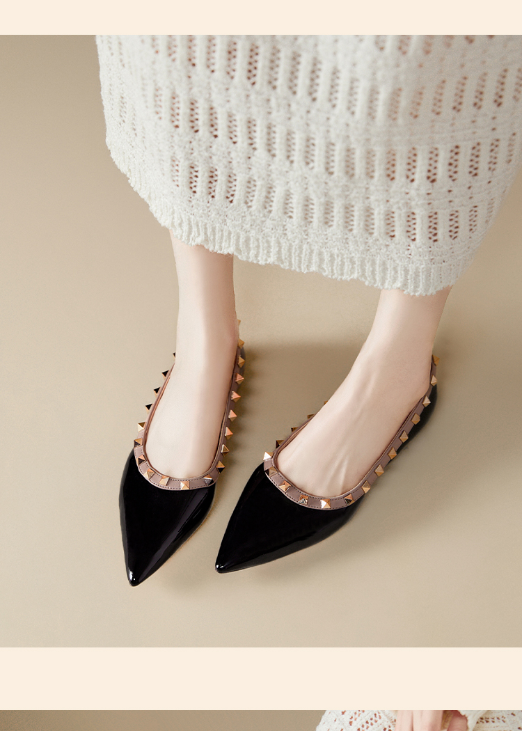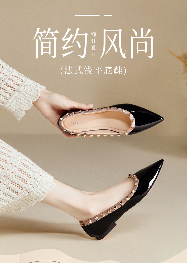西遇铆钉尖头单鞋女新款秋季法式气质高级感瓢鞋浅口平底鞋V3147363