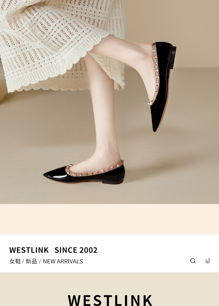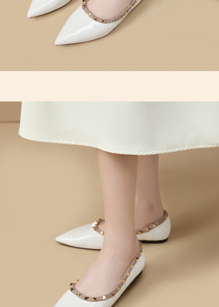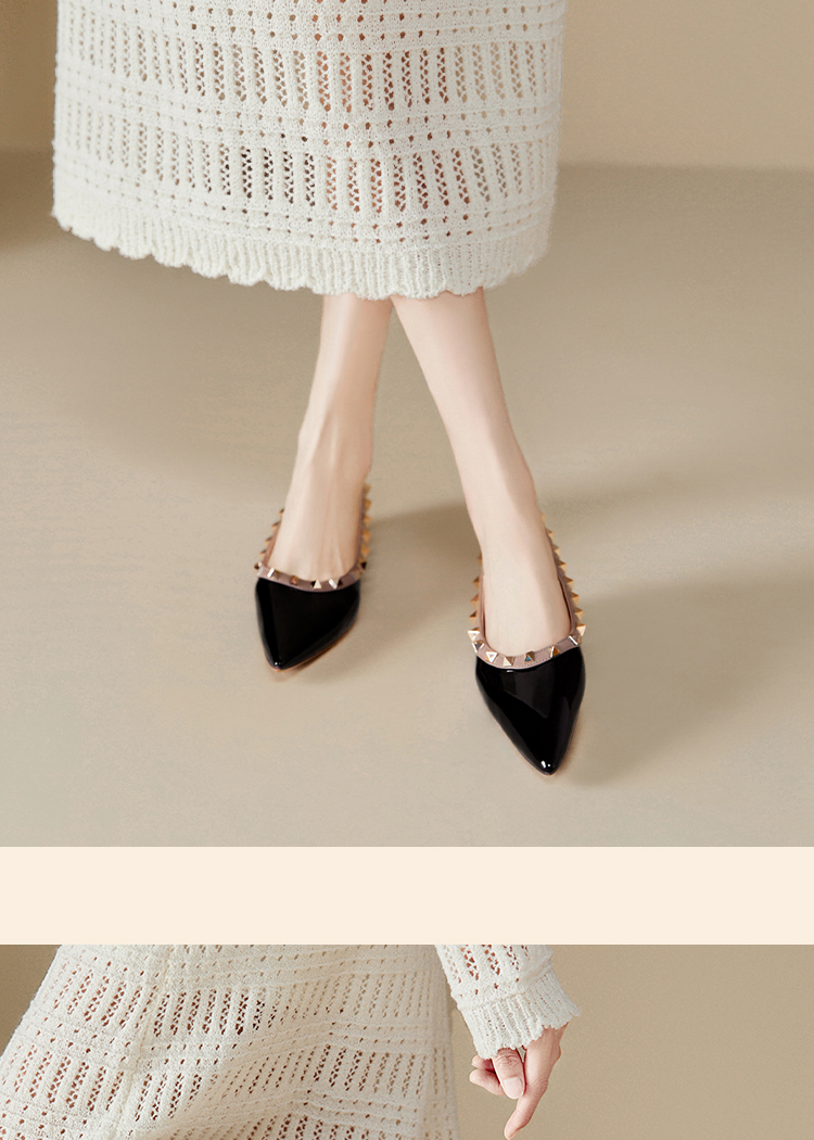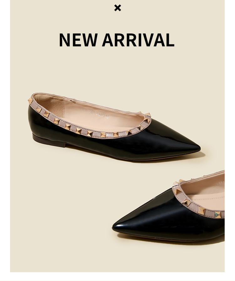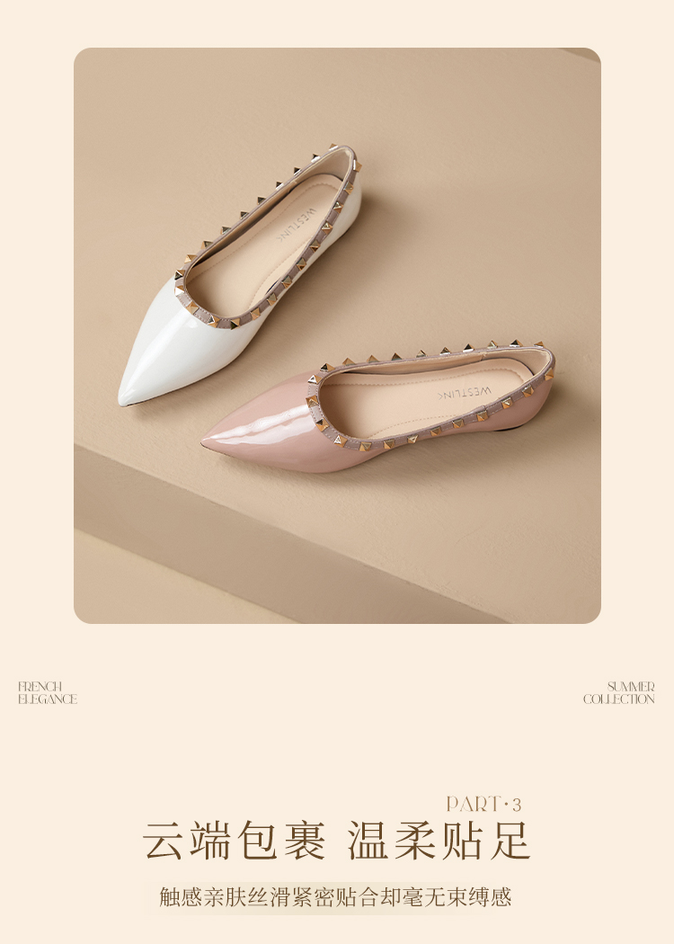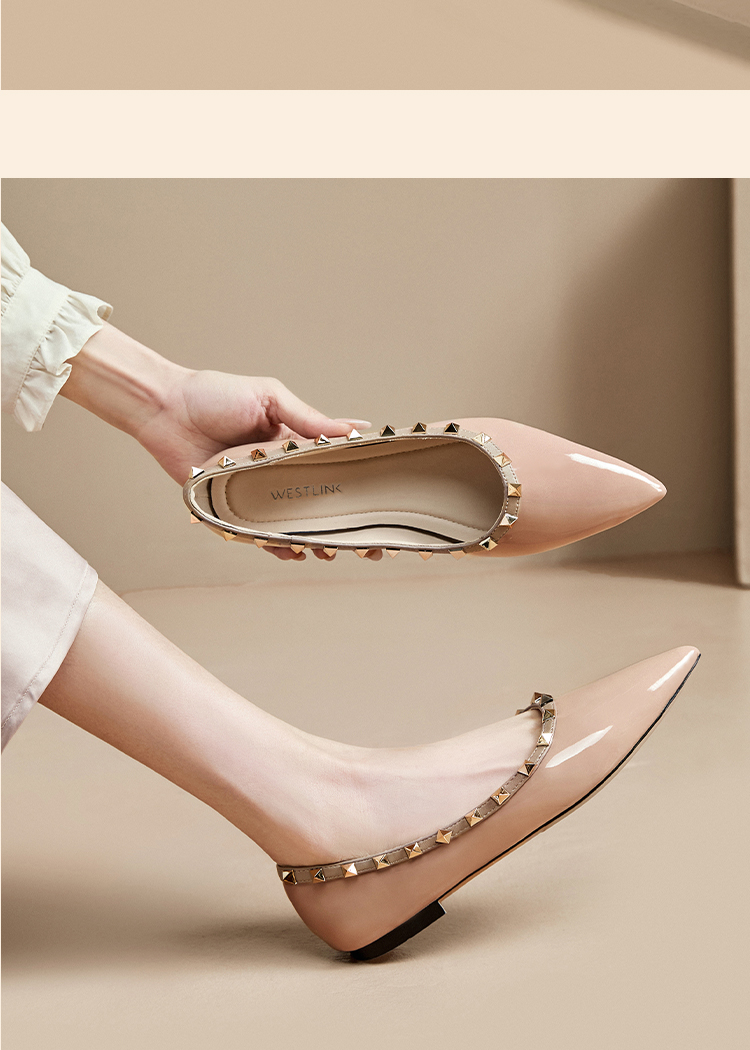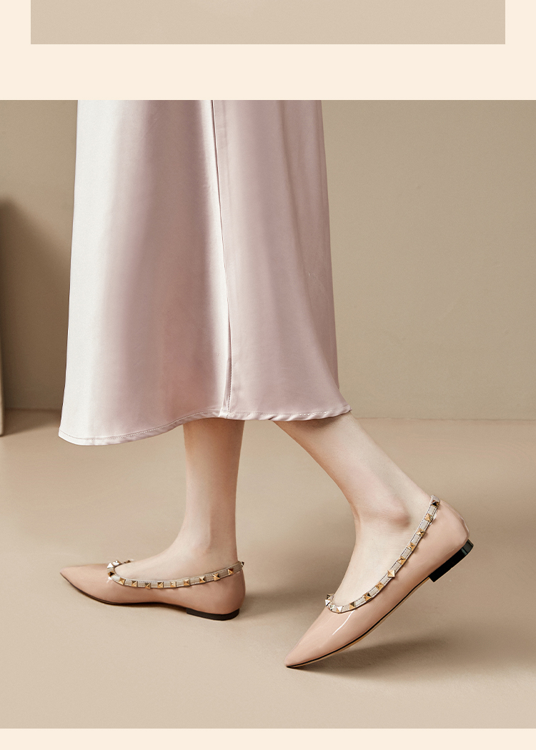 西遇铆钉尖头单鞋女新款秋季法式气质高级感瓢鞋浅口平底鞋V3147363