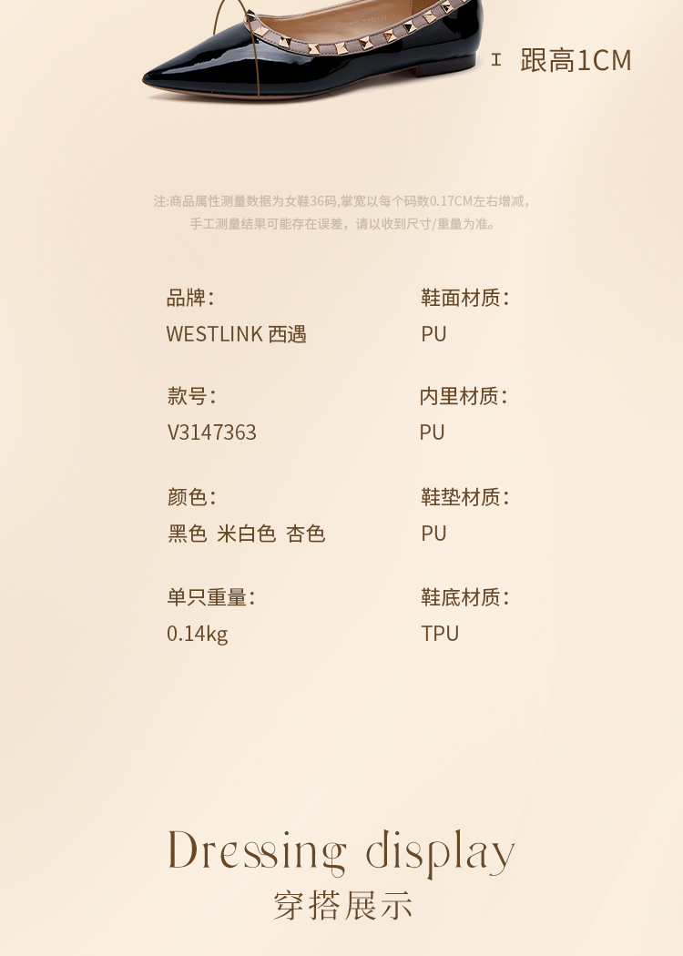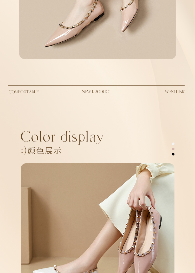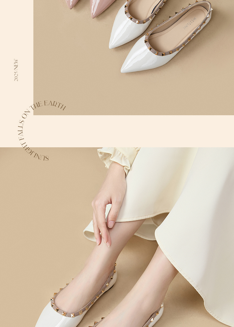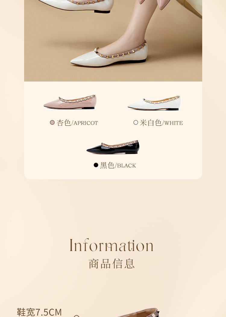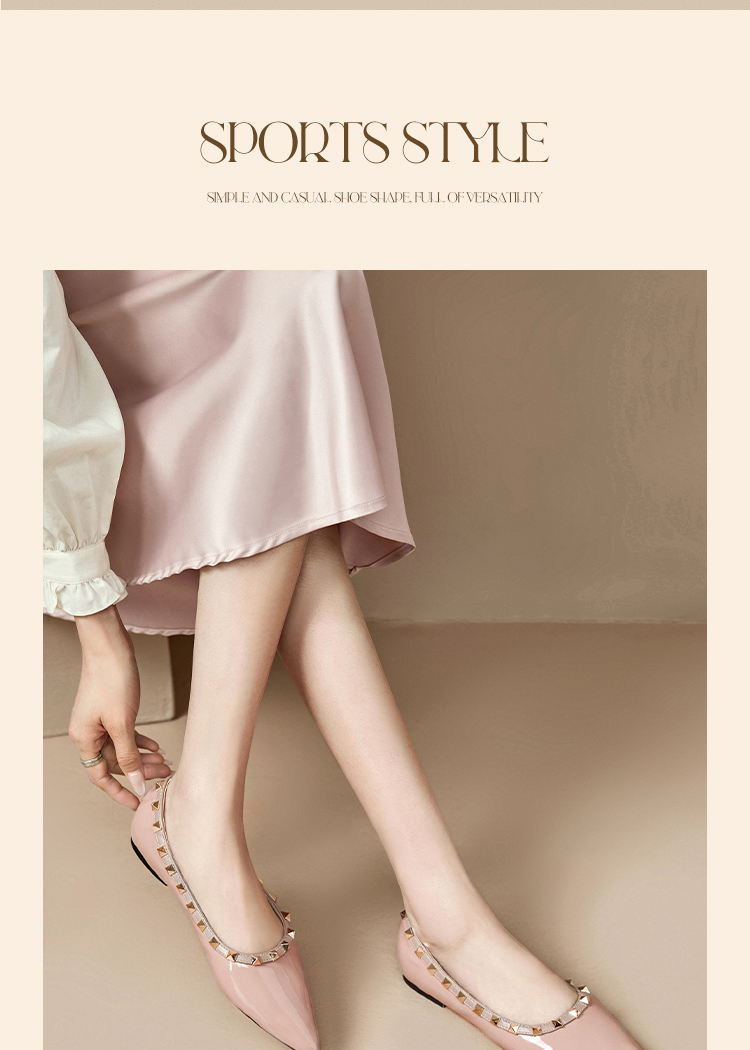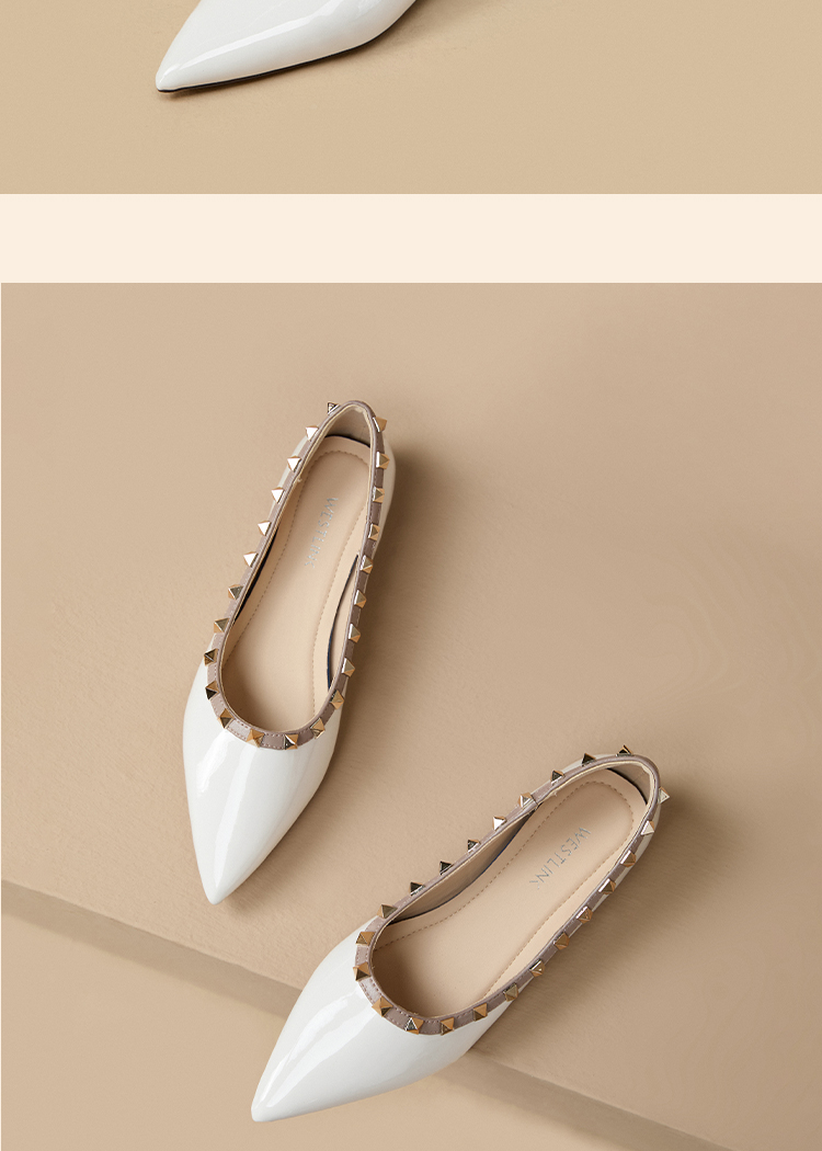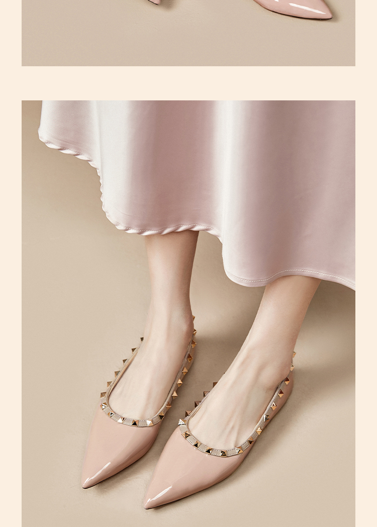 西遇铆钉尖头单鞋女新款秋季法式气质高级感瓢鞋浅口平底鞋V3147363