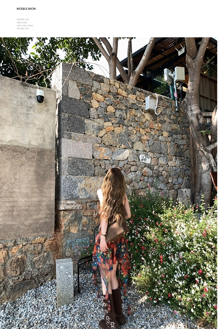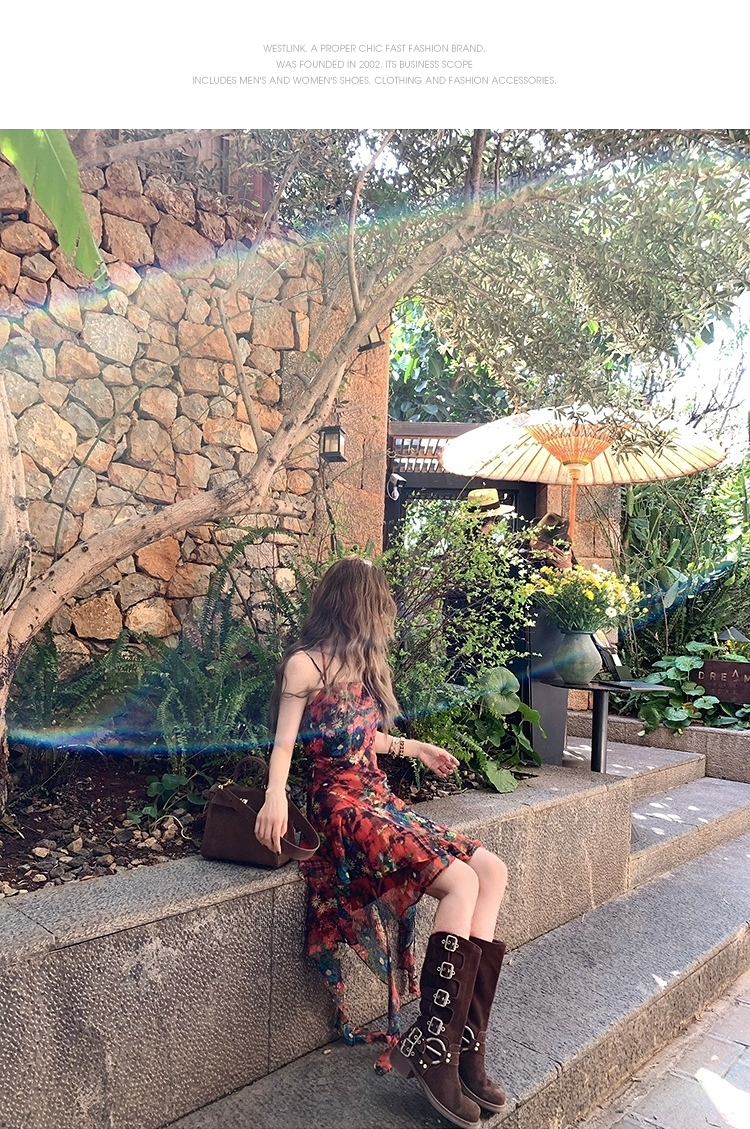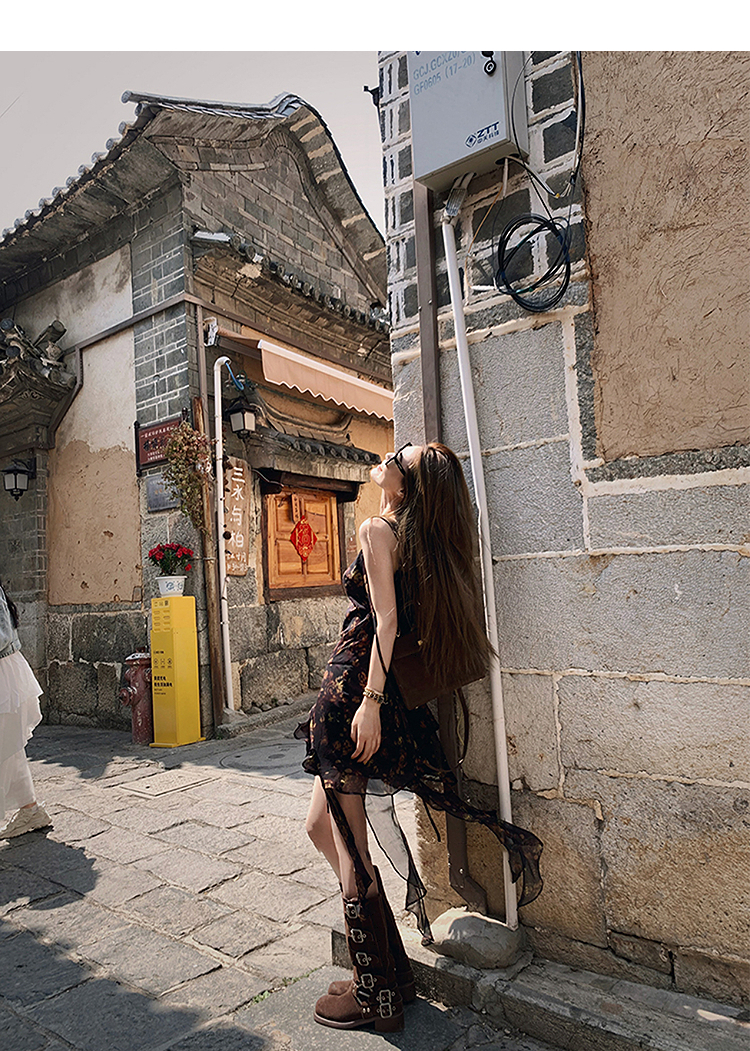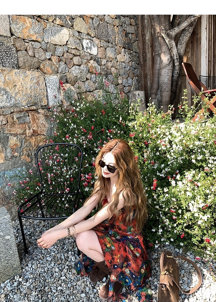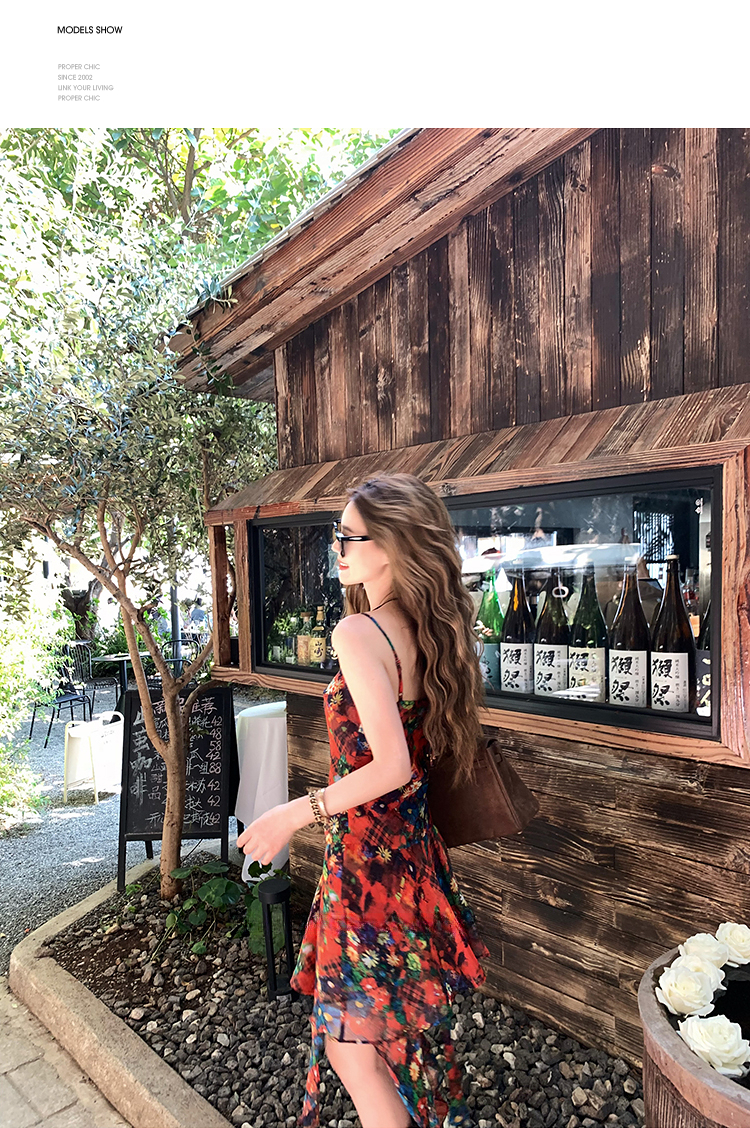 西遇出游吊带裙女夏季新款海边度假风收腰印花连衣裙SS050575