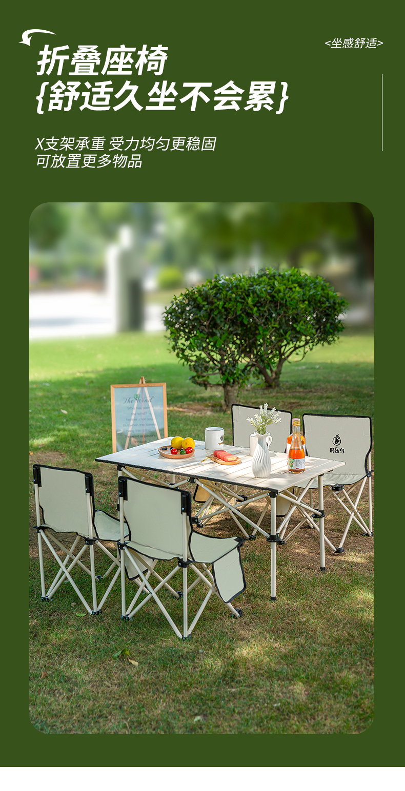 【自营】时乐鸟 轻奢桌椅五件套户外折叠椅桌子凳子 SLN-009