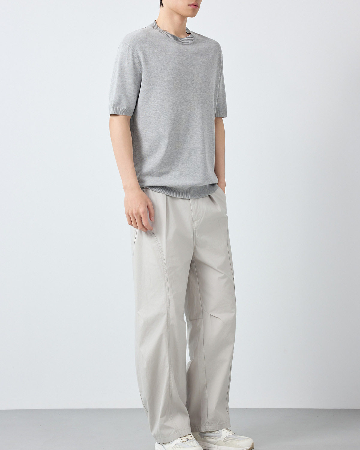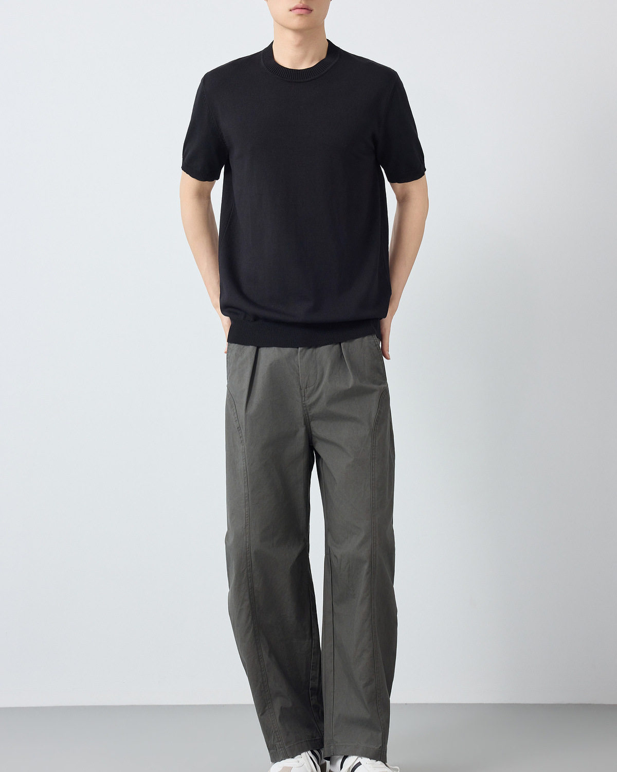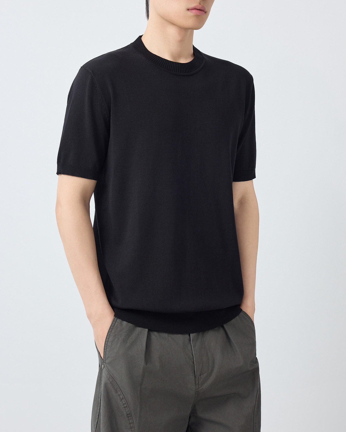 墨麦客男装高智通勤针织短袖t恤男2026春夏新款纯色男士T恤75197.