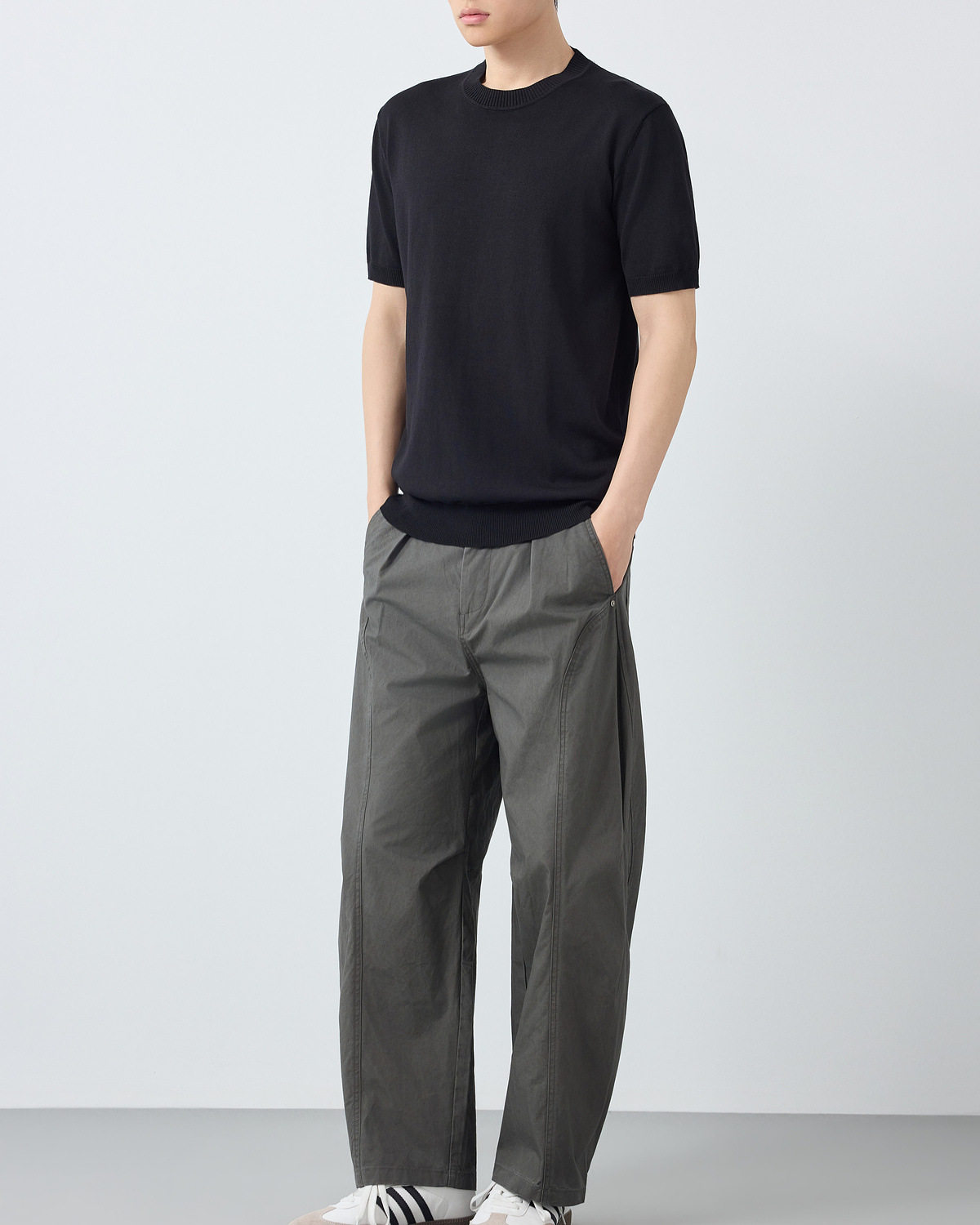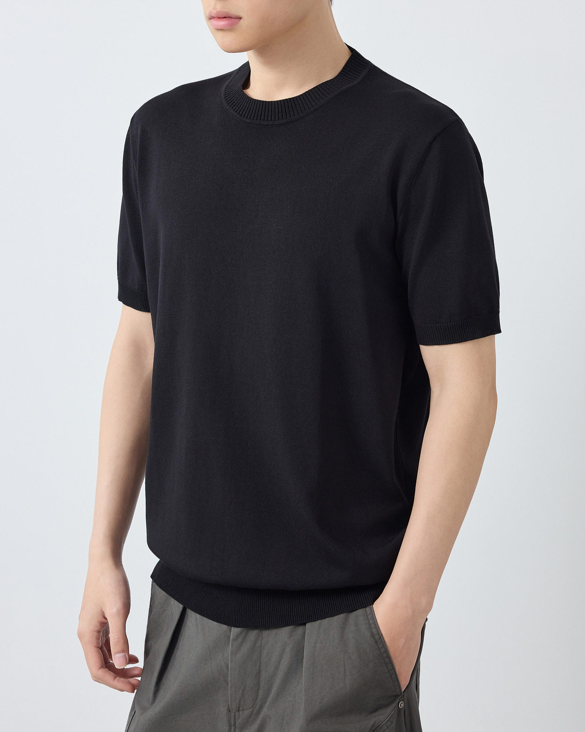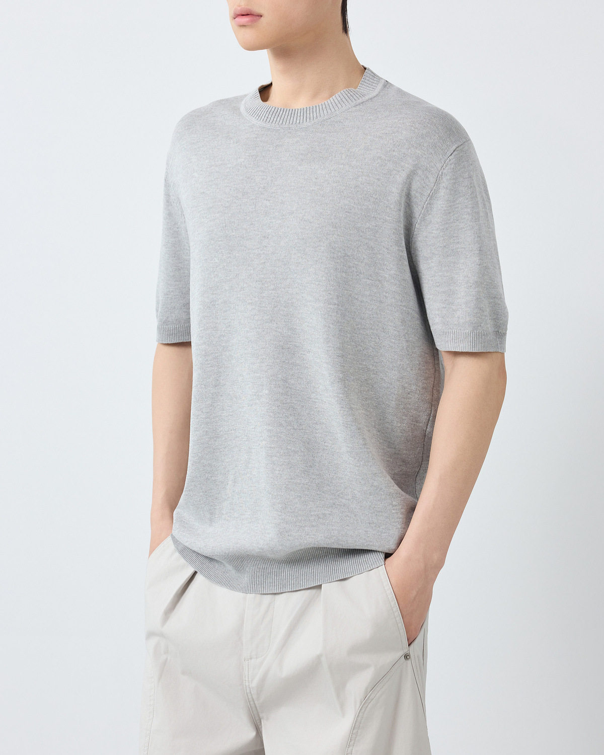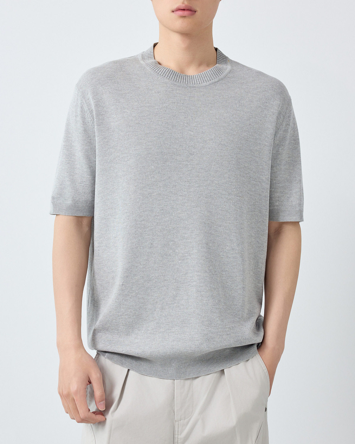 墨麦客男装高智通勤针织短袖t恤男2026春夏新款纯色男士T恤75197.