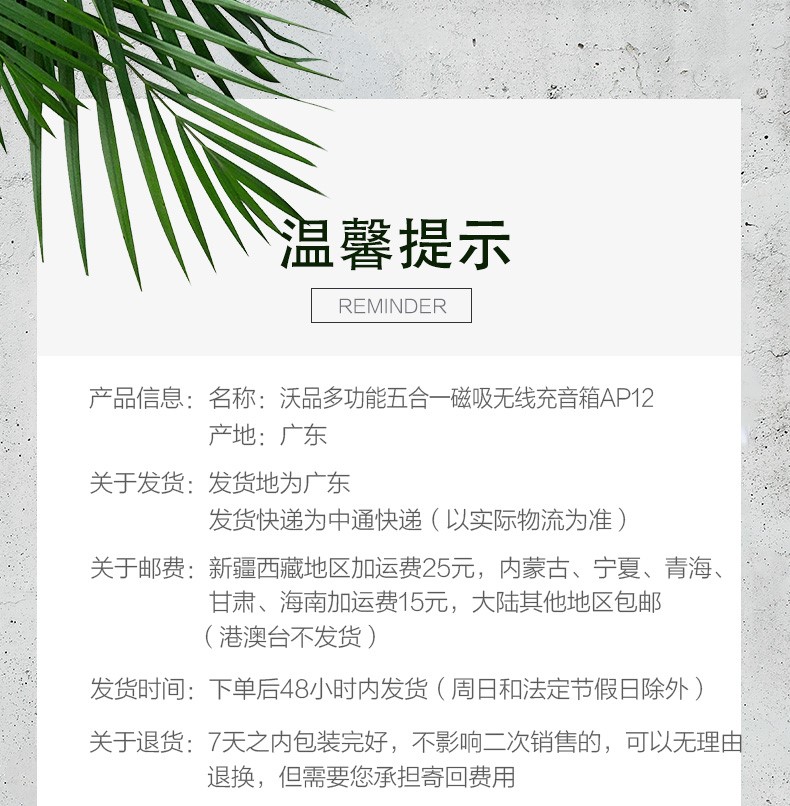 售后政策:支持15天免费试用,非质量问题运费需要卖家自行承担寄回。一年内非人为质量问题免费换新,超过一个月客户承担来回寄出运费。