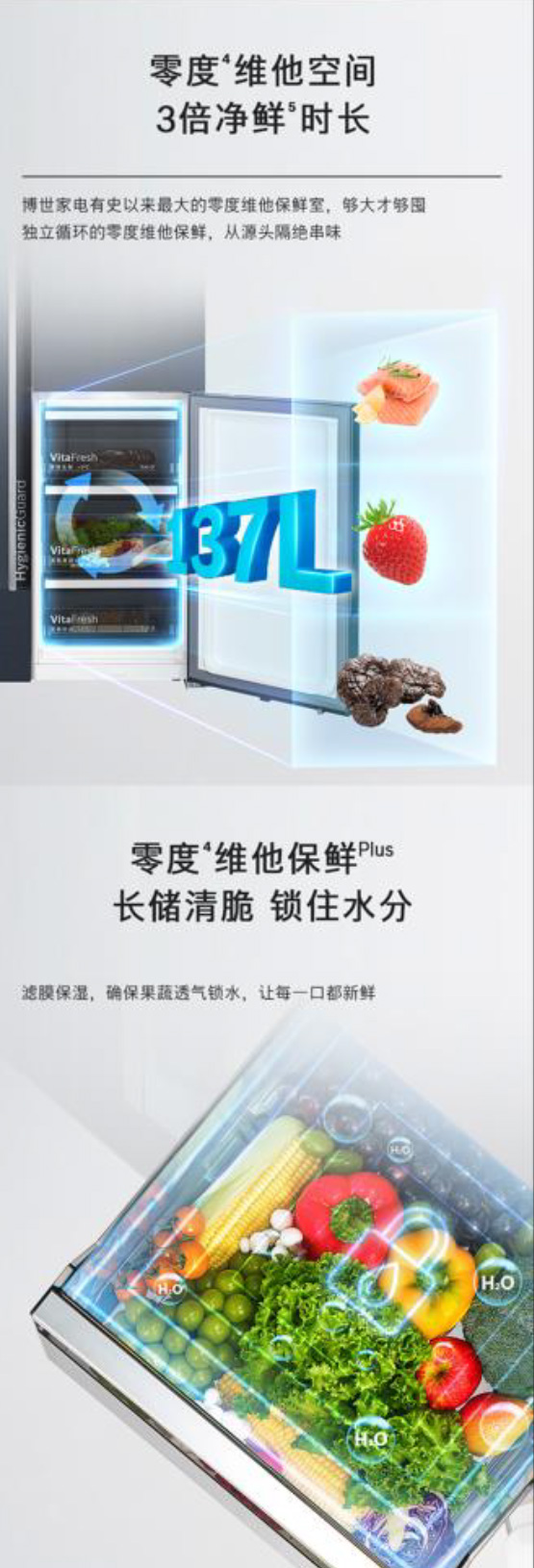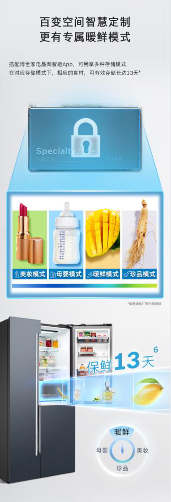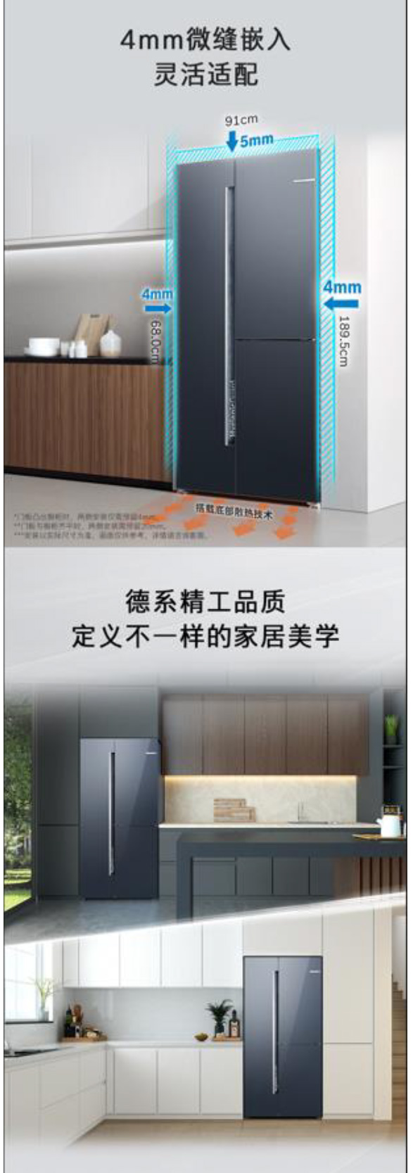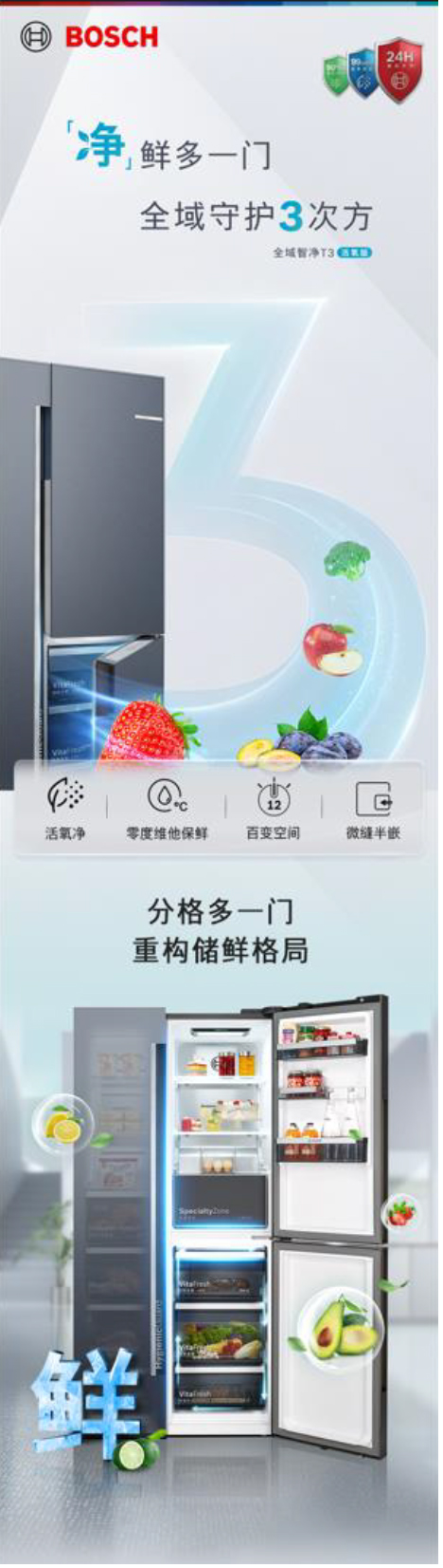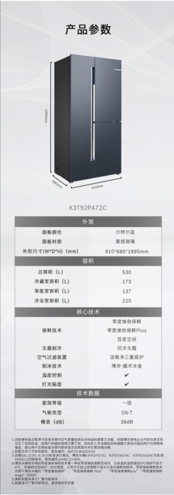 博世(BOSCH) 530升全域智净T3对开双循环活氧零度百变空间保鲜K3T92PA72C 沙特尔蓝
