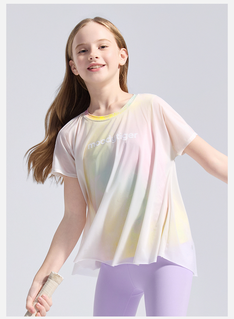 moodytiger速干凉感清爽印花仙女短袖女童T恤欧若风52210122