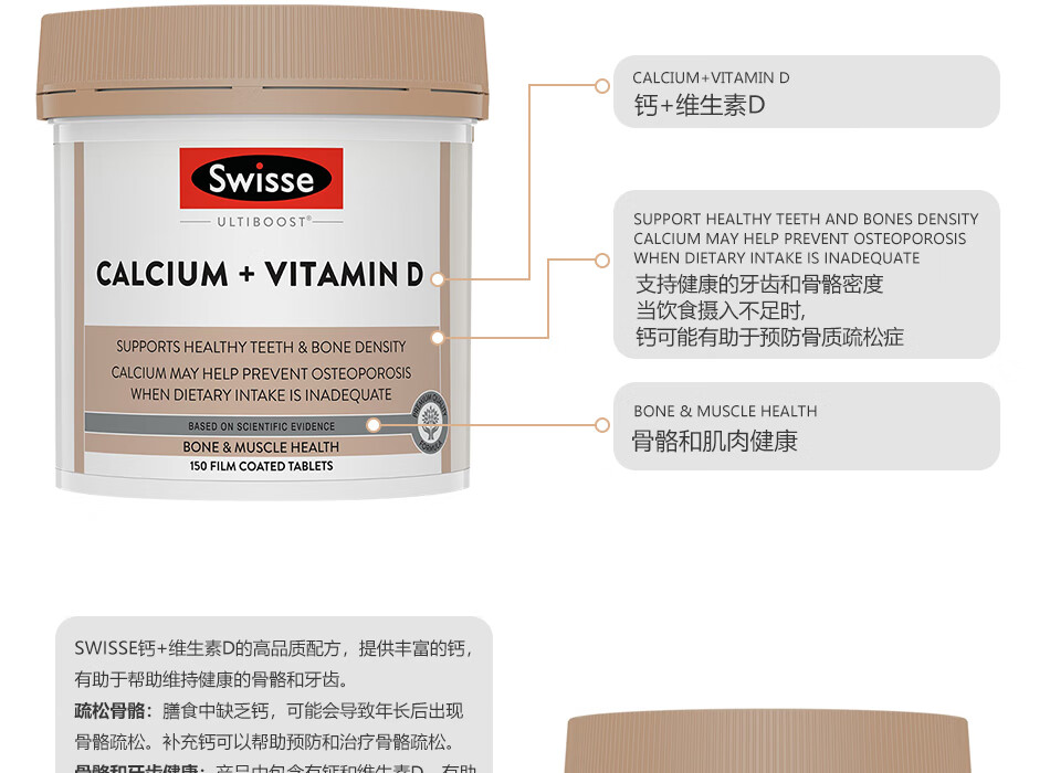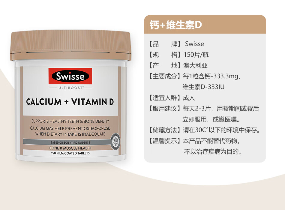 🔥【满满心选3.8 女王节】斯维诗swisse柠檬酸钙+维生素D 150粒