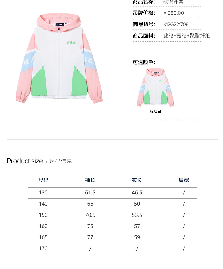 小斐乐儿童梭织外套2022夏季新款女童中大童运动上衣防晒服K12G221707F