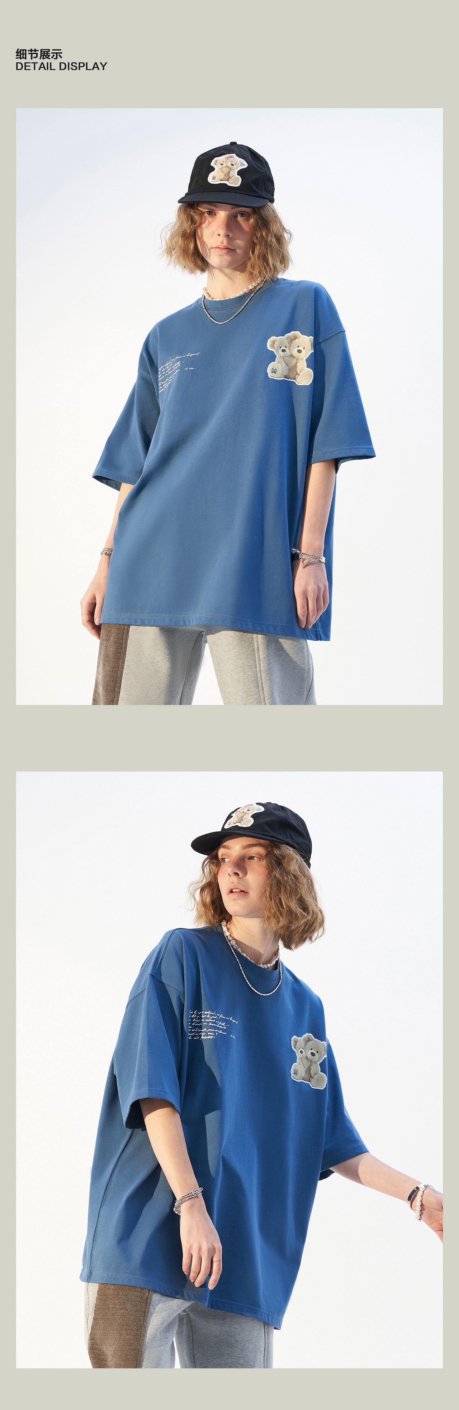 | 领型: 圆领 | 颜色: 灰蓝色 |