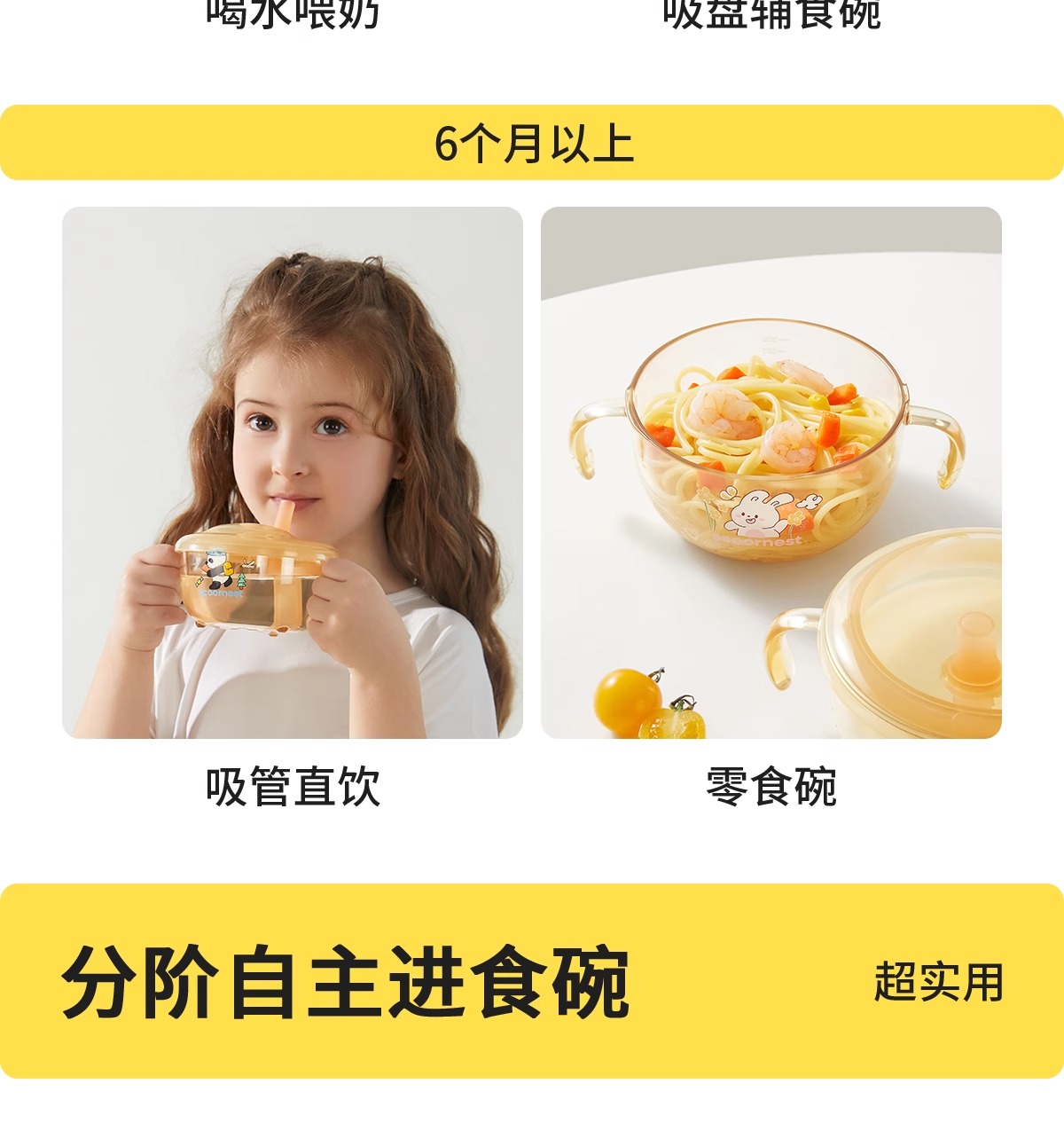 科巢宝宝喝汤吸管碗喂养米粉婴幼儿专用PPSU辅食吸盘碗儿童餐具