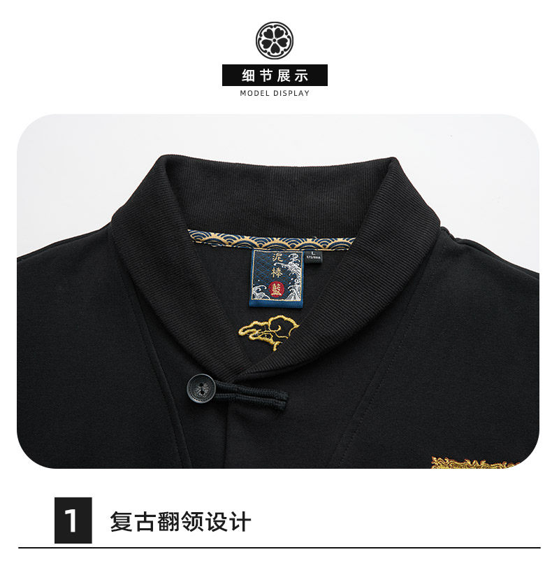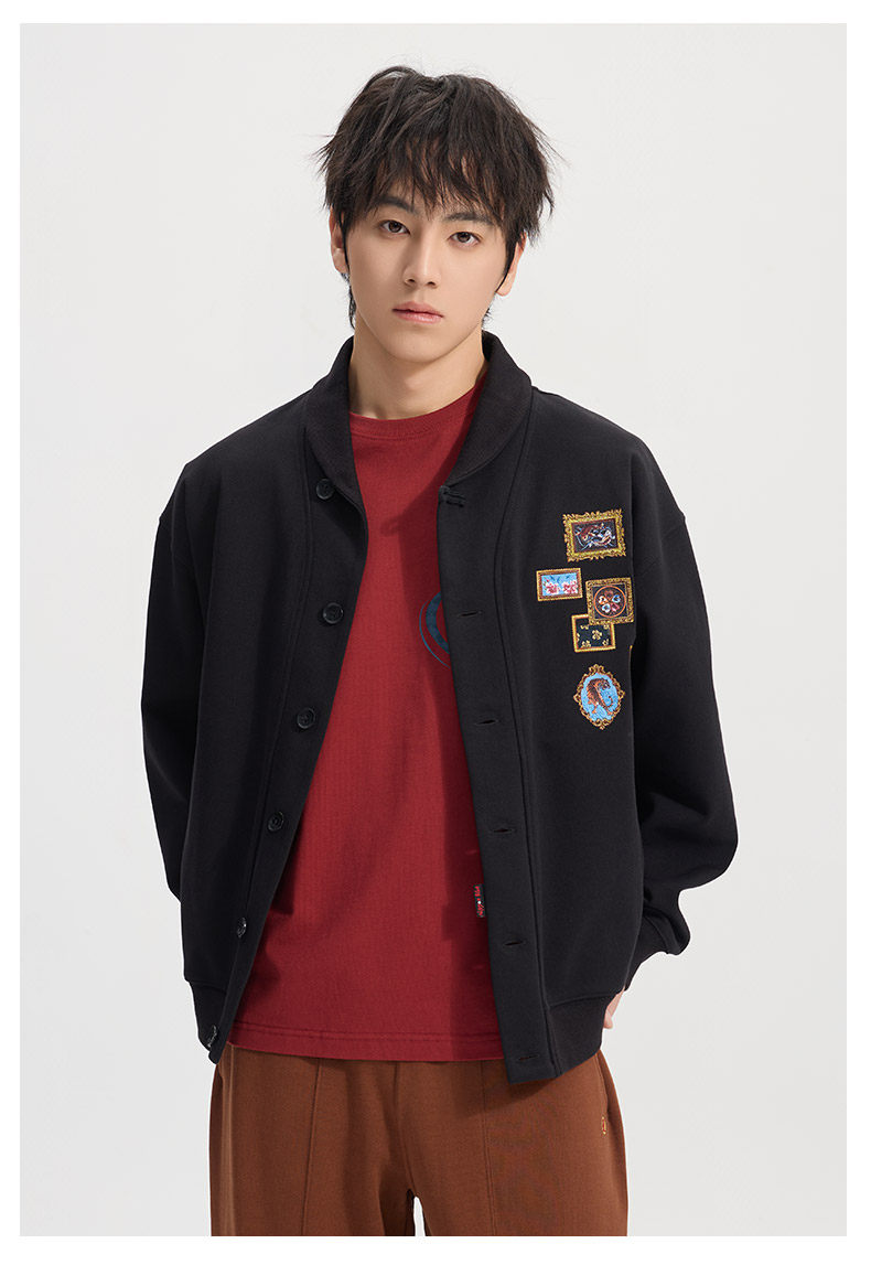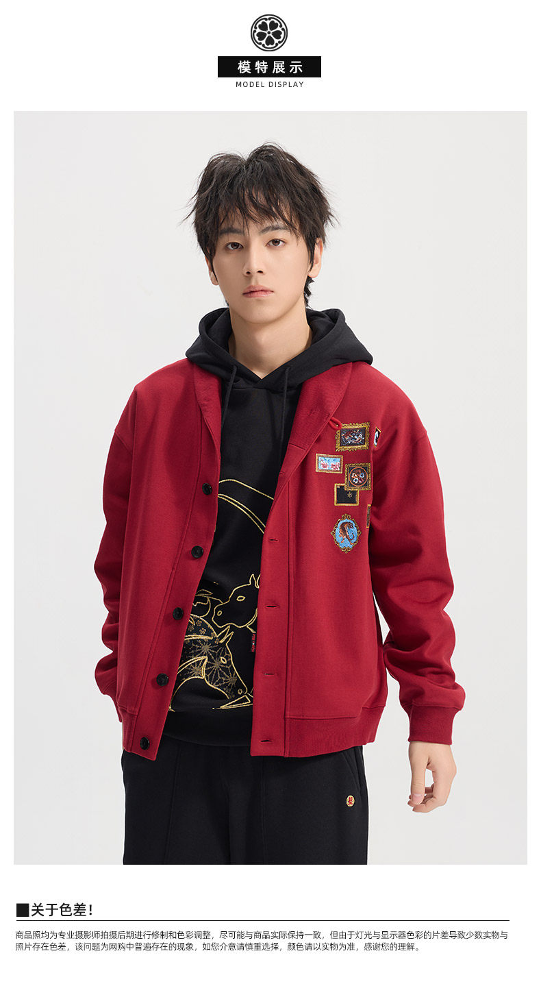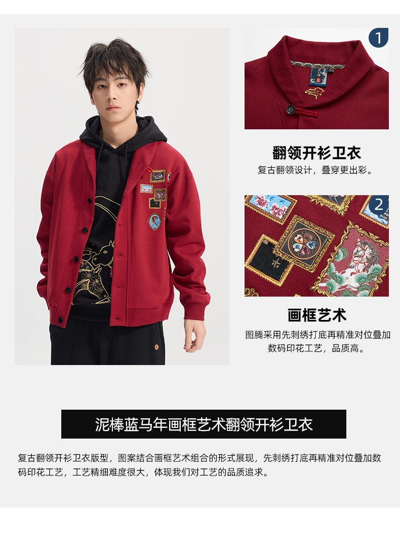 ONIARAI/鬼洗26春季新泥棒蓝马年画框艺术翻领开衫卫衣男 26NOB54