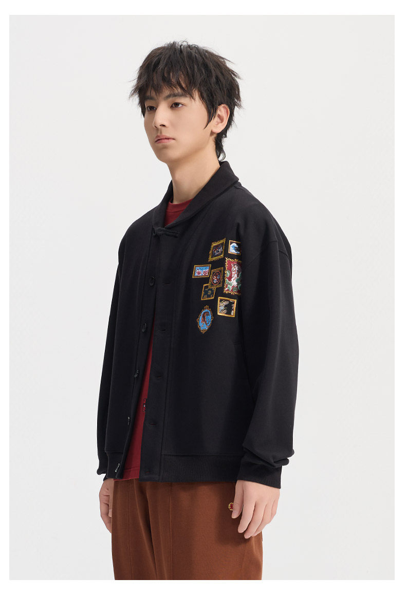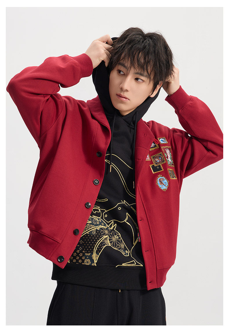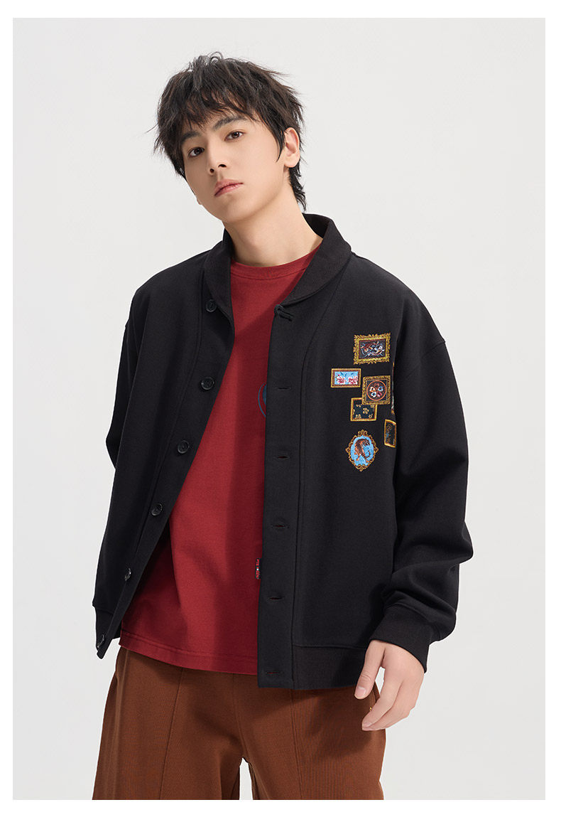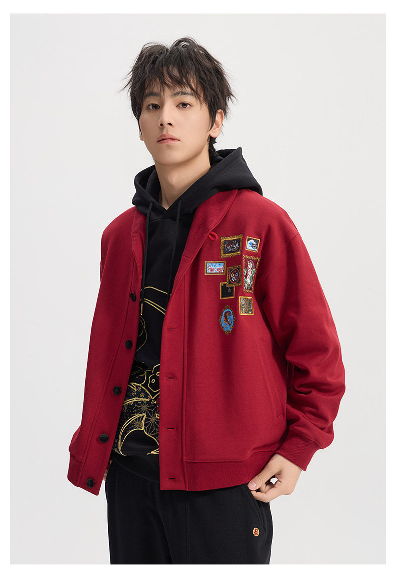 ONIARAI/鬼洗26春季新泥棒蓝马年画框艺术翻领开衫卫衣男 26NOB54