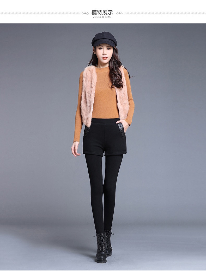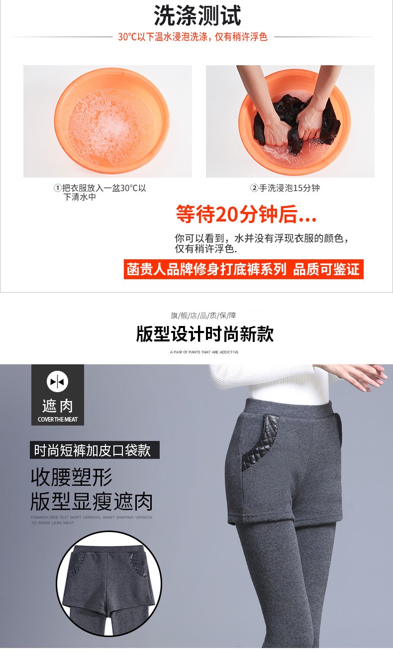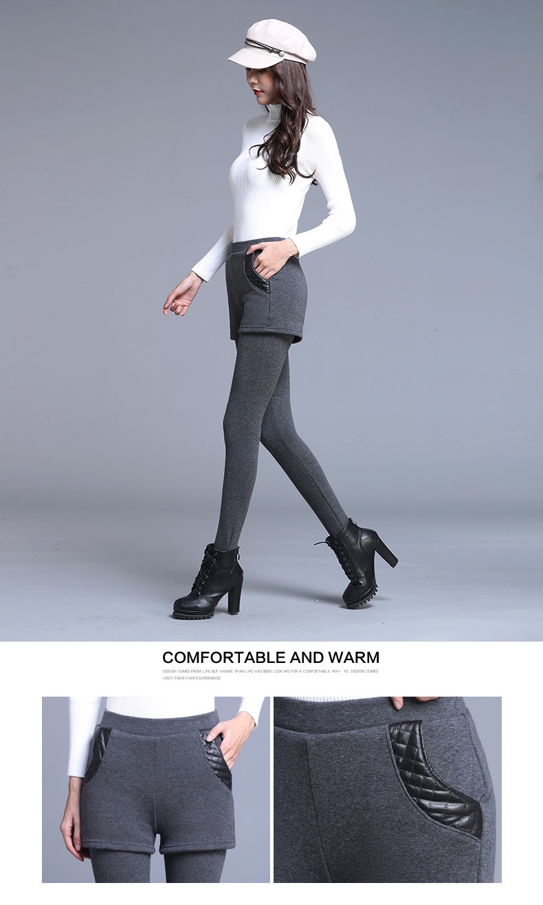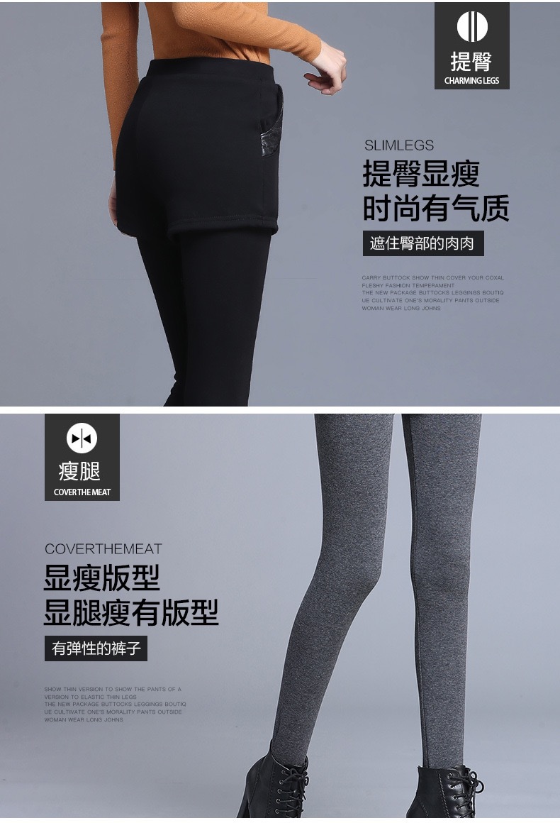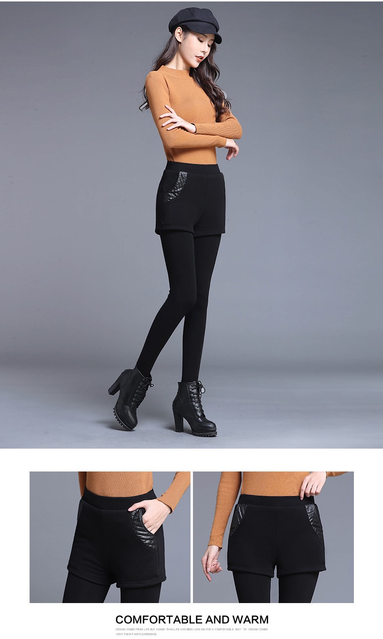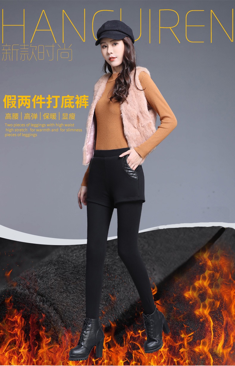 【冬季女士爆款】加绒加厚假两件打底裤外穿高腰弹力修身保暖裤短裤小脚裤女新款