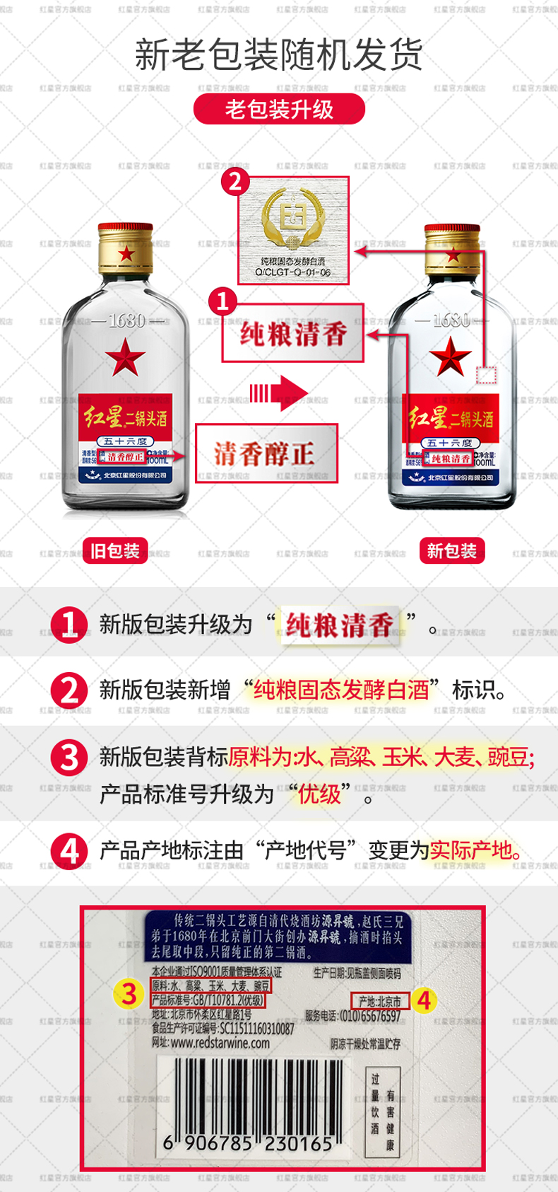 红星二锅头酒(D12)[白扁]整箱56度100mL*24瓶