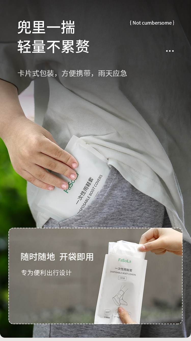 FaSoLa鞋套一次性雨鞋套儿童雨天防水防滑压缩卡片脚套成人便携加厚长款