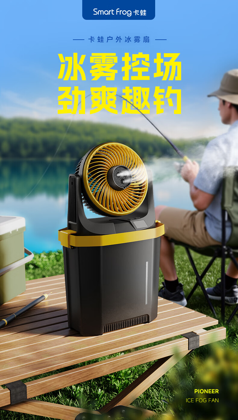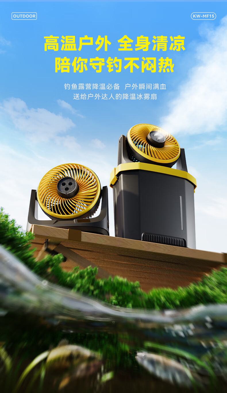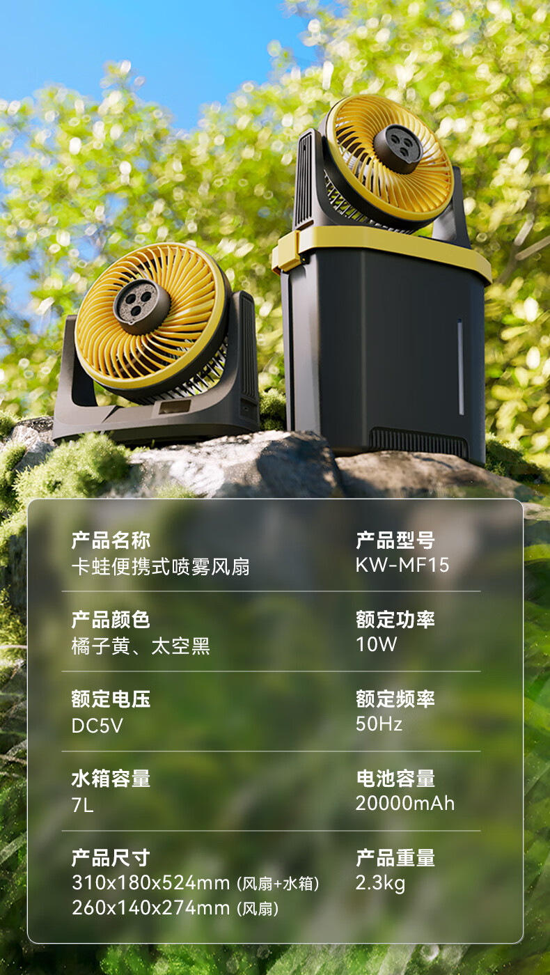 【小家电】卡蛙电风扇户外露营钓鱼喷雾降温大容量电池usb无线便携风扇台式风扇水雾冰雾扇MF15 HF