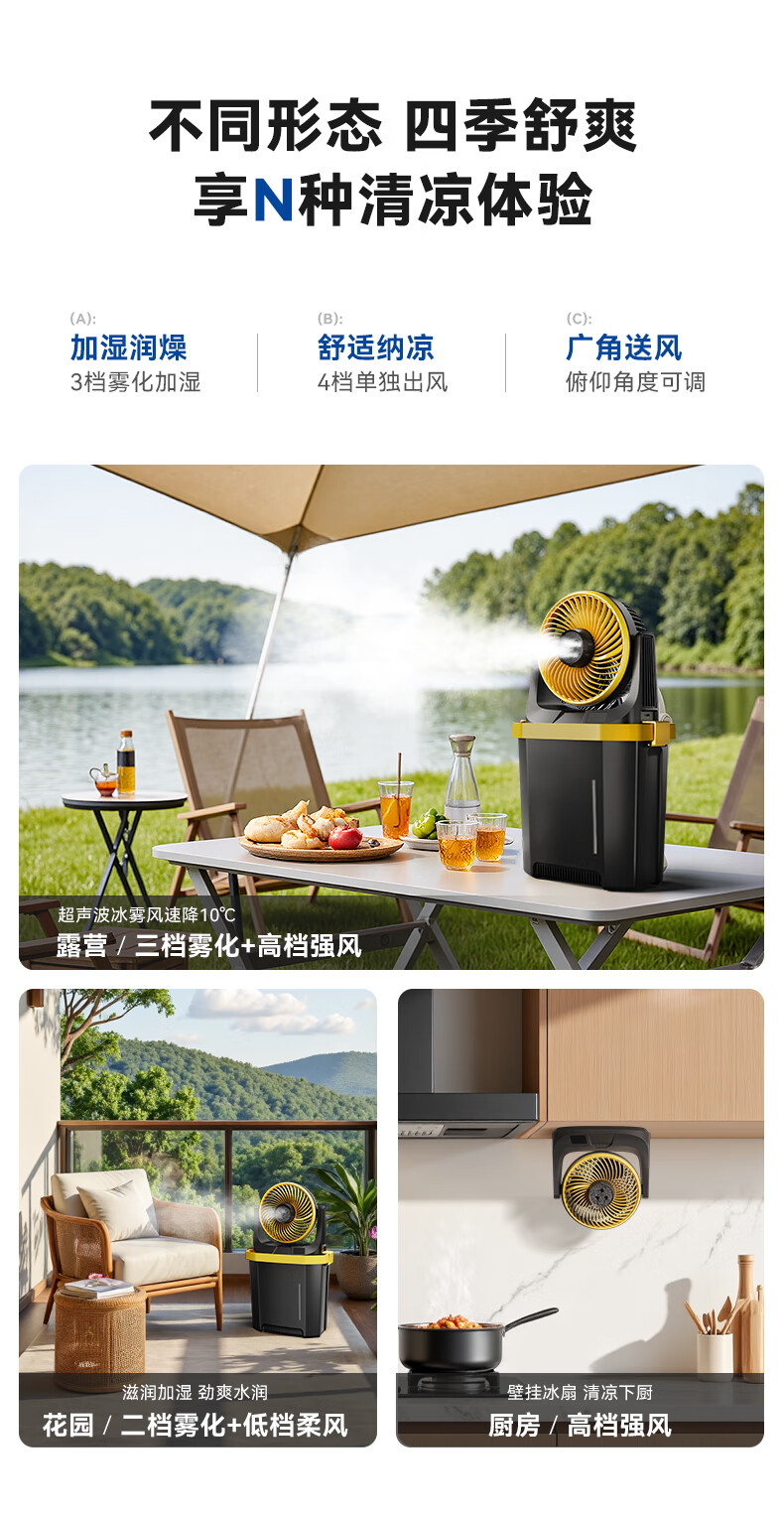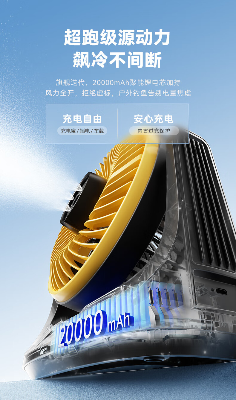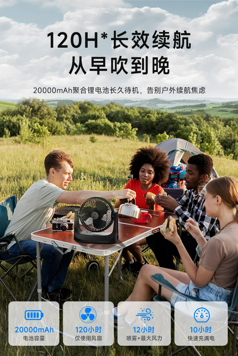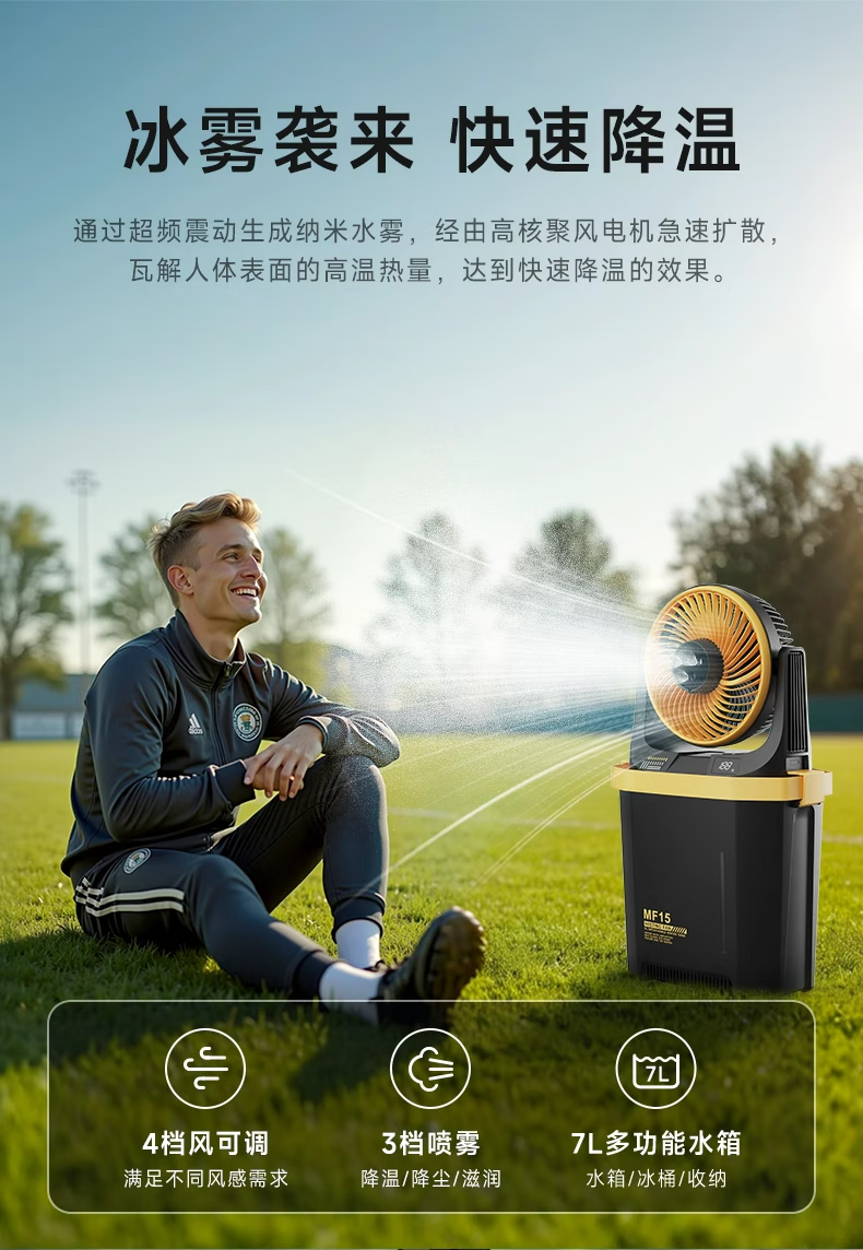 【小家电】卡蛙电风扇户外露营钓鱼喷雾降温大容量电池usb无线便携风扇台式风扇水雾冰雾扇MF15 HF