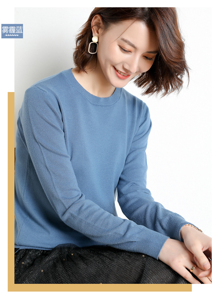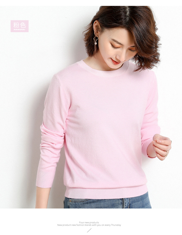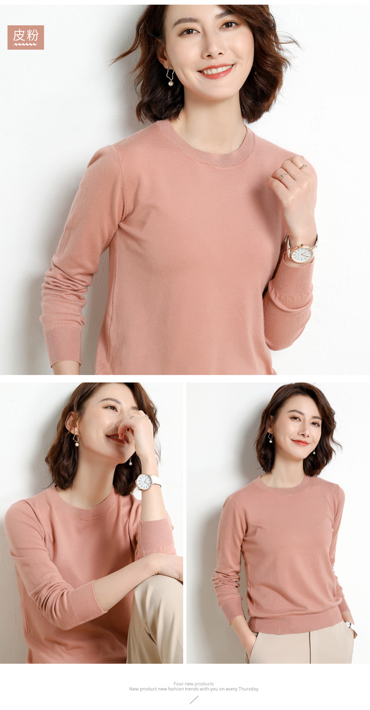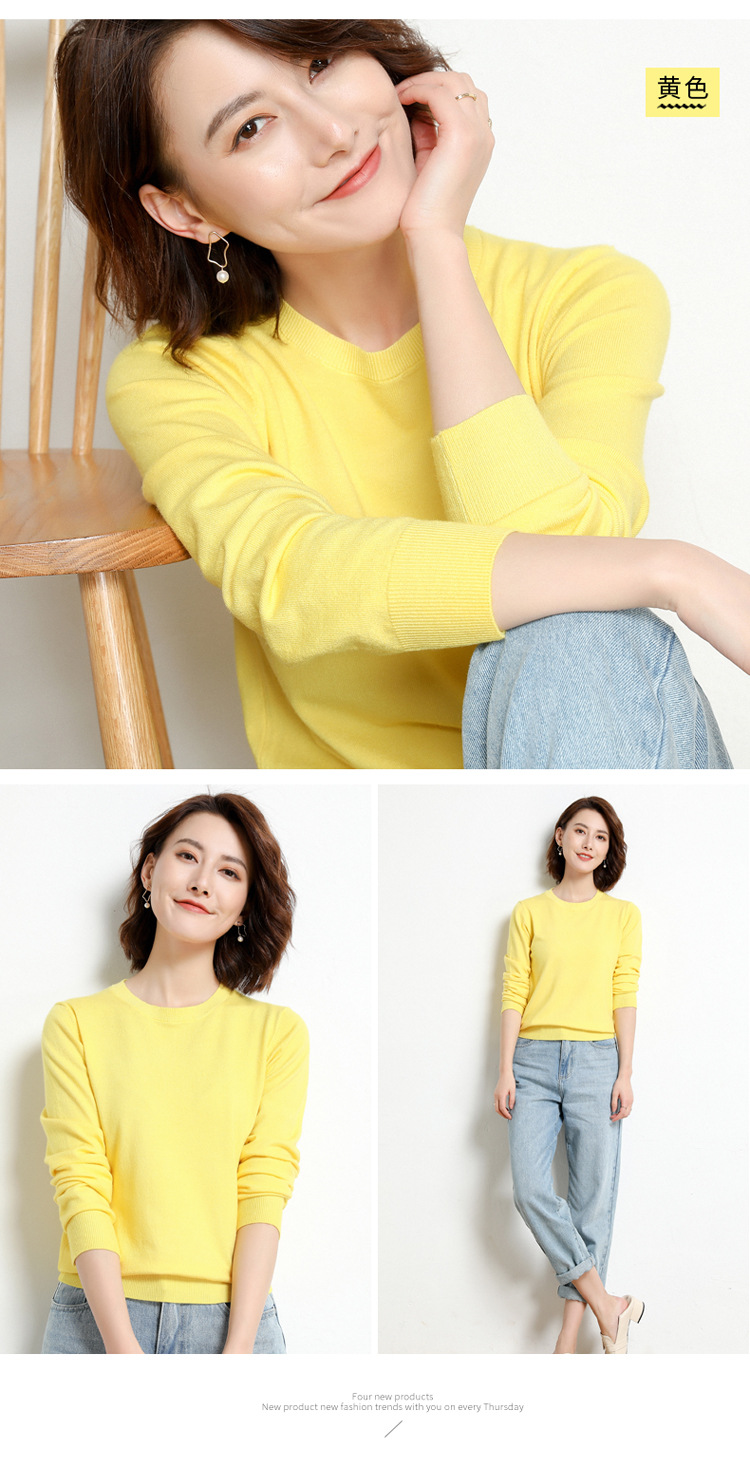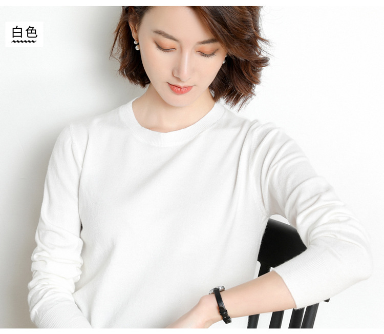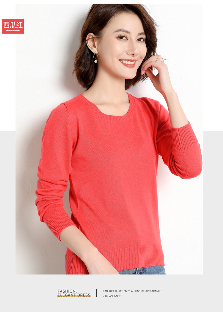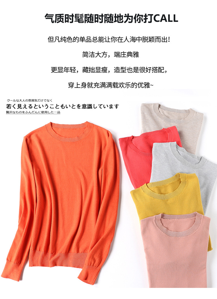 韩版爆款纯色针织衫新款新品 韩版毛衣女套头圆领短款宽松百搭打底衫秋冬薄款针织衫新款新品