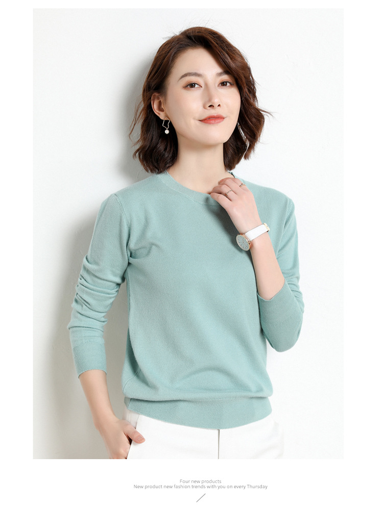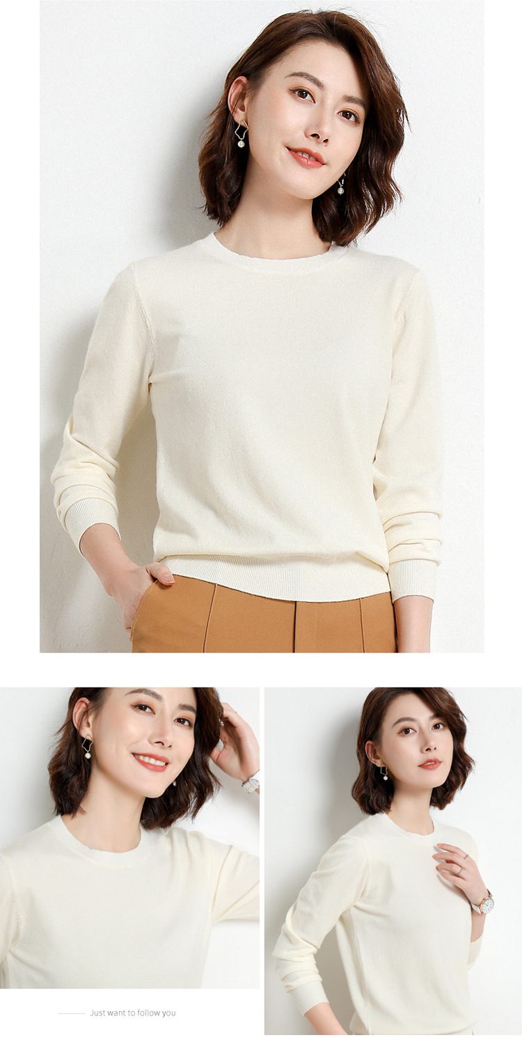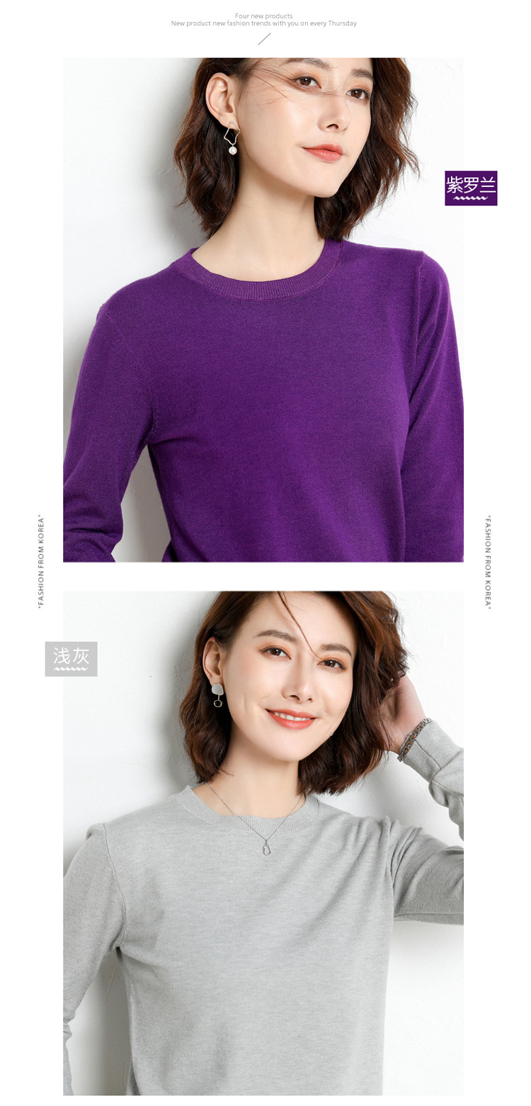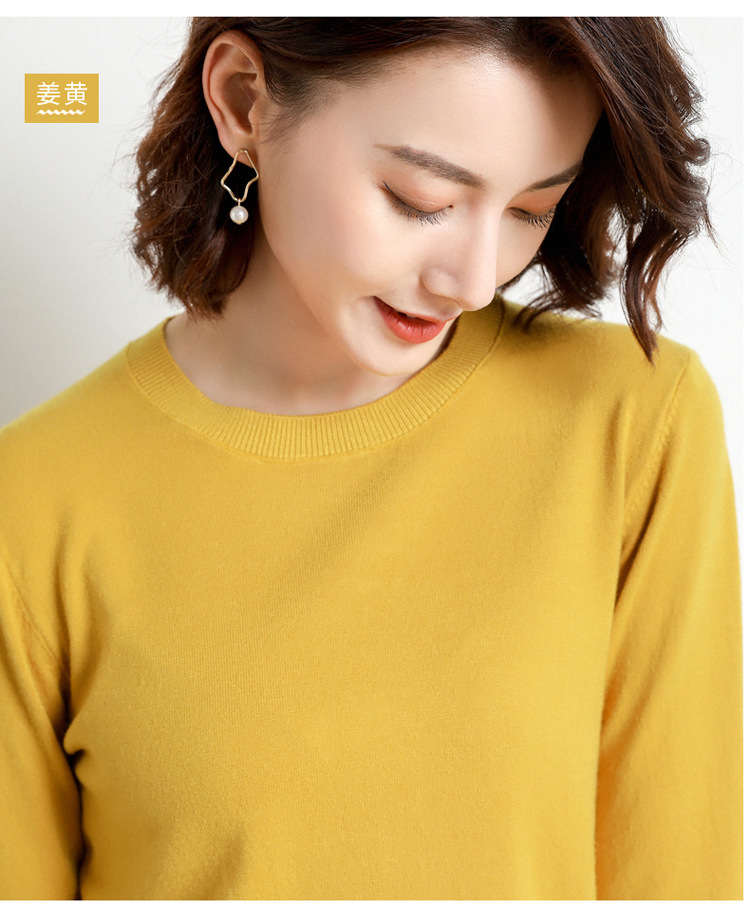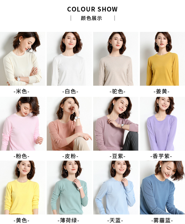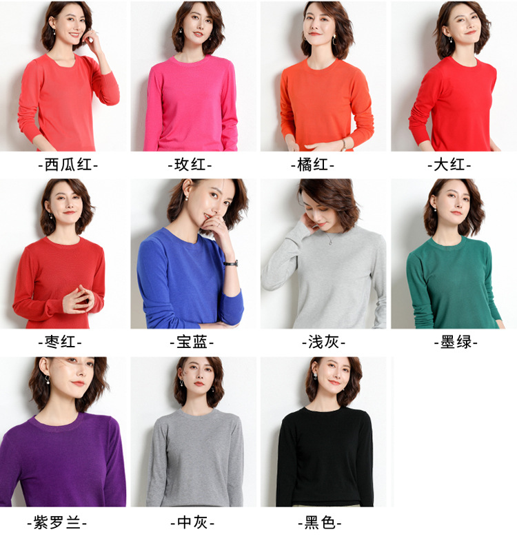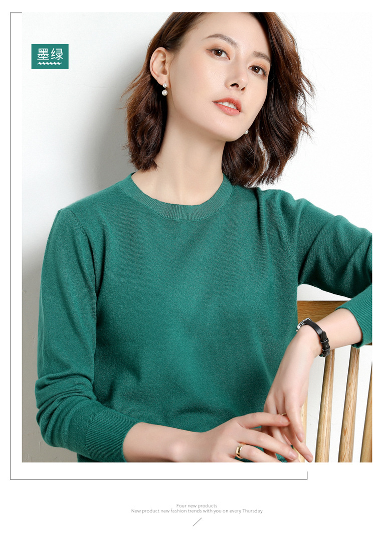 韩版爆款纯色针织衫新款新品 韩版毛衣女套头圆领短款宽松百搭打底衫秋冬薄款针织衫新款新品