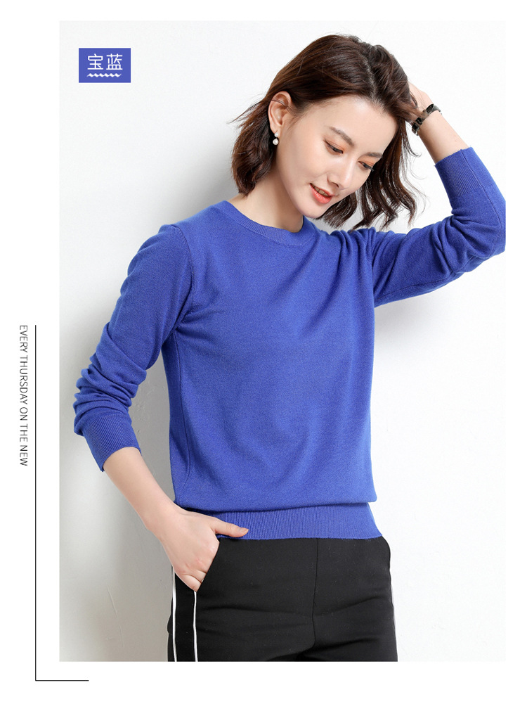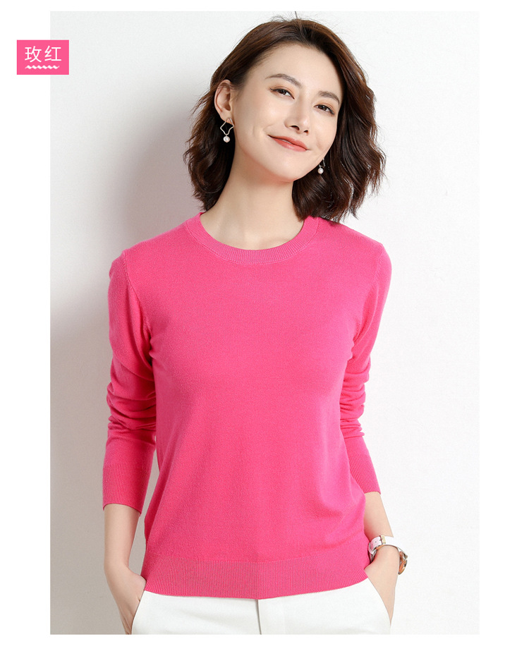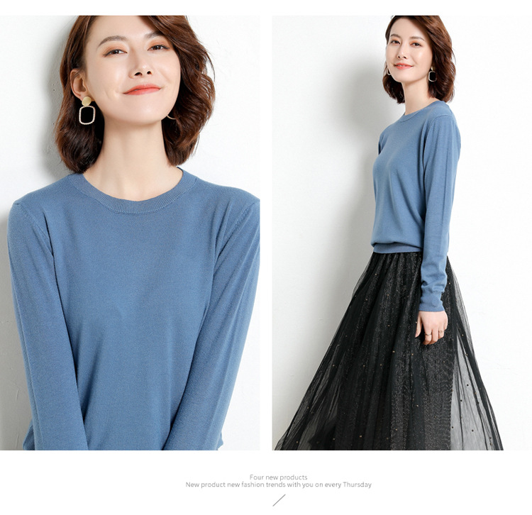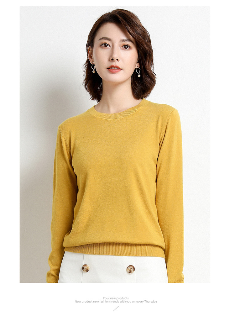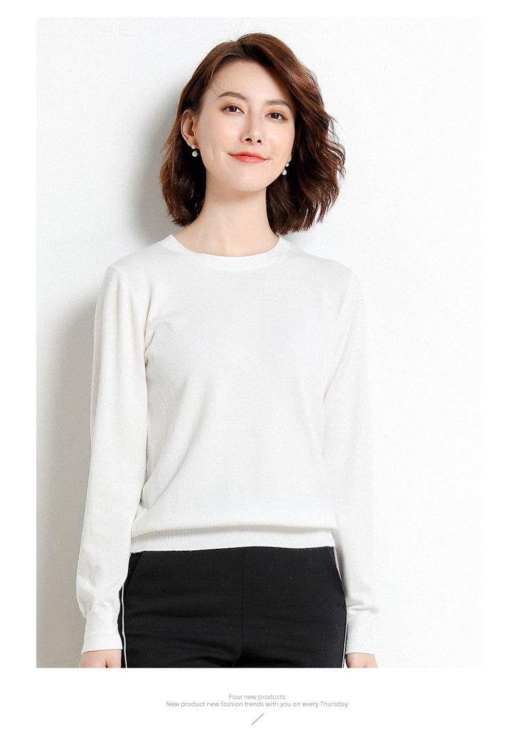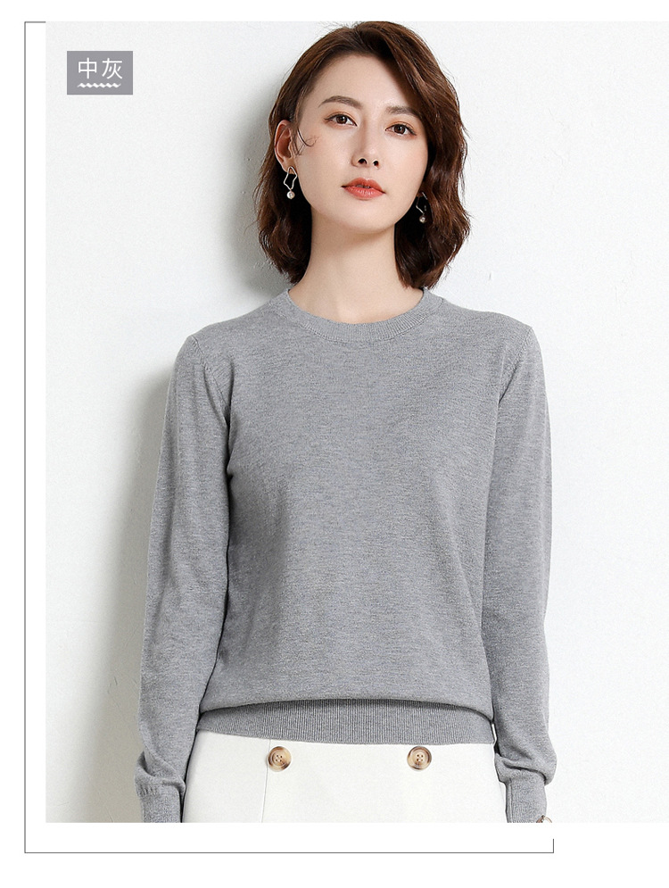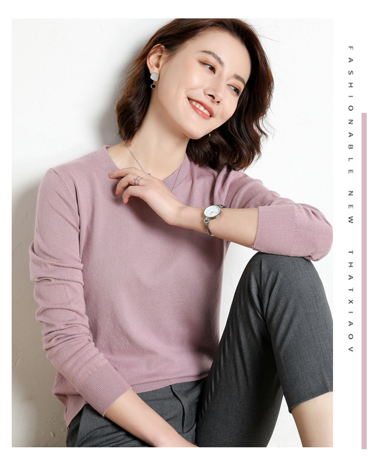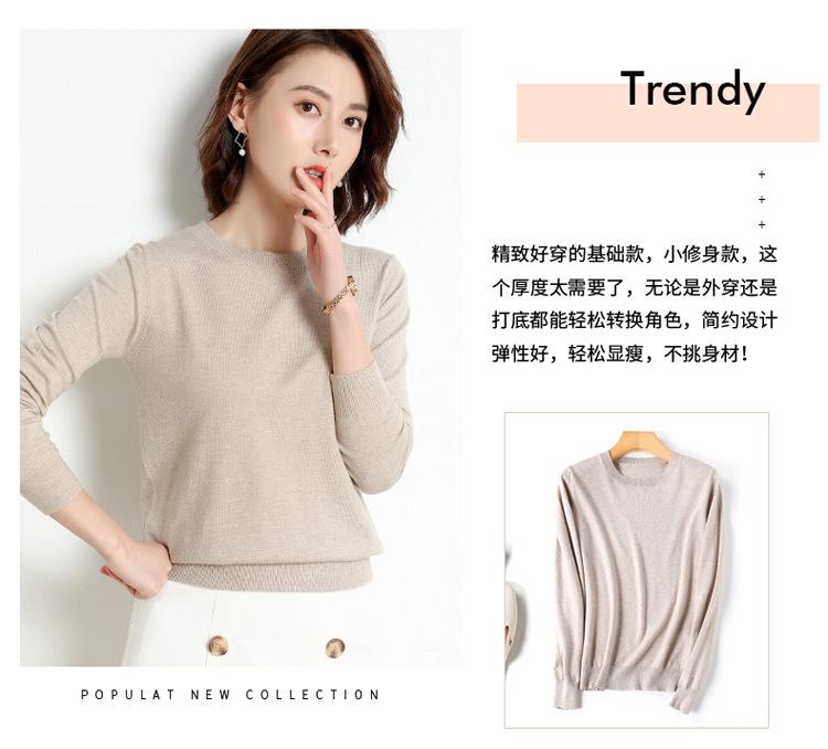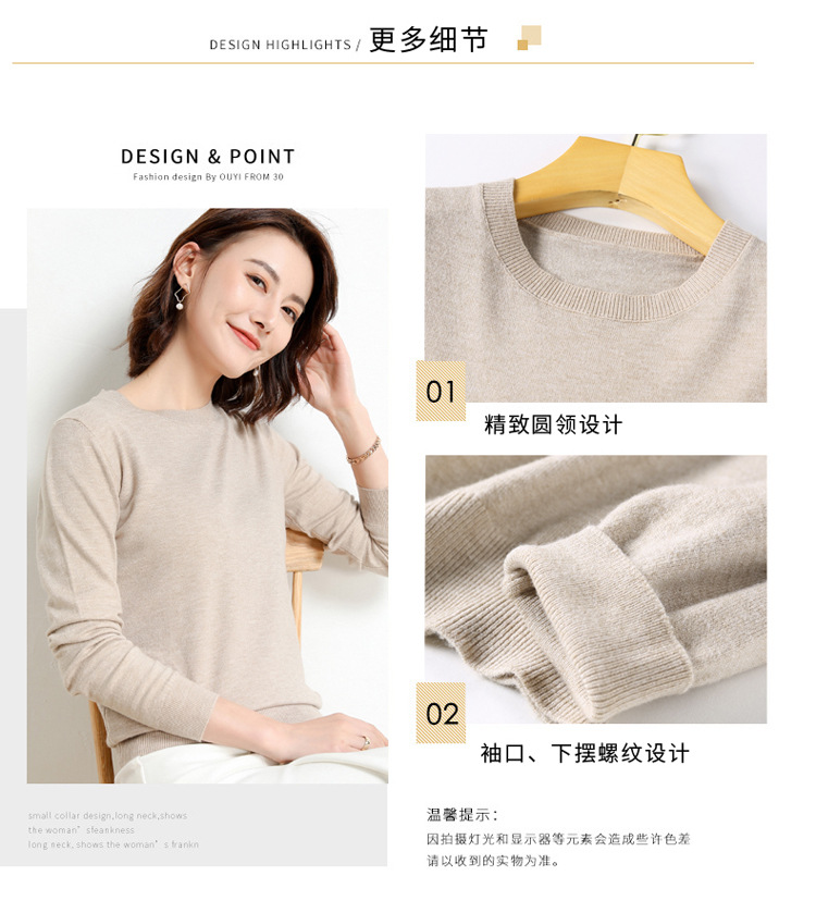 韩版爆款纯色针织衫新款新品 韩版毛衣女套头圆领短款宽松百搭打底衫秋冬薄款针织衫新款新品