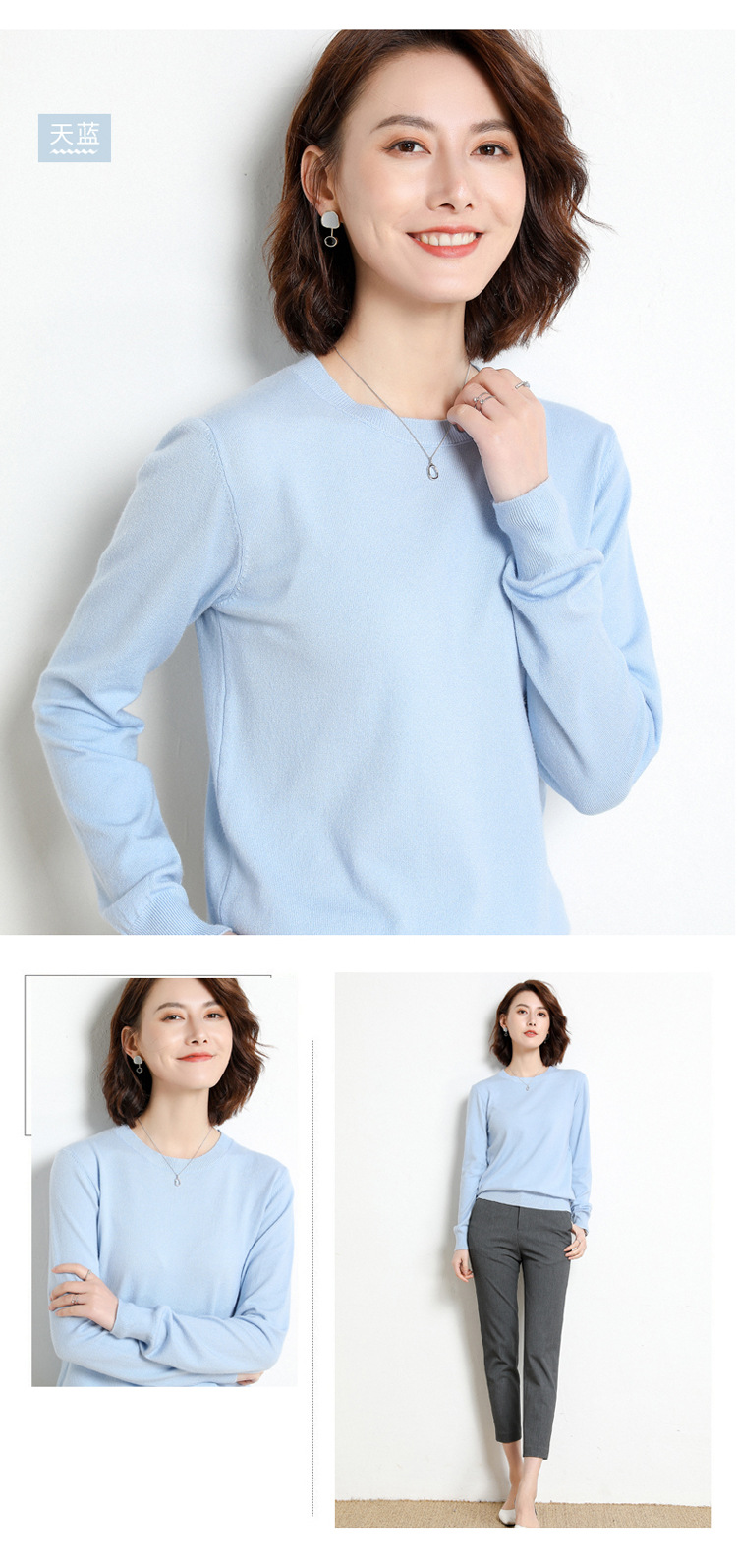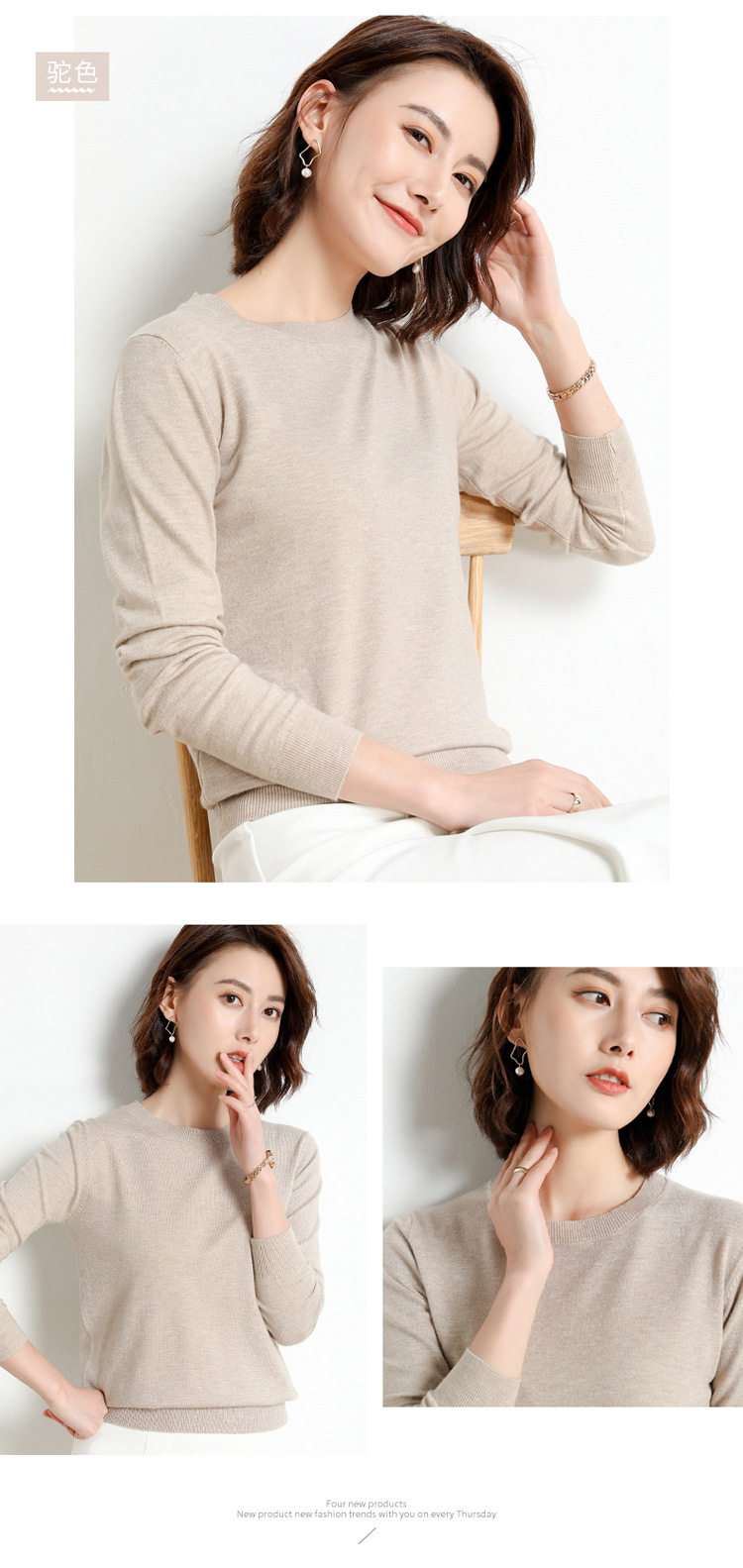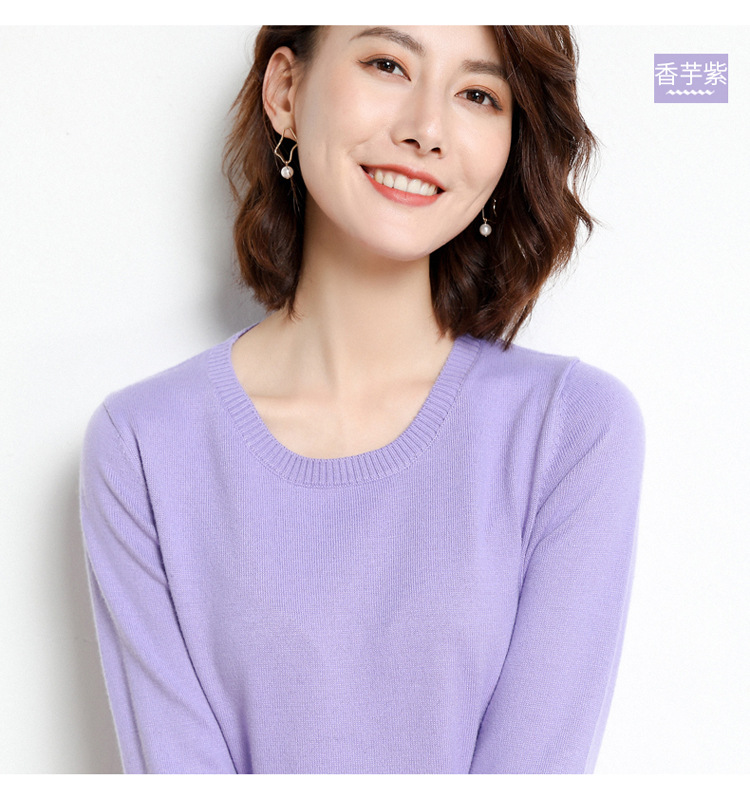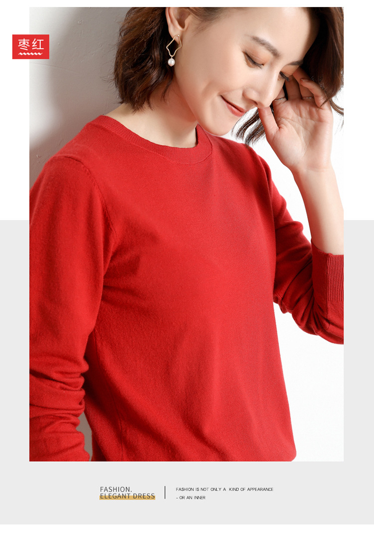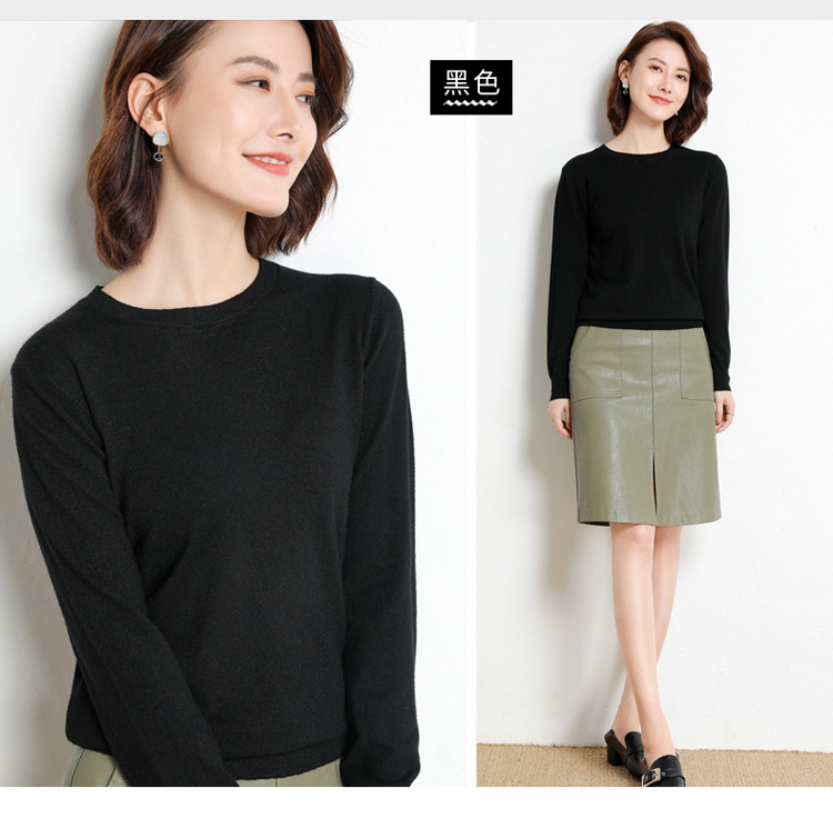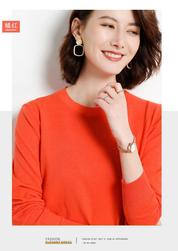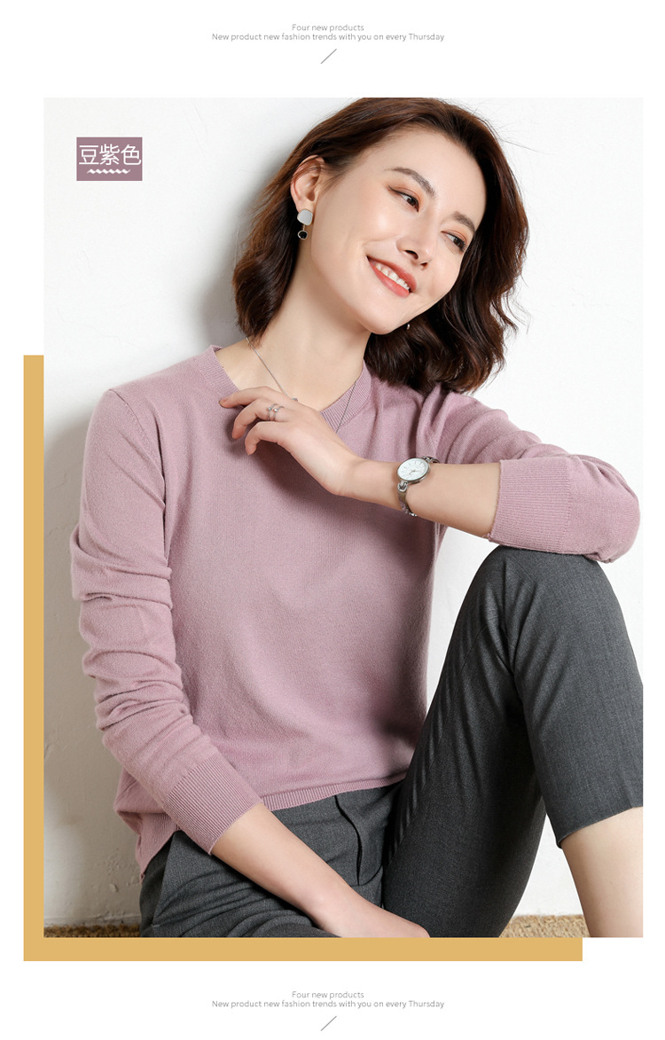 韩版爆款纯色针织衫新款新品 韩版毛衣女套头圆领短款宽松百搭打底衫秋冬薄款针织衫新款新品