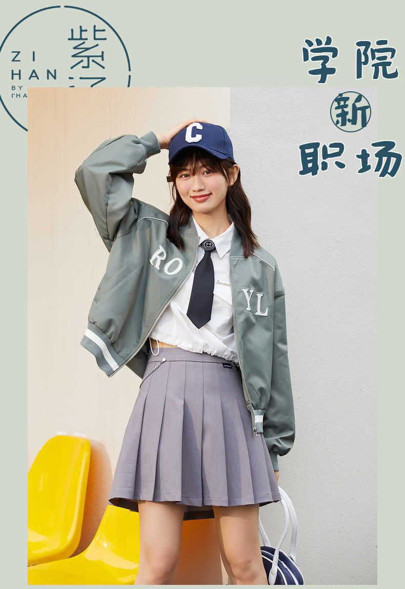 ZIHAN紫涵字母撞色棒球夹克2022春季新品短款简约学院风上衣外套Z2Z01BS257