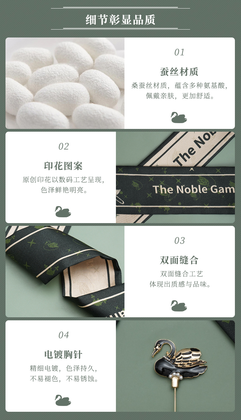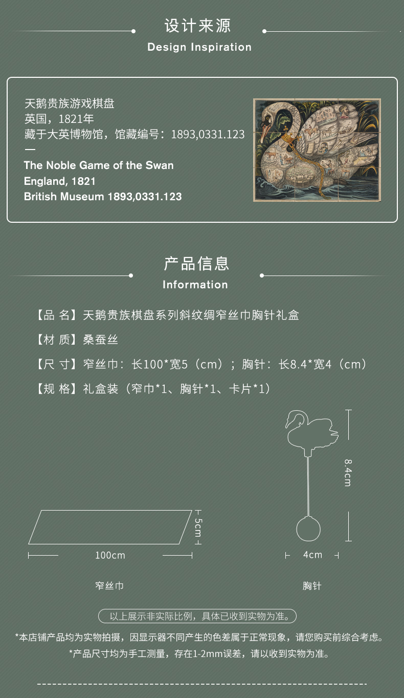 大英博物馆天鹅贵族棋盘系列斜纹绸夏季窄丝巾胸针礼盒送礼物