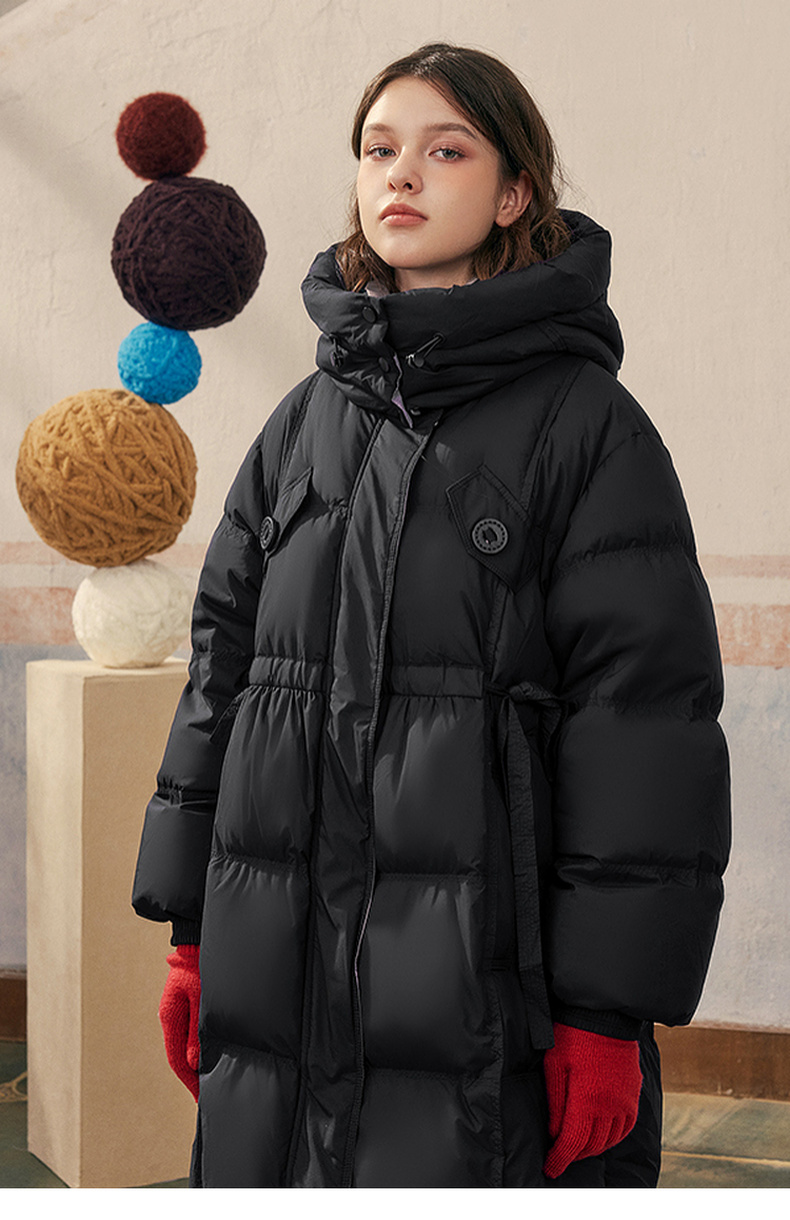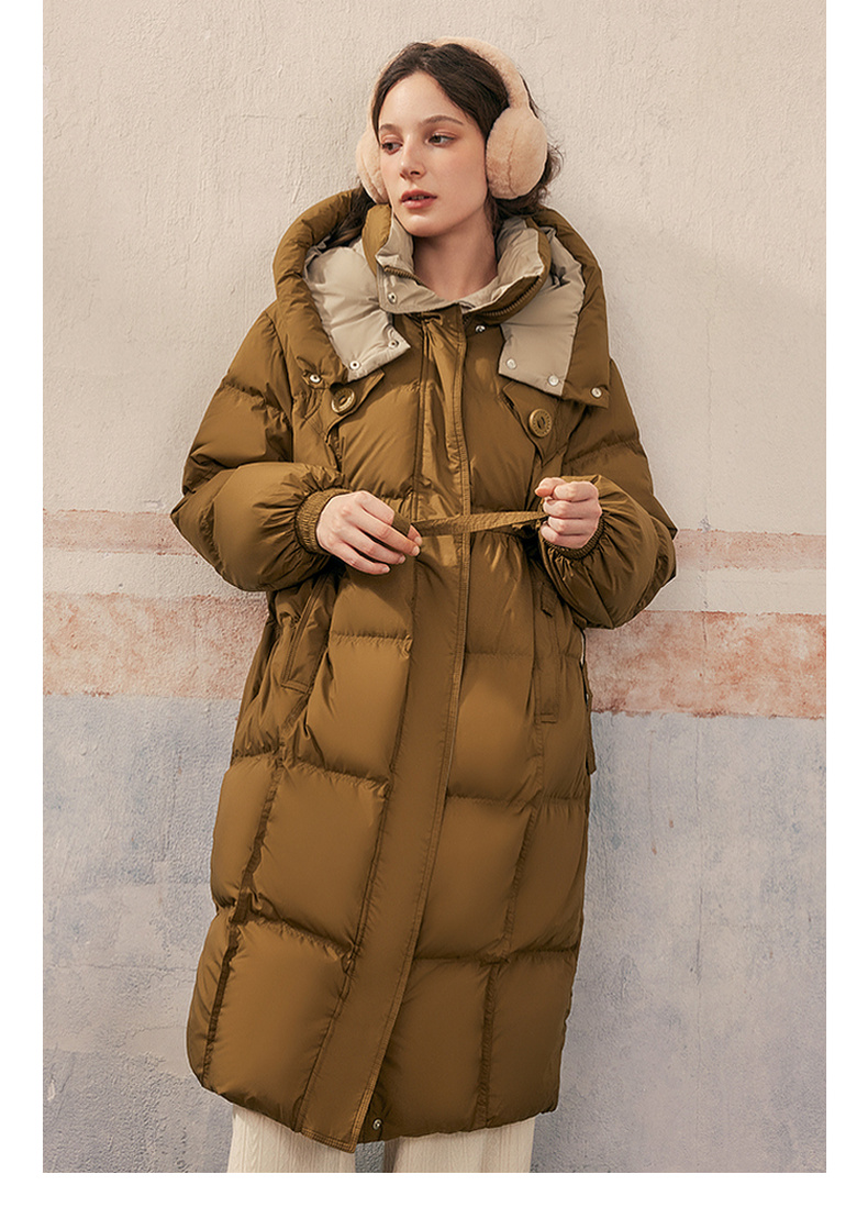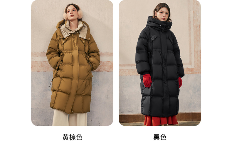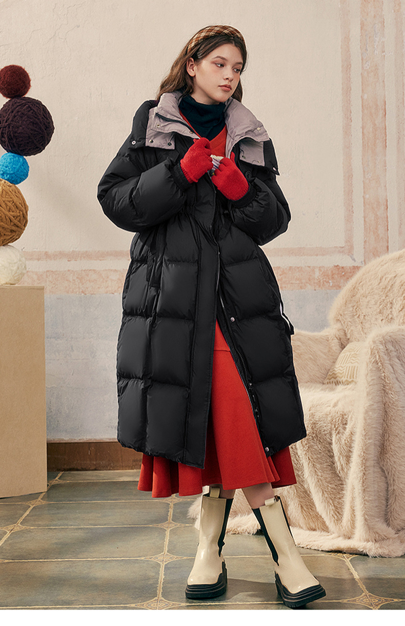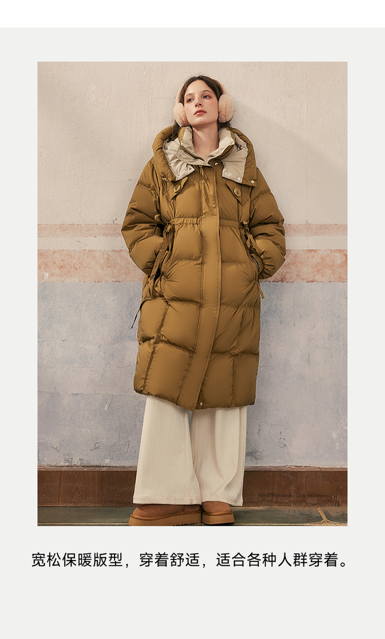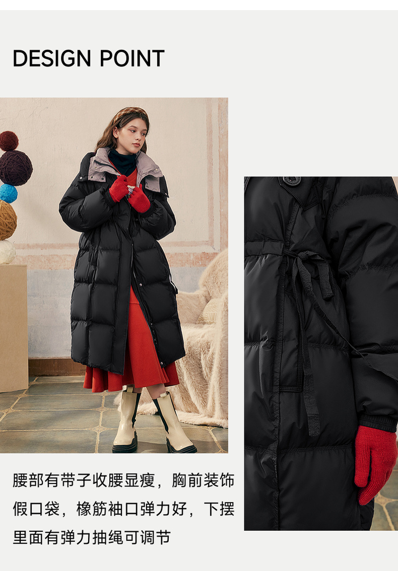 【暖冬内购】两三事冬日来意2024冬季新款时尚拼色抽绳绑带连帽羽绒服外套女