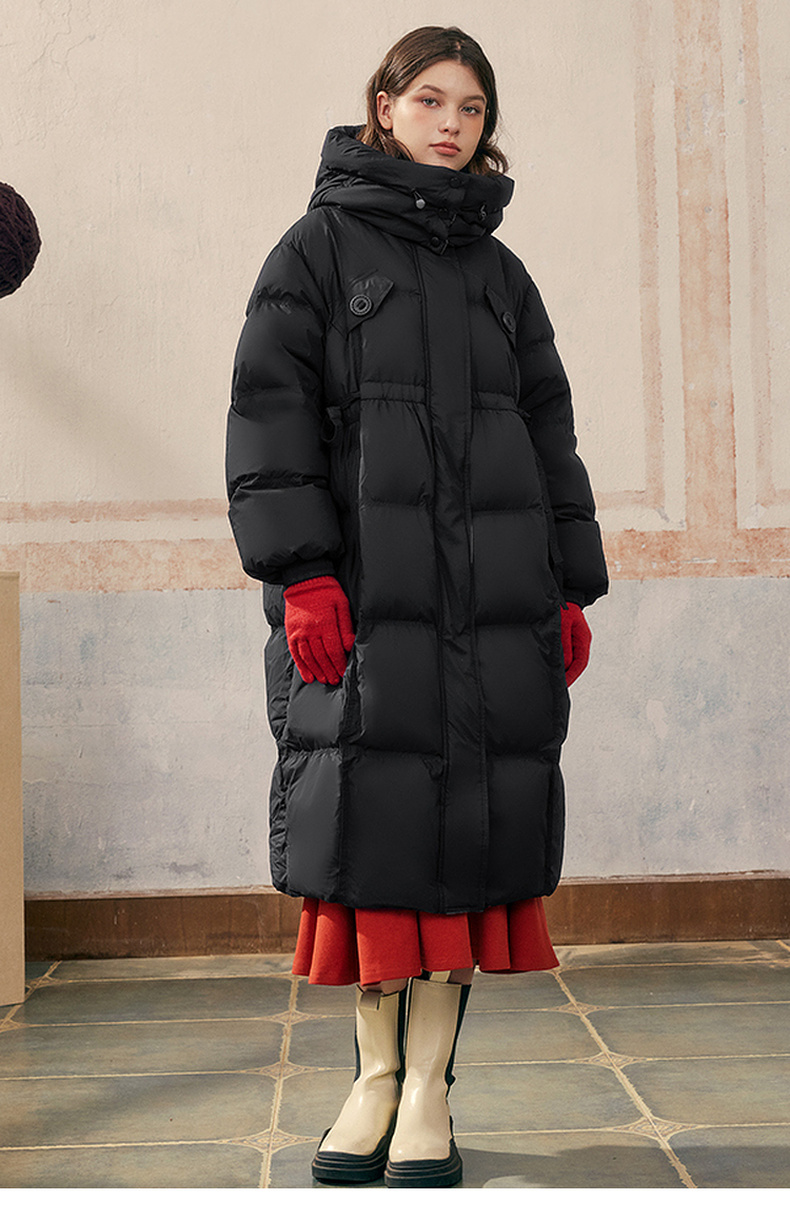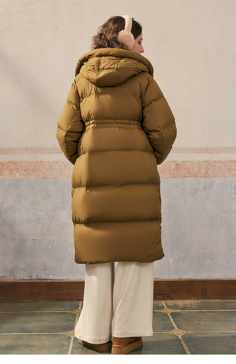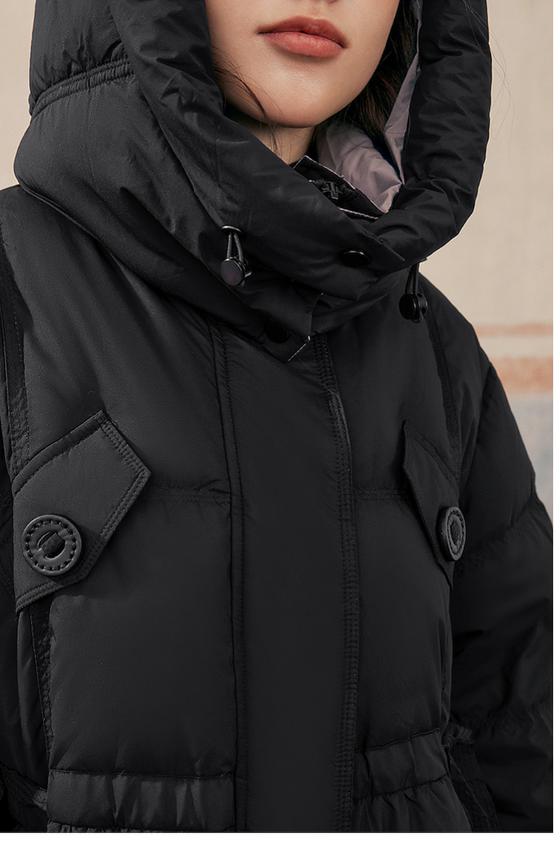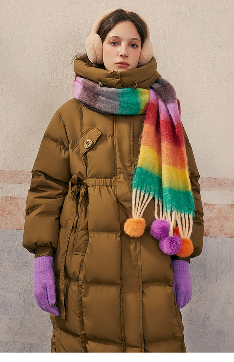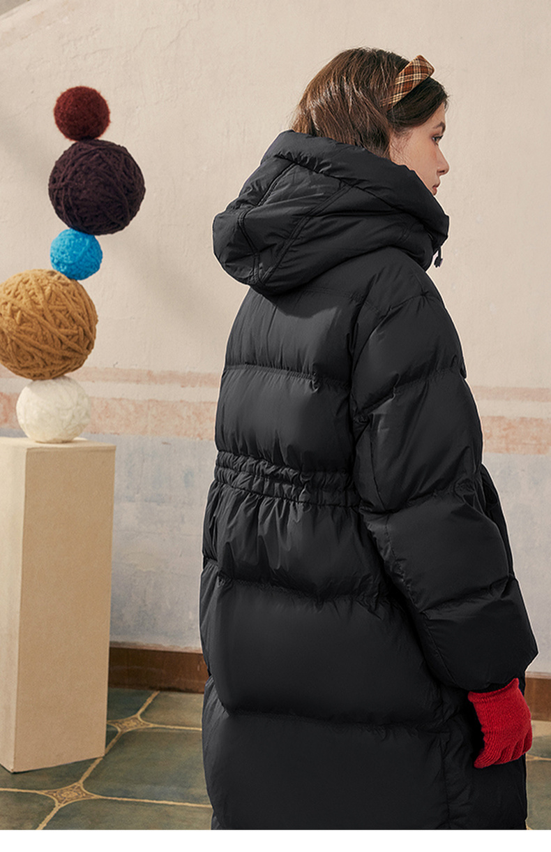 【暖冬内购】两三事冬日来意2024冬季新款时尚拼色抽绳绑带连帽羽绒服外套女