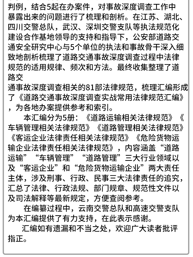 正版现货道路交通事故深度调查实战常用法律规范汇编 人民交通出版社旗舰店