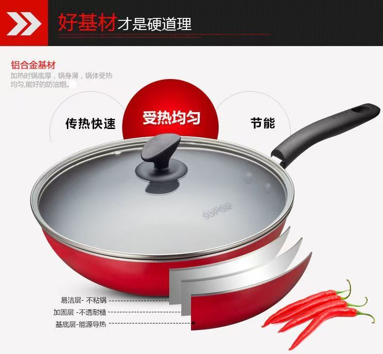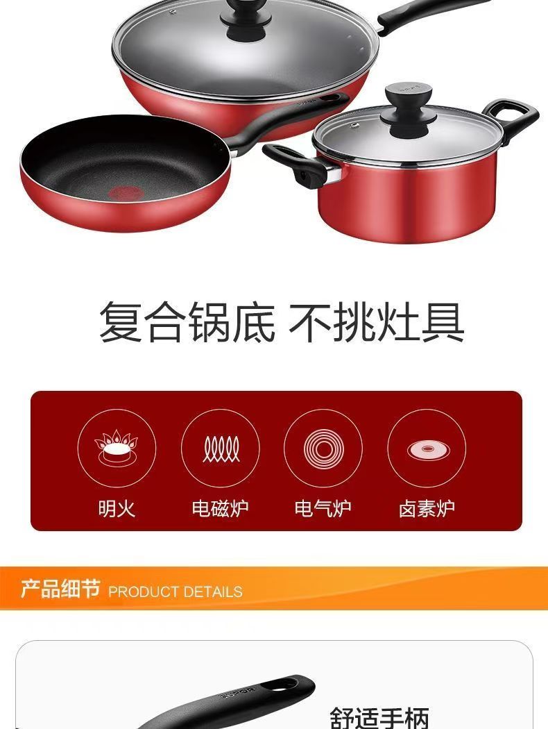 苏泊尔(SUPOR)锅具套装不粘锅三件套炒锅煎锅汤锅烹饪锅具火红点TP1926Q
