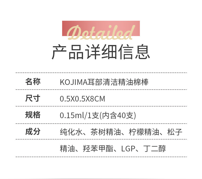 kojima精油棉签宠物耳部清洁棒40支猫狗洗耳水滴耳液耳螨清洁用品