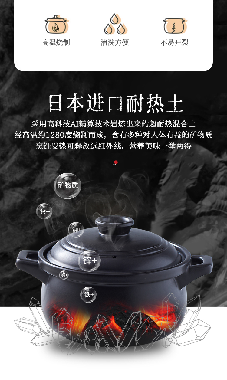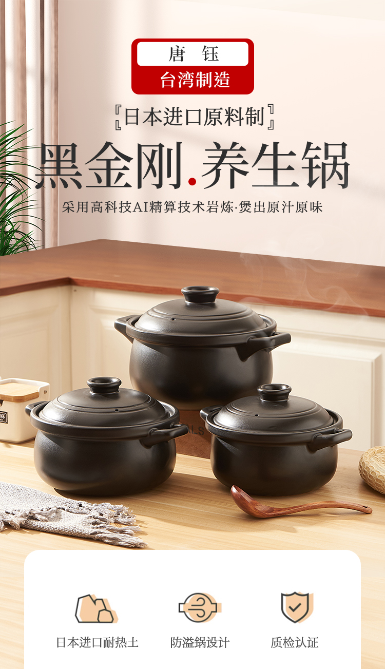 台湾唐钰原装黑金刚岩炼陶瓷锅