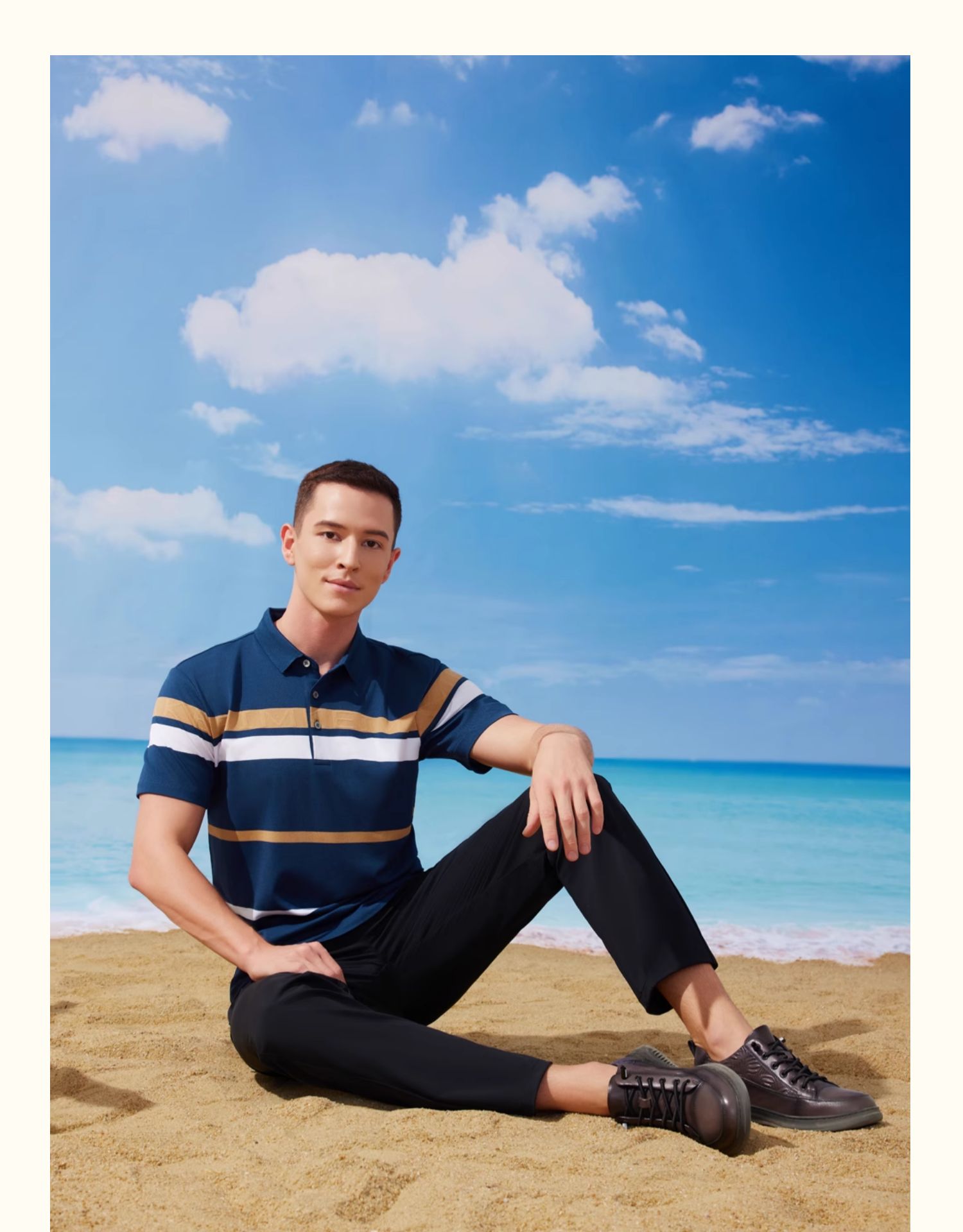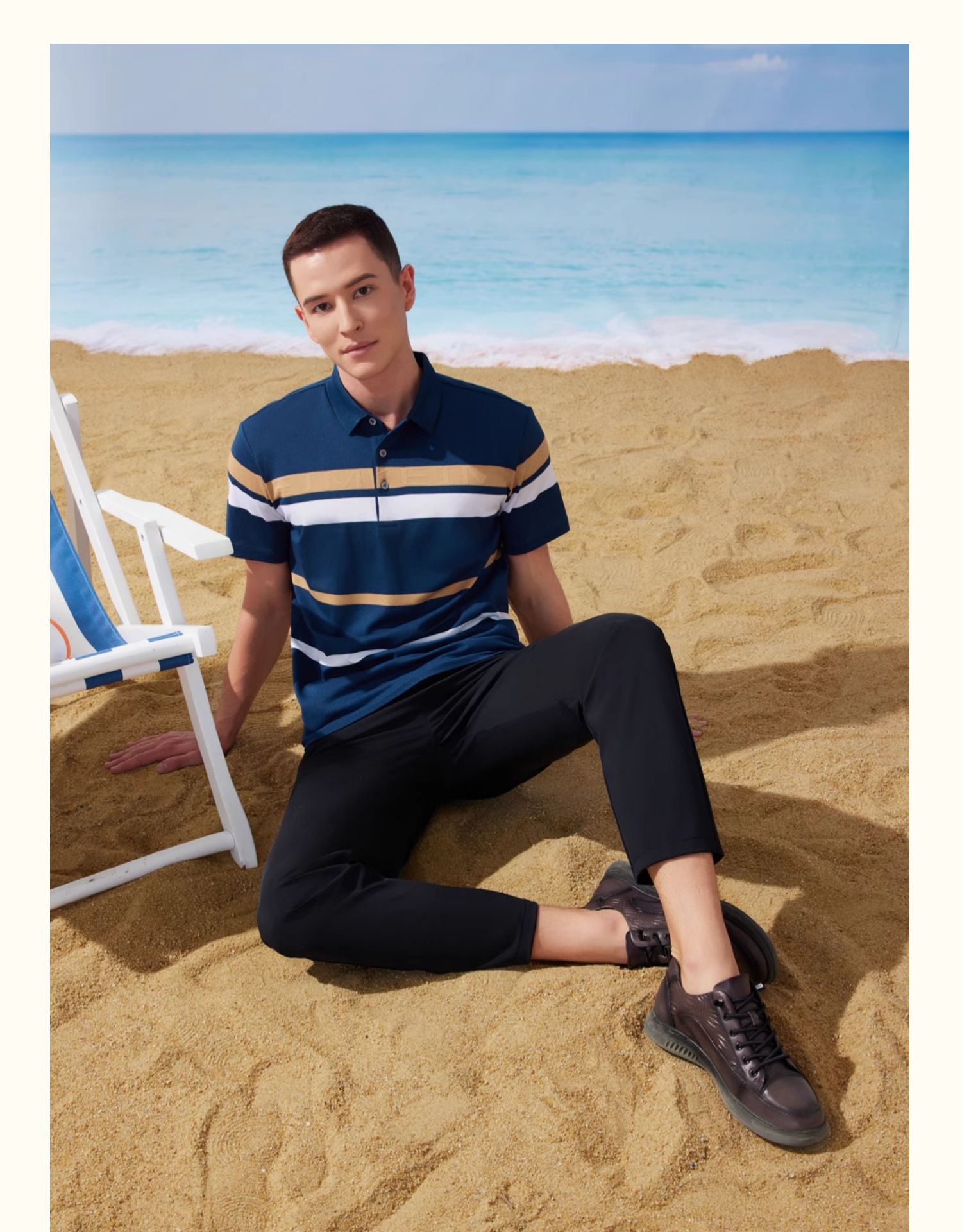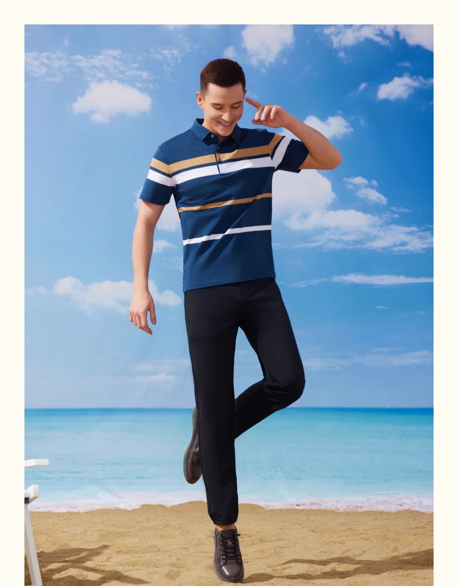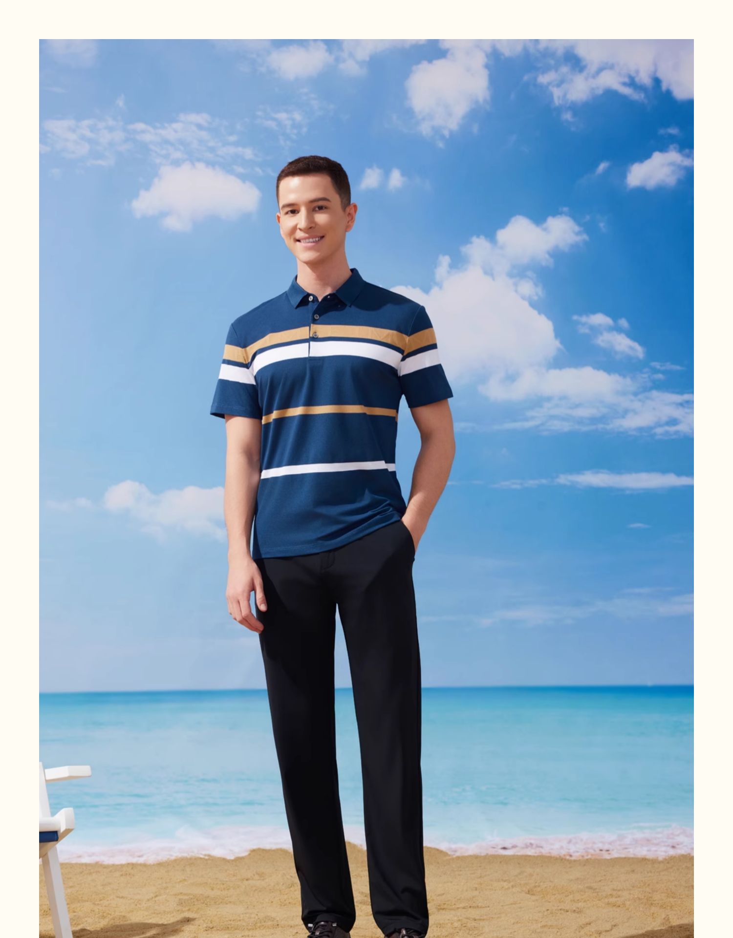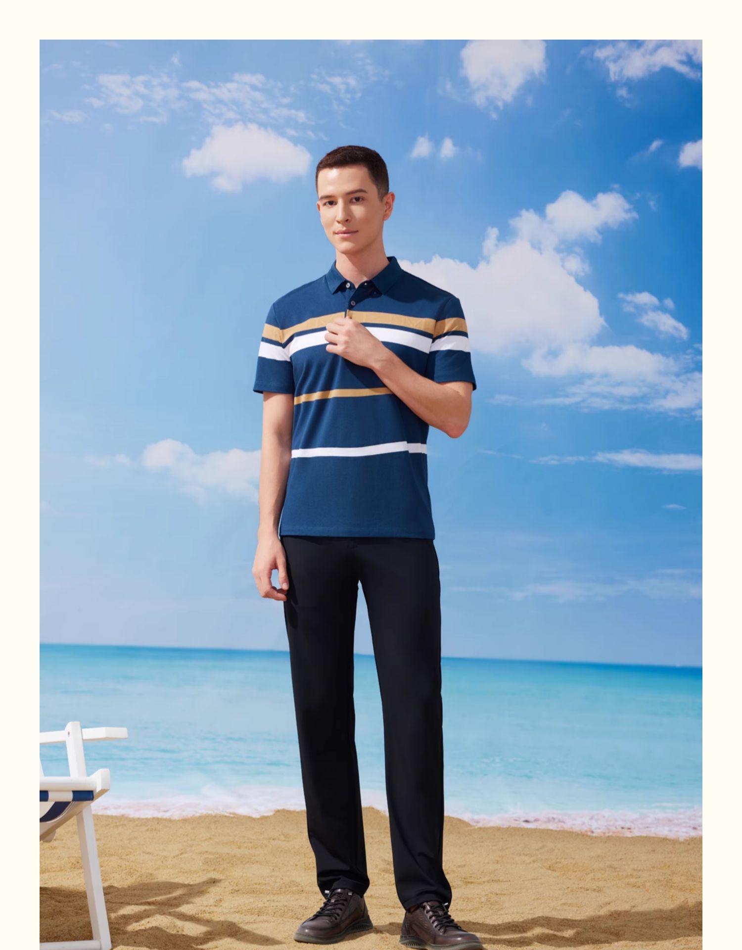 半身缘男装 夏季桑蚕丝莫代尔条纹百搭POLO衫252112M03912757