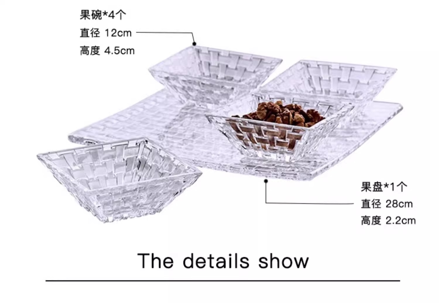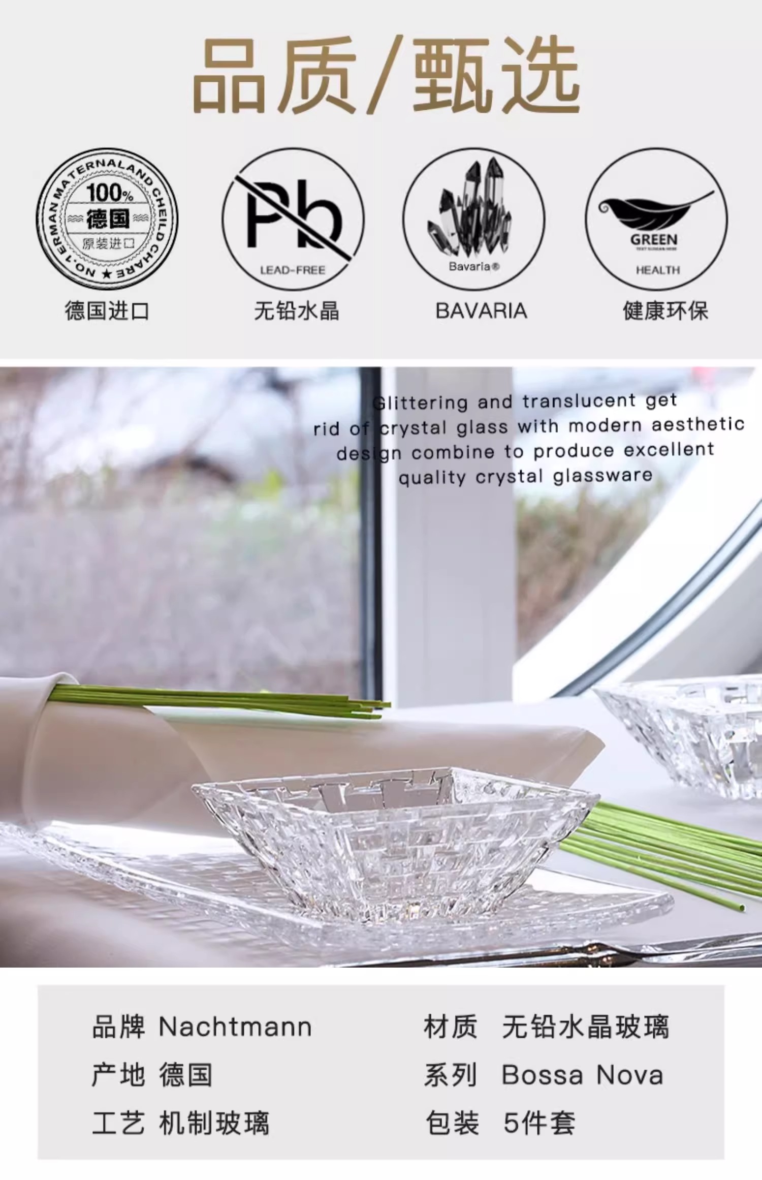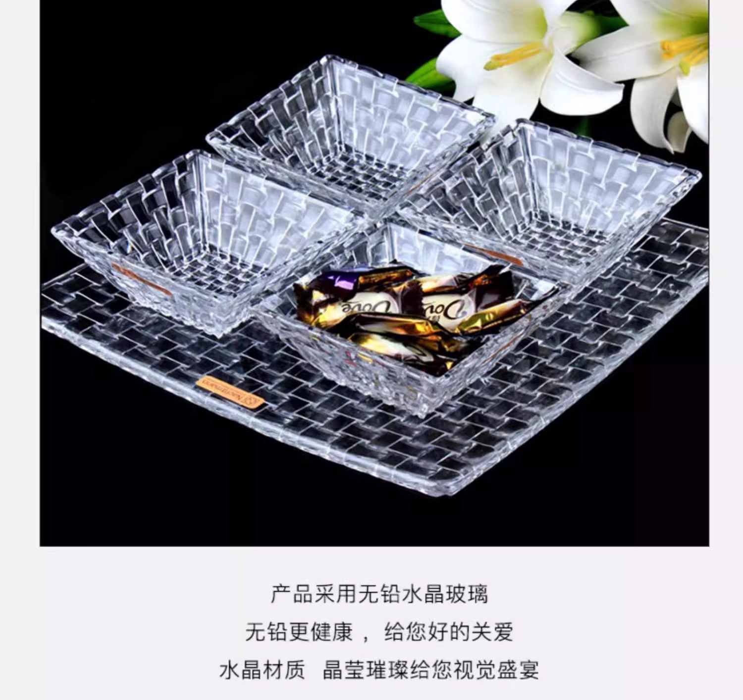 【特惠5.5折,仅1套,无货退款】德国nachtmann进口水晶玻璃家用创意客厅干果小果盘套装欧式摆件波萨诺瓦方形小果斗12cm(两个装)