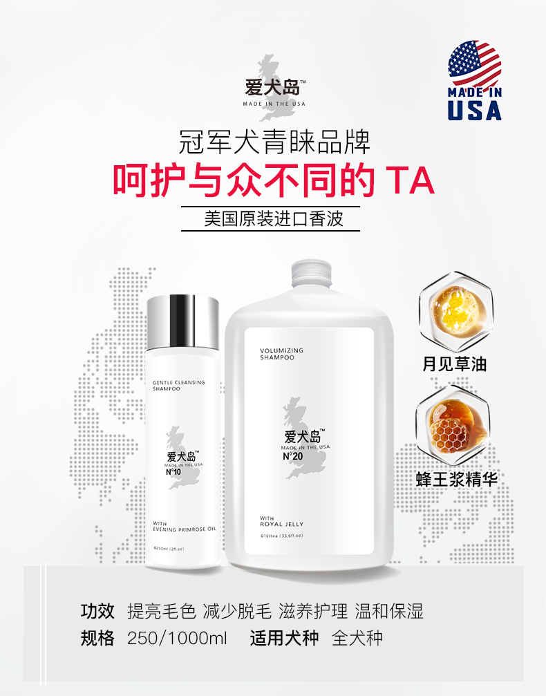 美国爱犬岛 狗狗专用香波&护毛素 全系列 深度修护 滋养毛发 250ml