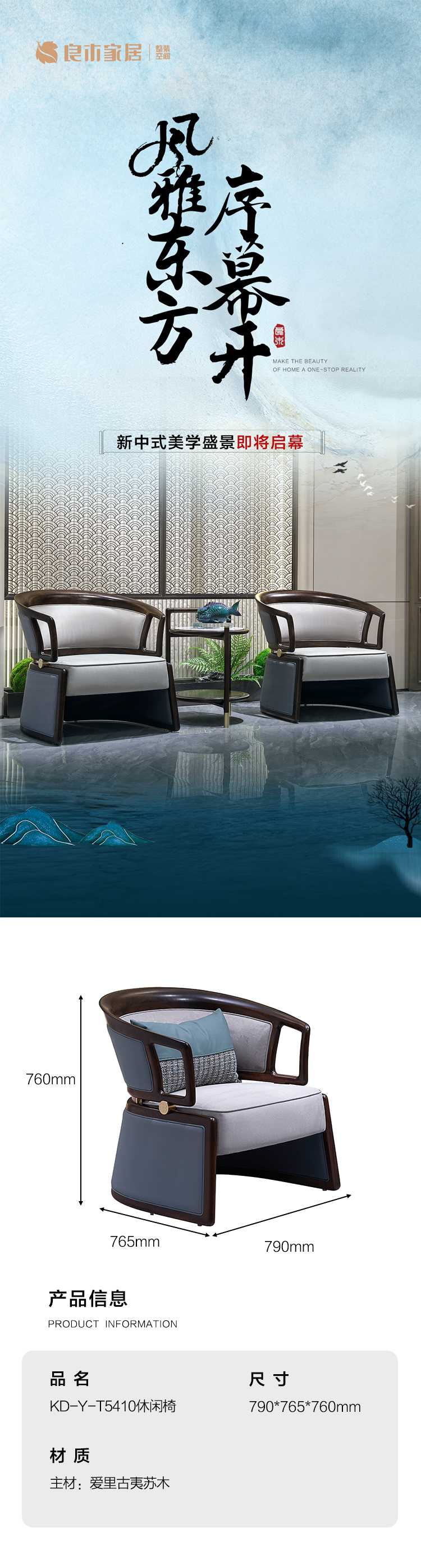 【新中式-休闲椅KD-Y-T5410】黑檀/客厅/卧房/书房/休闲沙发/休闲椅
